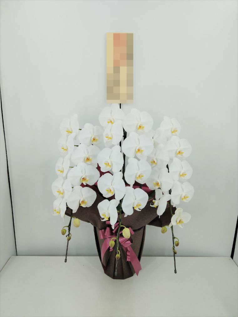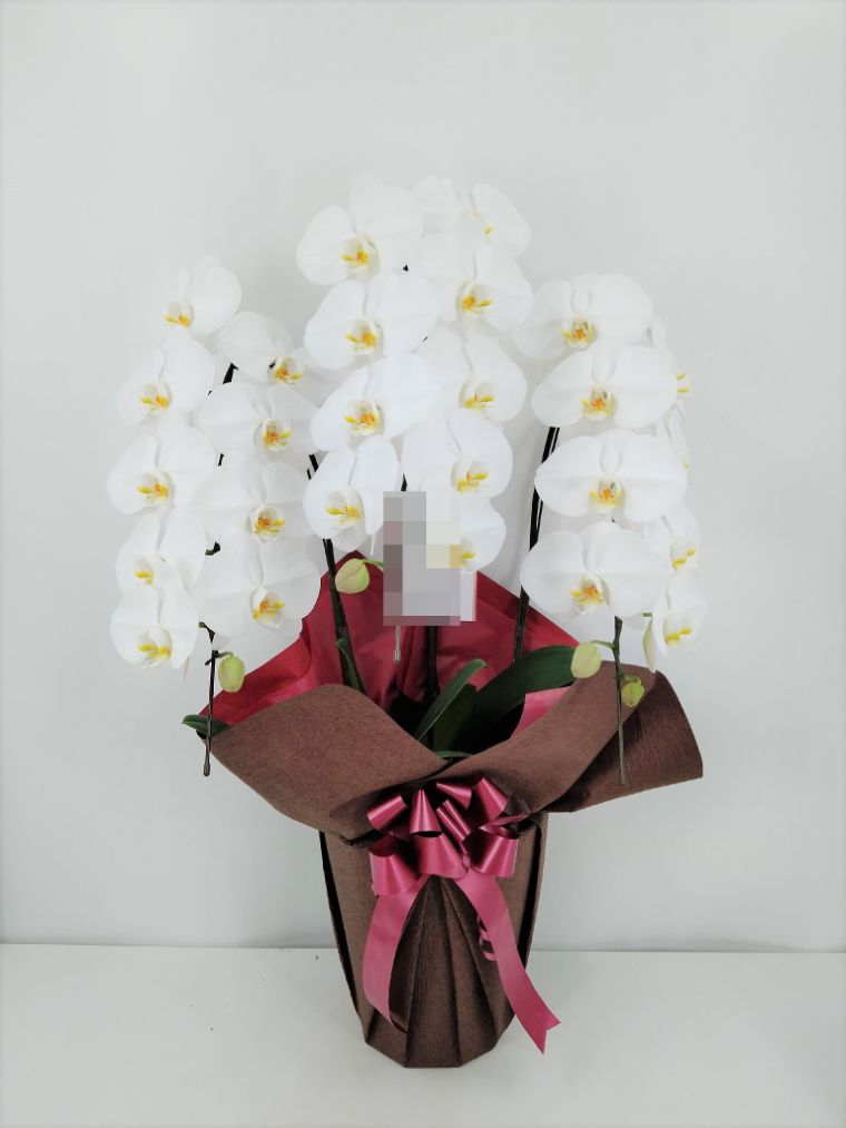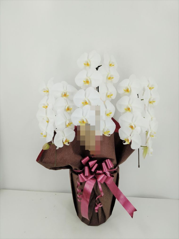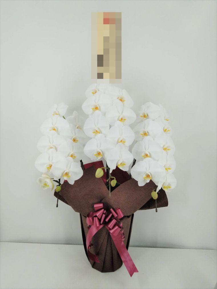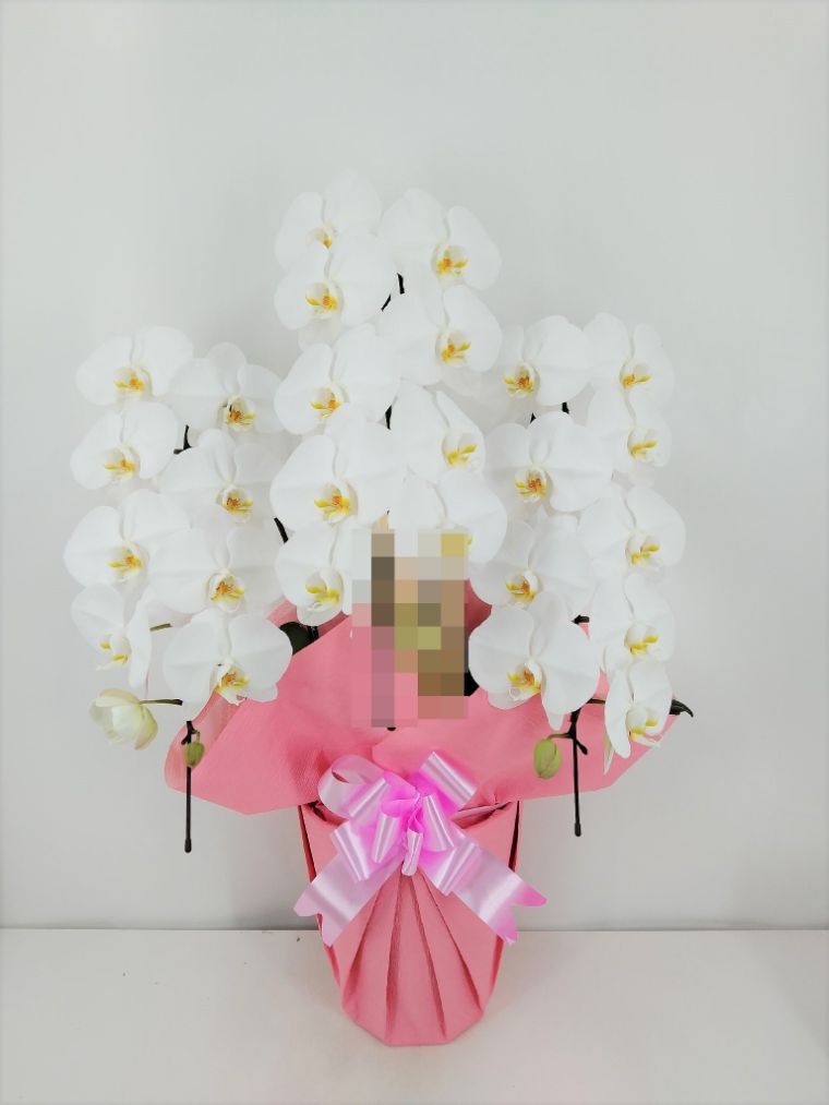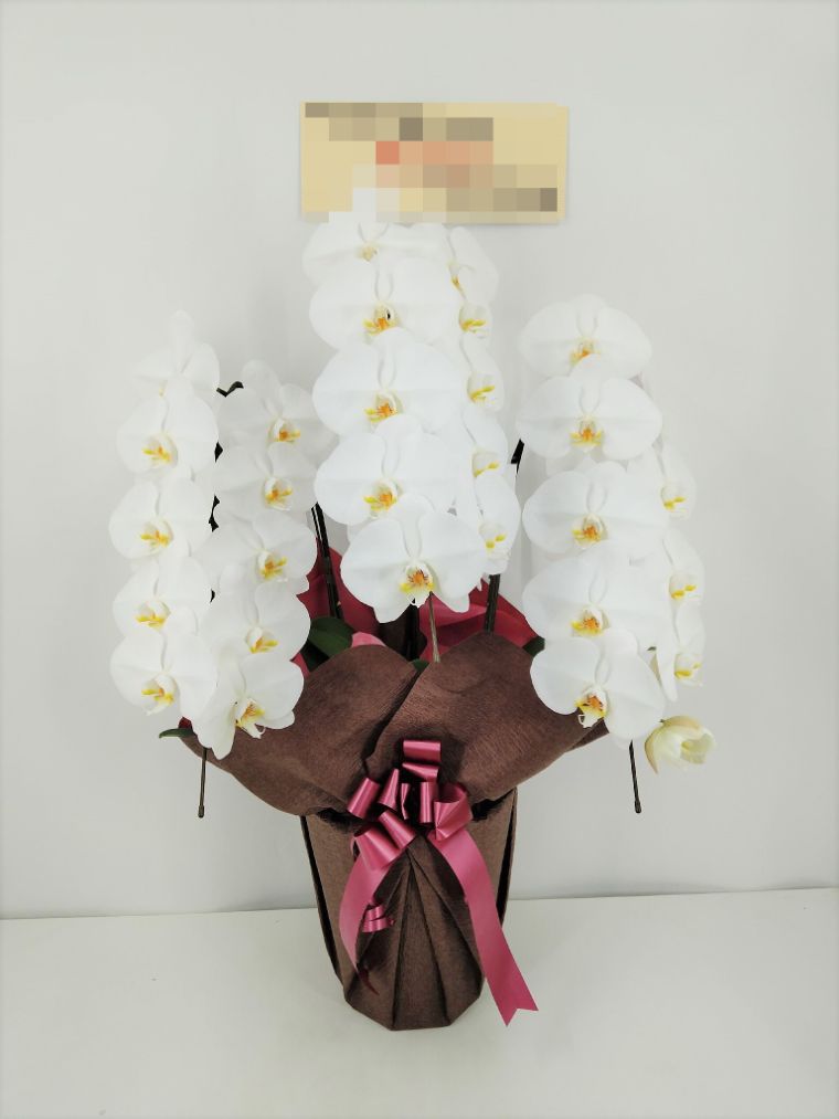 胡蝶蘭の実際にお届けした写真です。花秘書では発送前に写真をメールで送信致しますので安心して大切な顧客や取引様へのギフトにご利用頂けます。