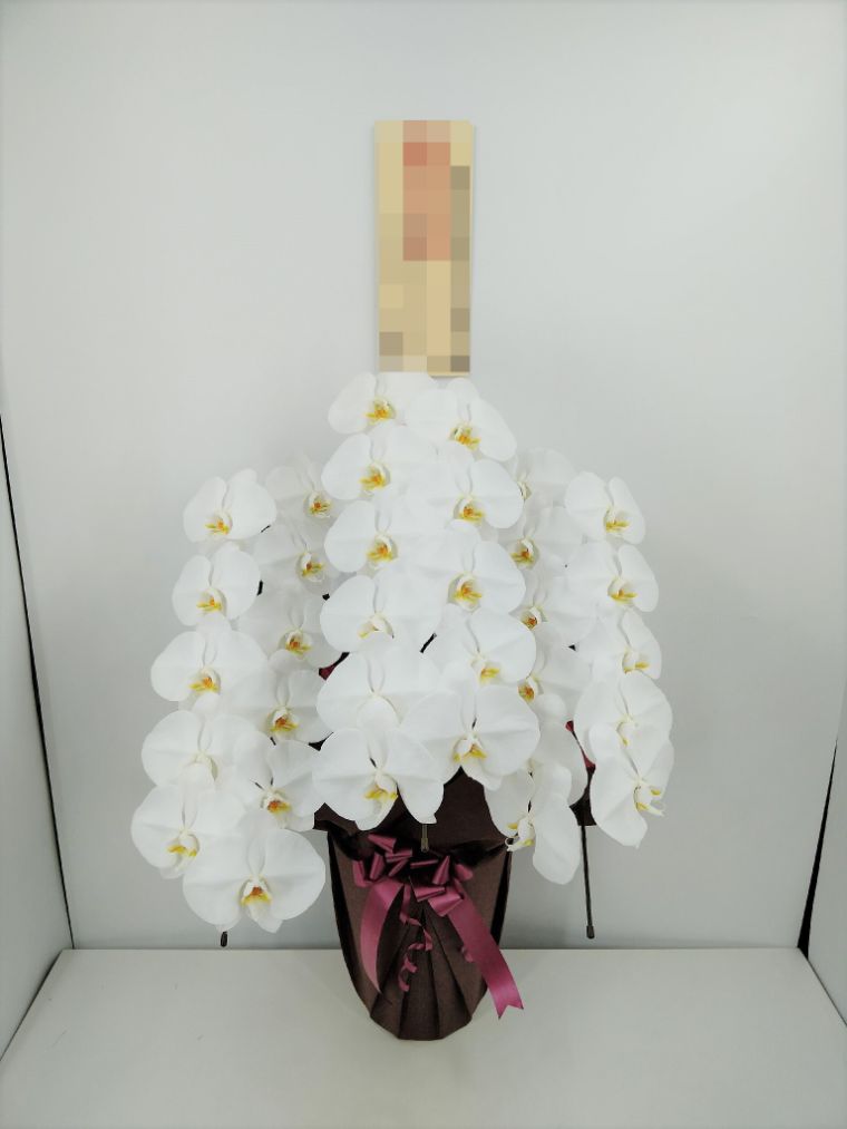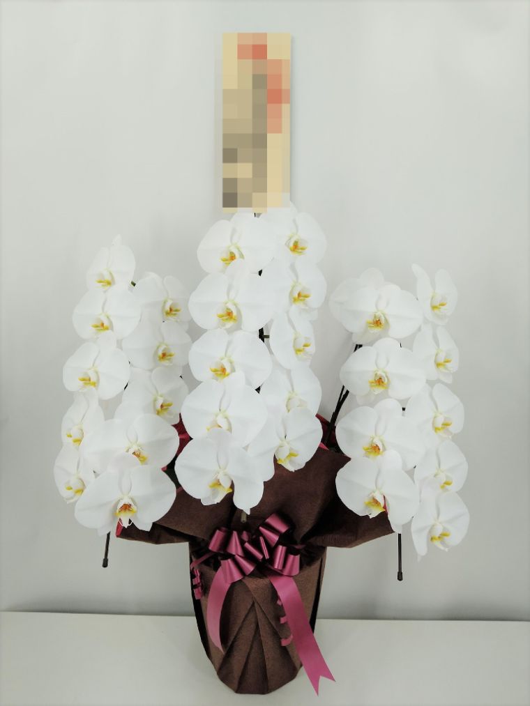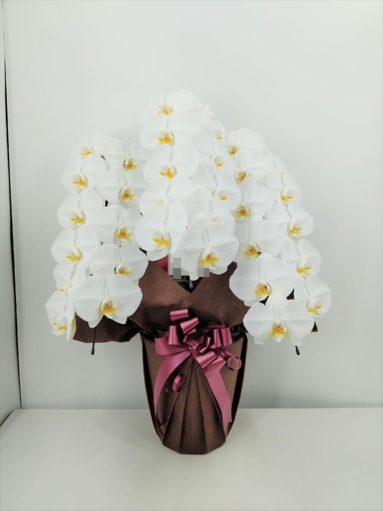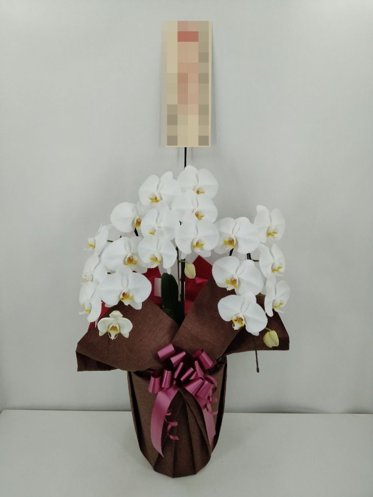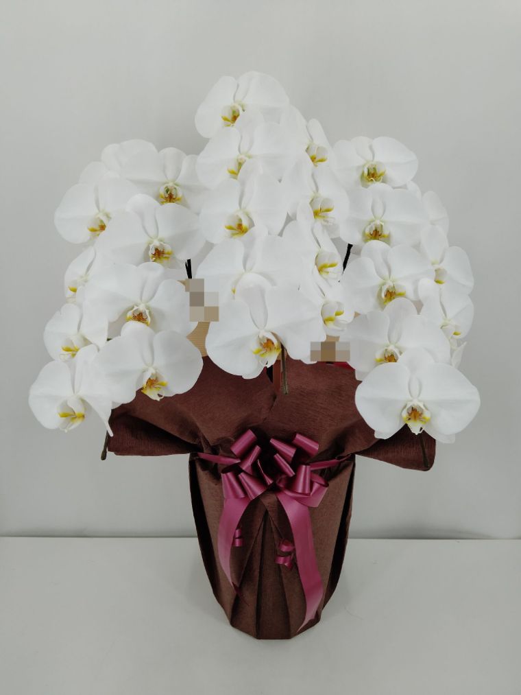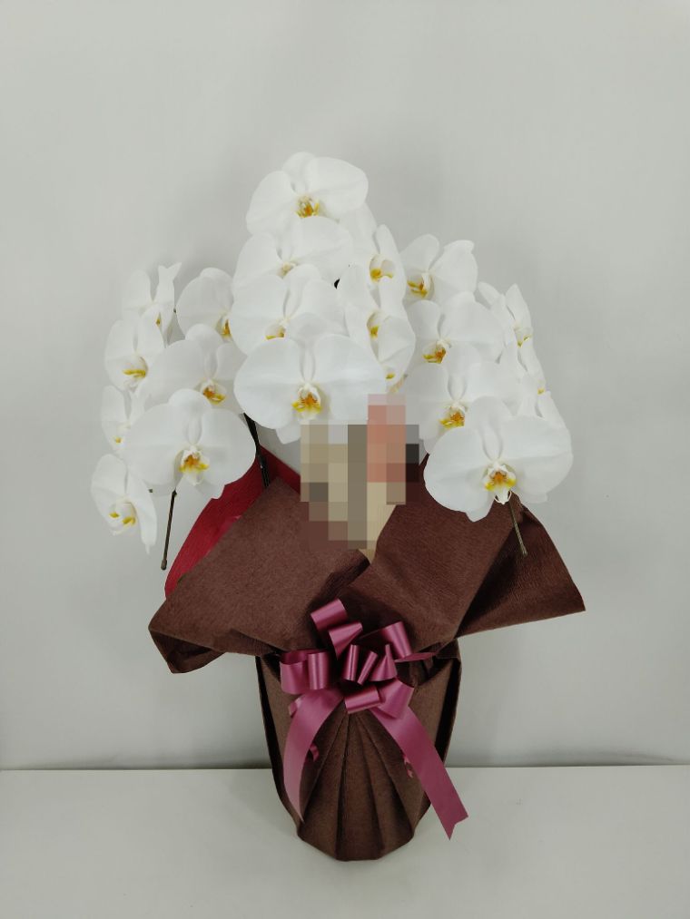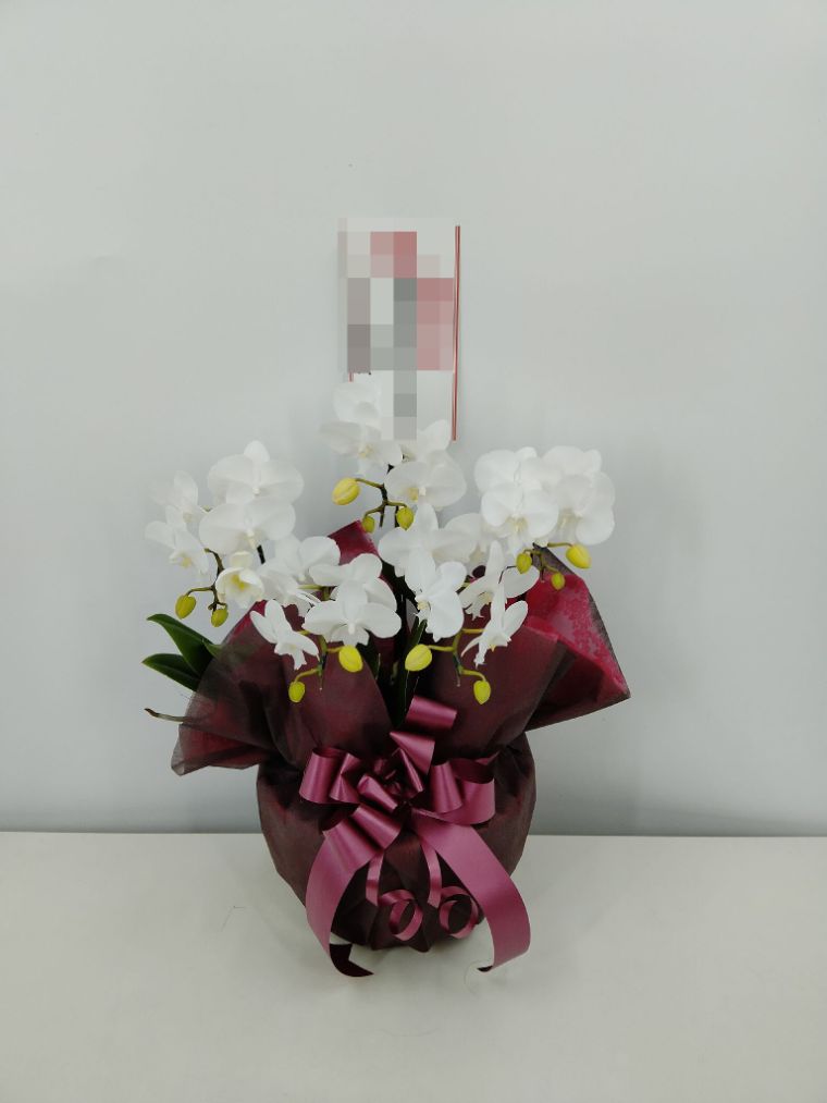 胡蝶蘭の実際にお届けした写真です。花秘書では発送前に写真をメールで送信致しますので安心して大切な顧客や取引様へのギフトにご利用頂けます。