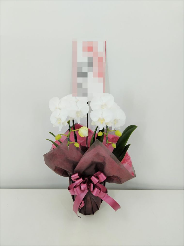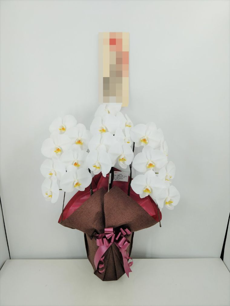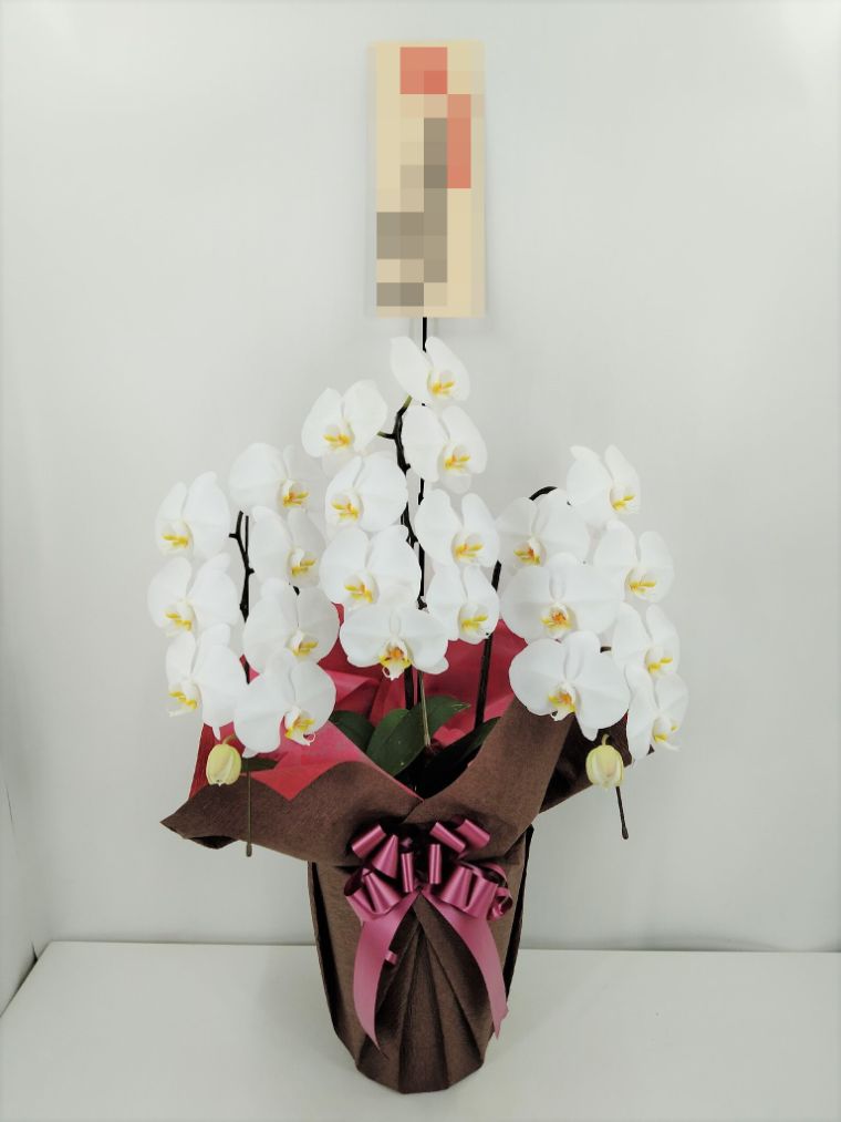 胡蝶蘭の実際にお届けした写真です。花秘書では発送前に写真をメールで送信致しますので安心して大切な顧客や取引様へのギフトにご利用頂けます。