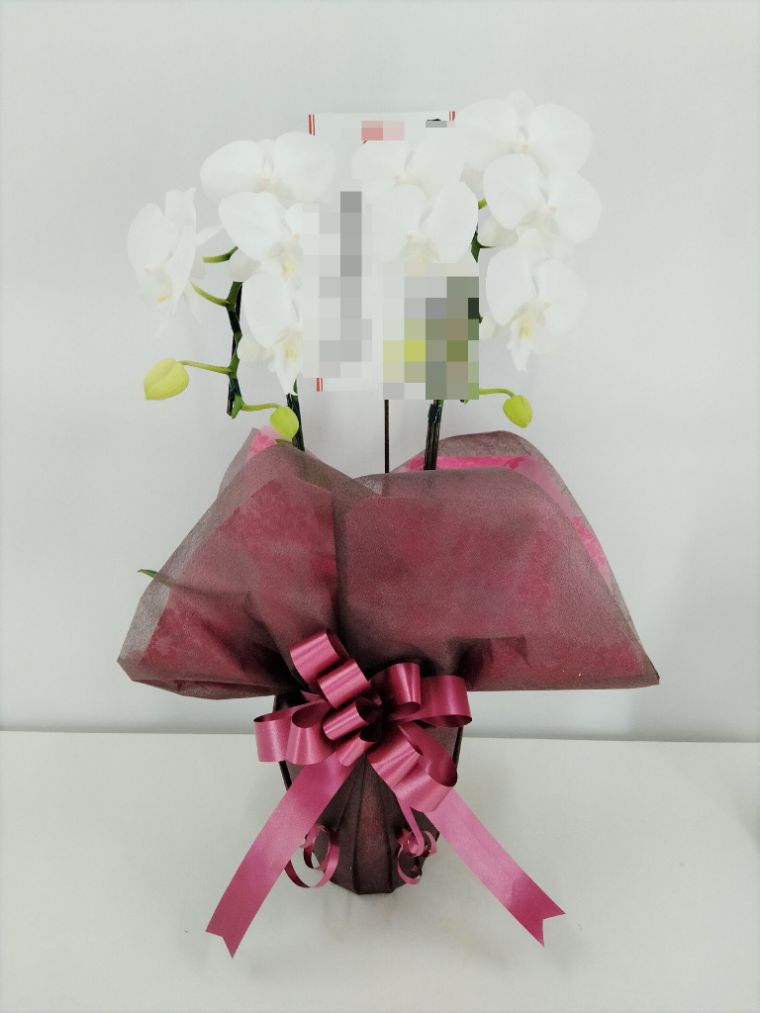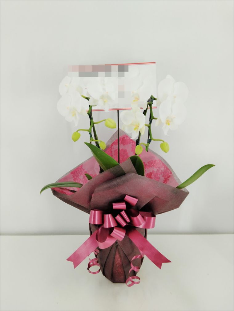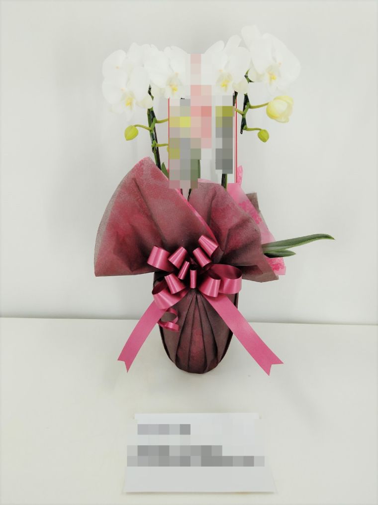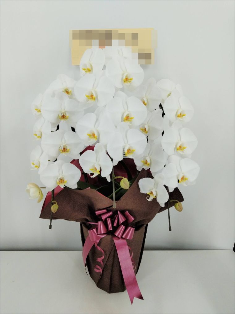 胡蝶蘭の実際にお届けした写真です。花秘書では発送前に写真をメールで送信致しますので安心して大切な顧客や取引様へのギフトにご利用頂けます。
