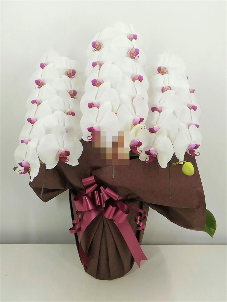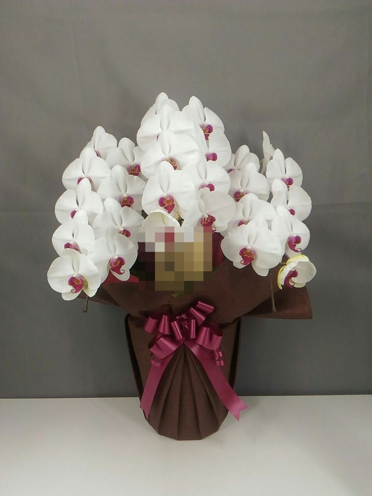 胡蝶蘭の実際にお届けした写真です。花秘書では発送前に写真をメールで送信致しますので安心して大切な顧客や取引様へのギフトにご利用頂けます。