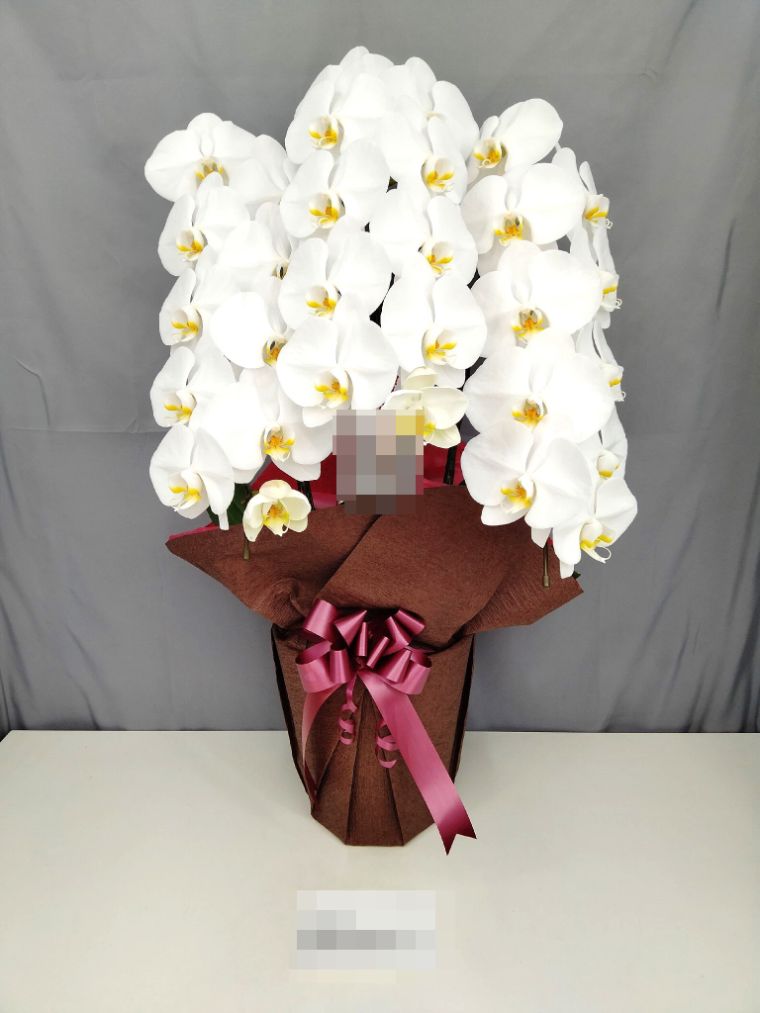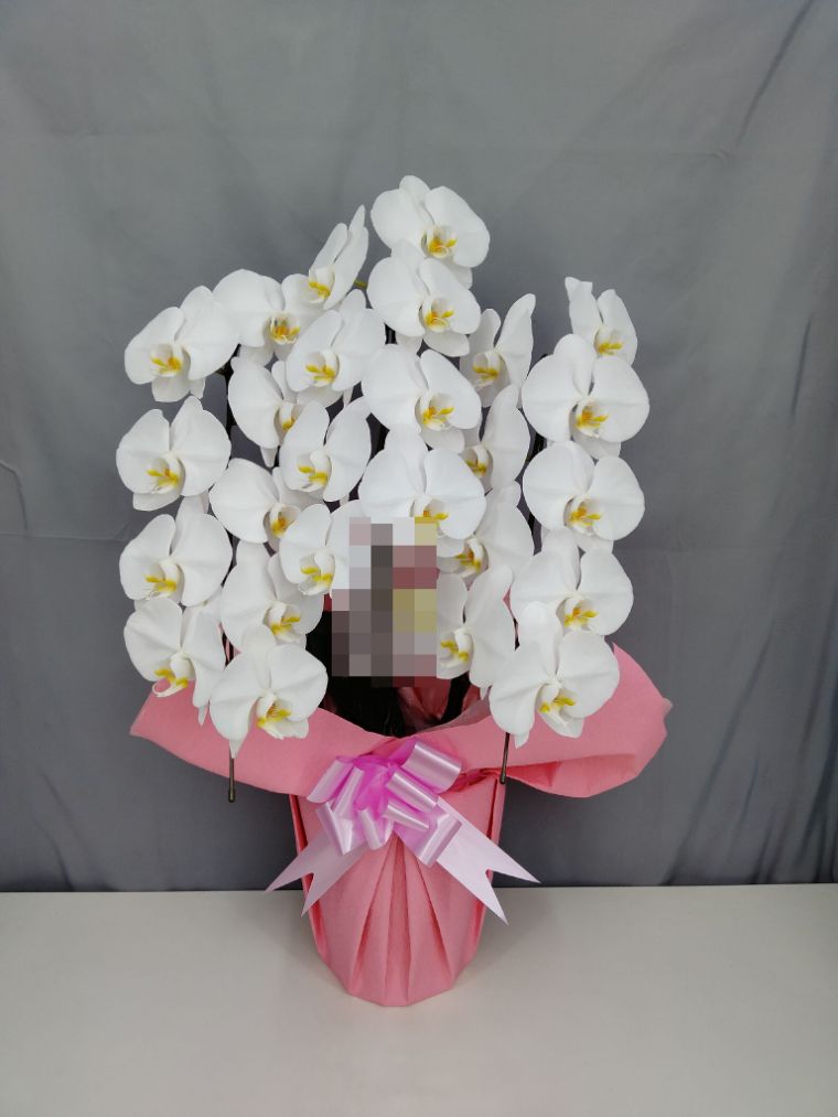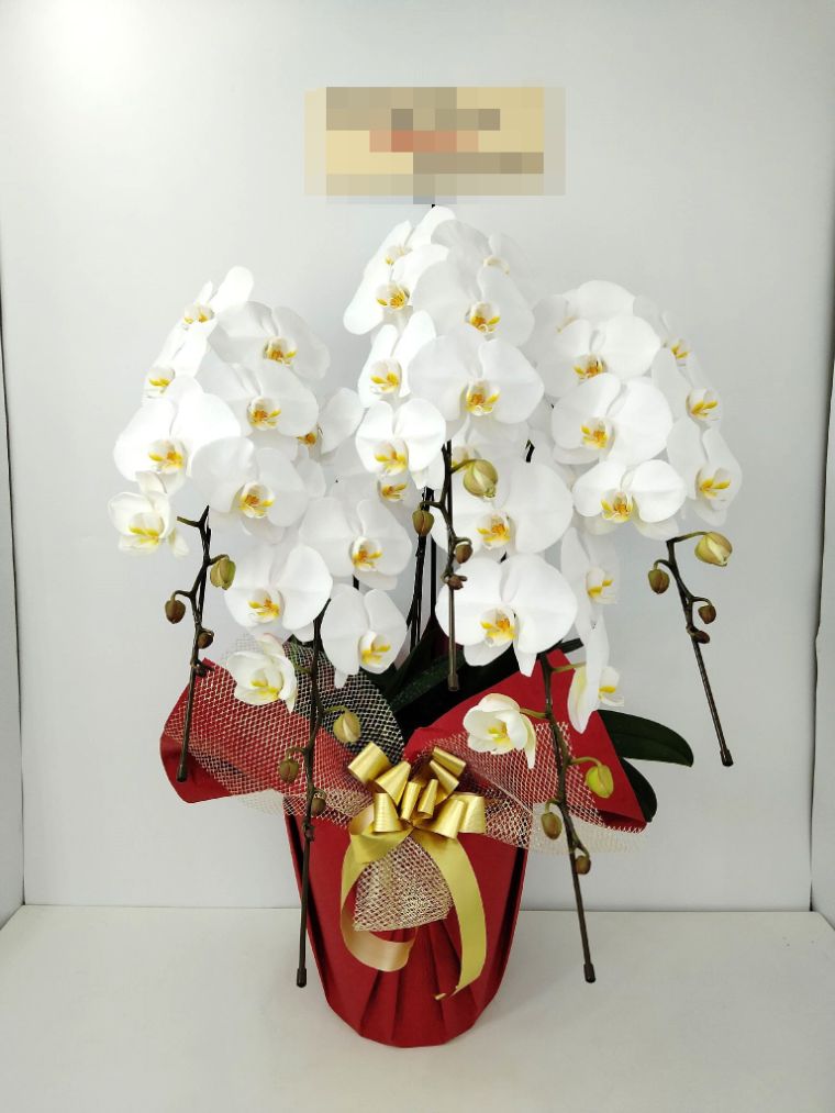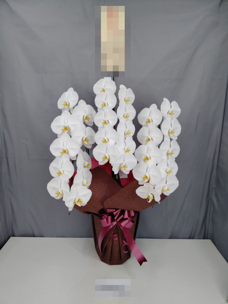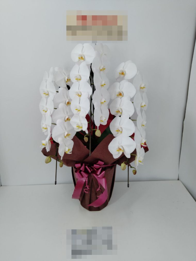 胡蝶蘭の実際にお届けした写真です。花秘書では発送前に写真をメールで送信致しますので安心して大切な顧客や取引様へのギフトにご利用頂けます。