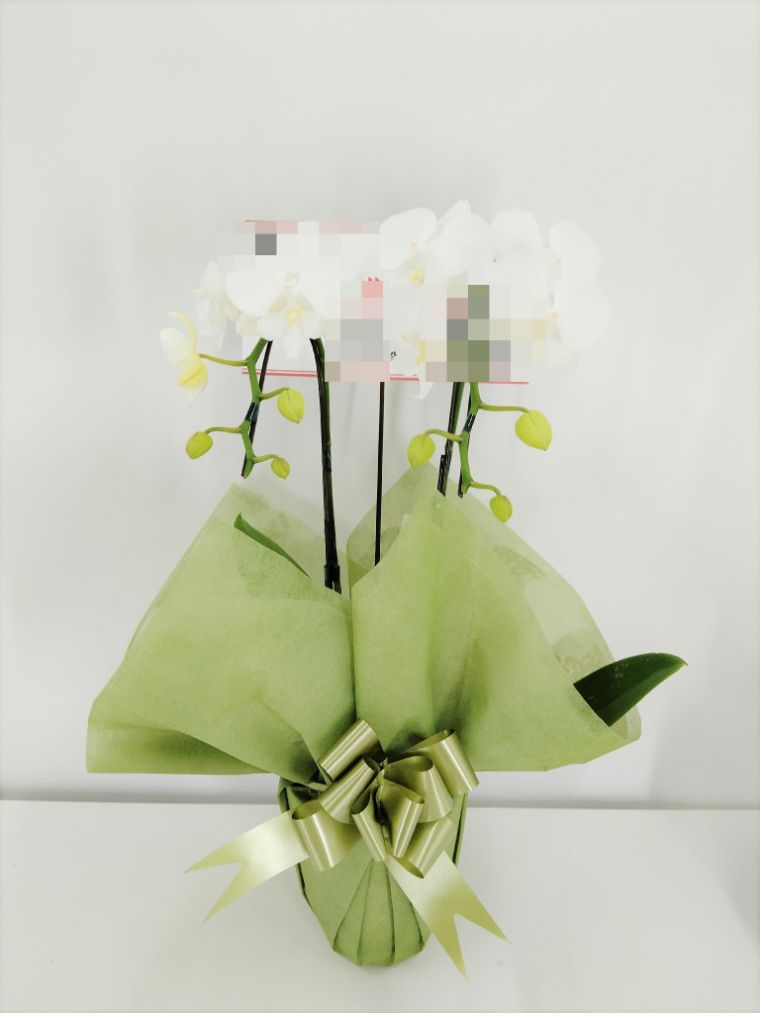 胡蝶蘭の実際にお届けした写真です。花秘書では発送前に写真をメールで送信致しますので安心して大切な顧客や取引様へのギフトにご利用頂けます。