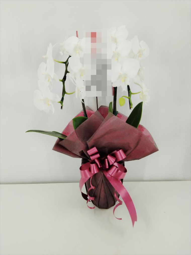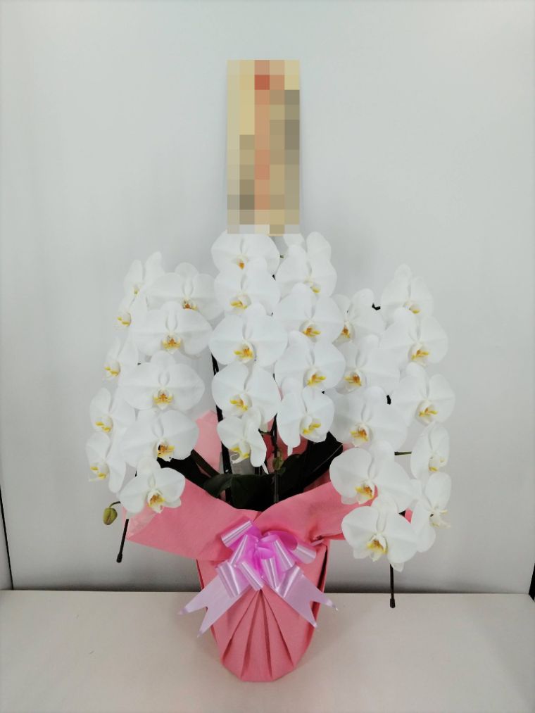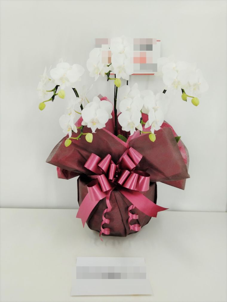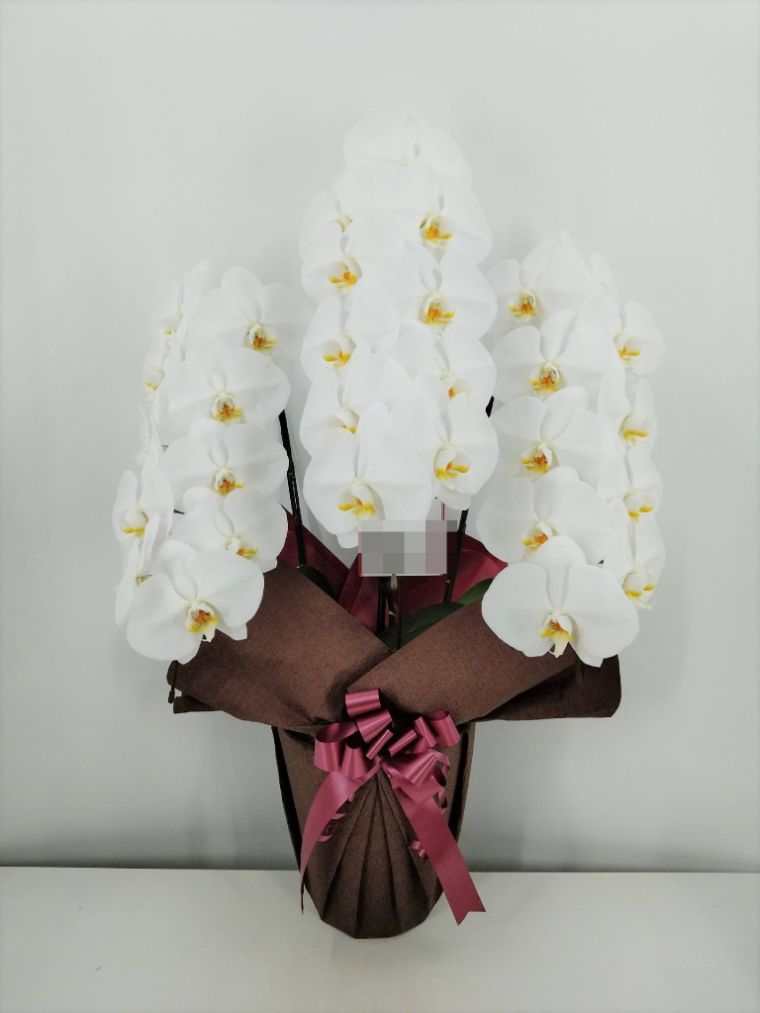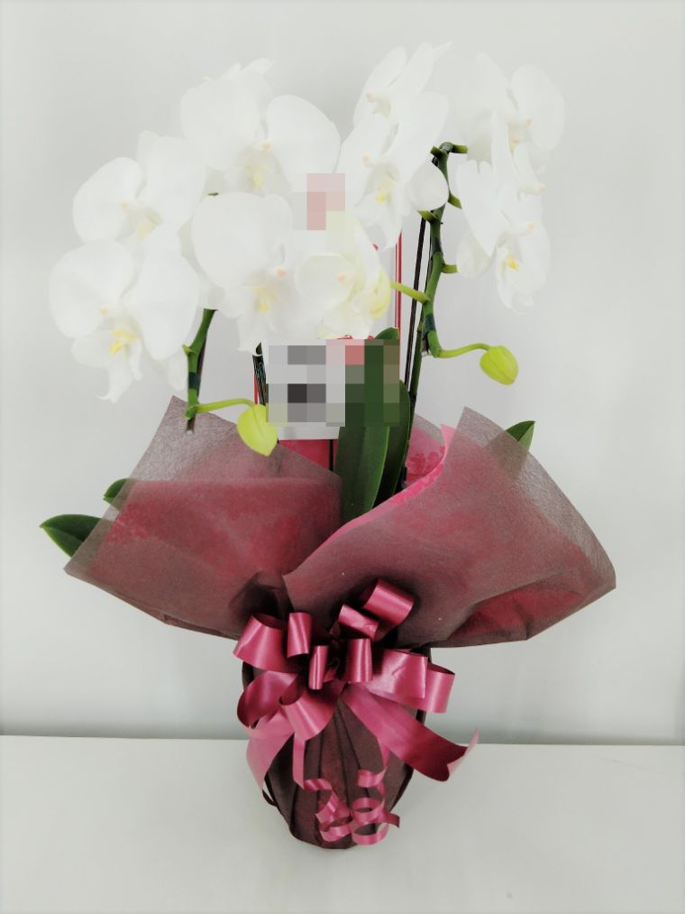 胡蝶蘭の実際にお届けした写真です。花秘書では発送前に写真をメールで送信致しますので安心して大切な顧客や取引様へのギフトにご利用頂けます。