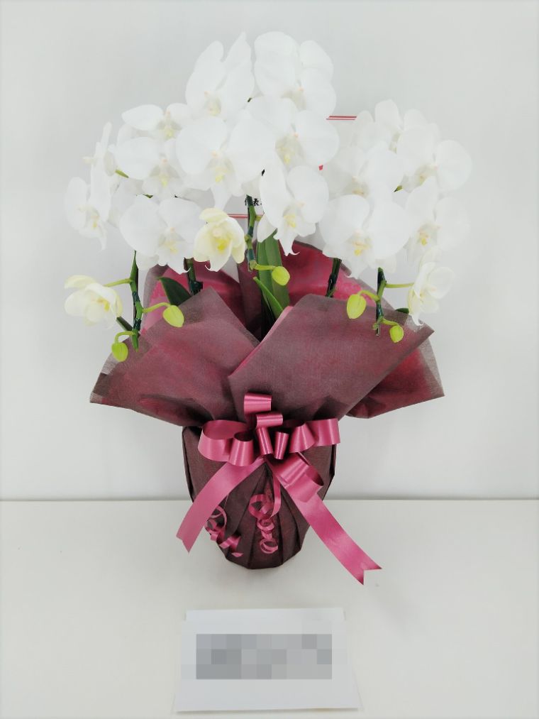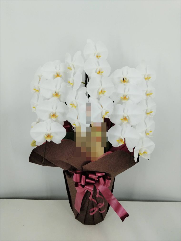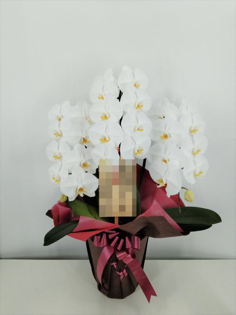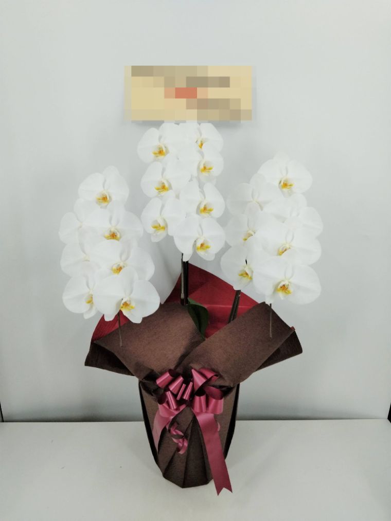 胡蝶蘭の実際にお届けした写真です。花秘書では発送前に写真をメールで送信致しますので安心して大切な顧客や取引様へのギフトにご利用頂けます。