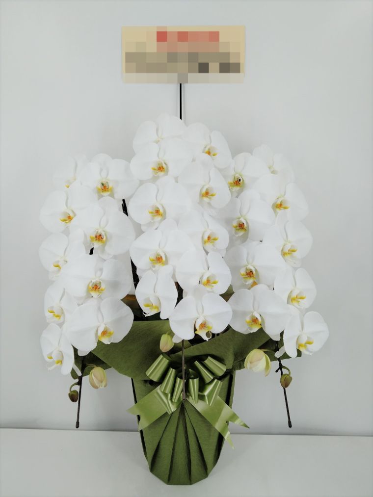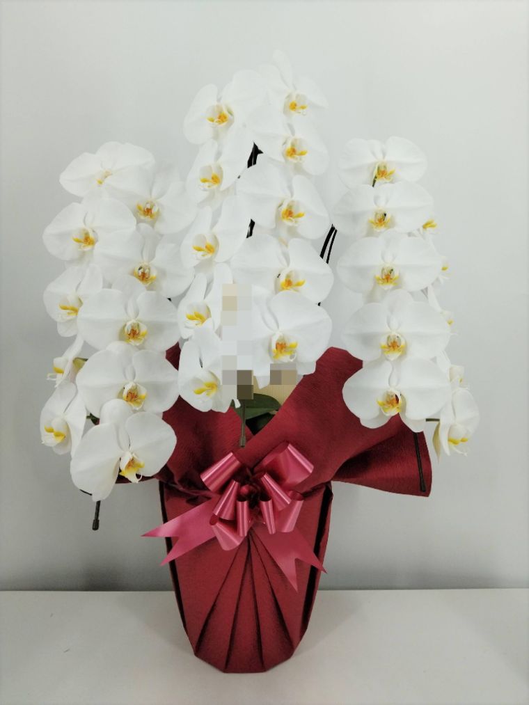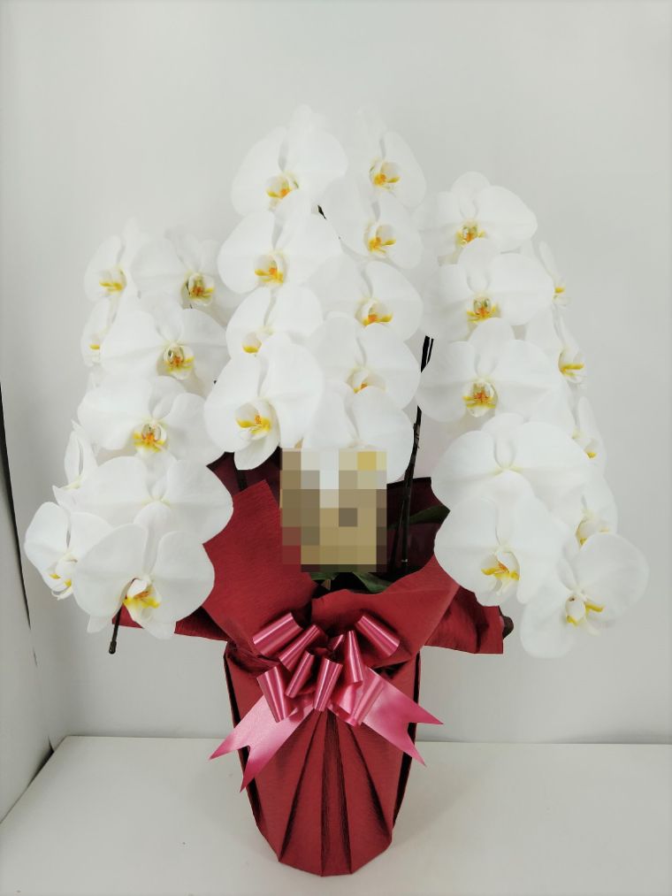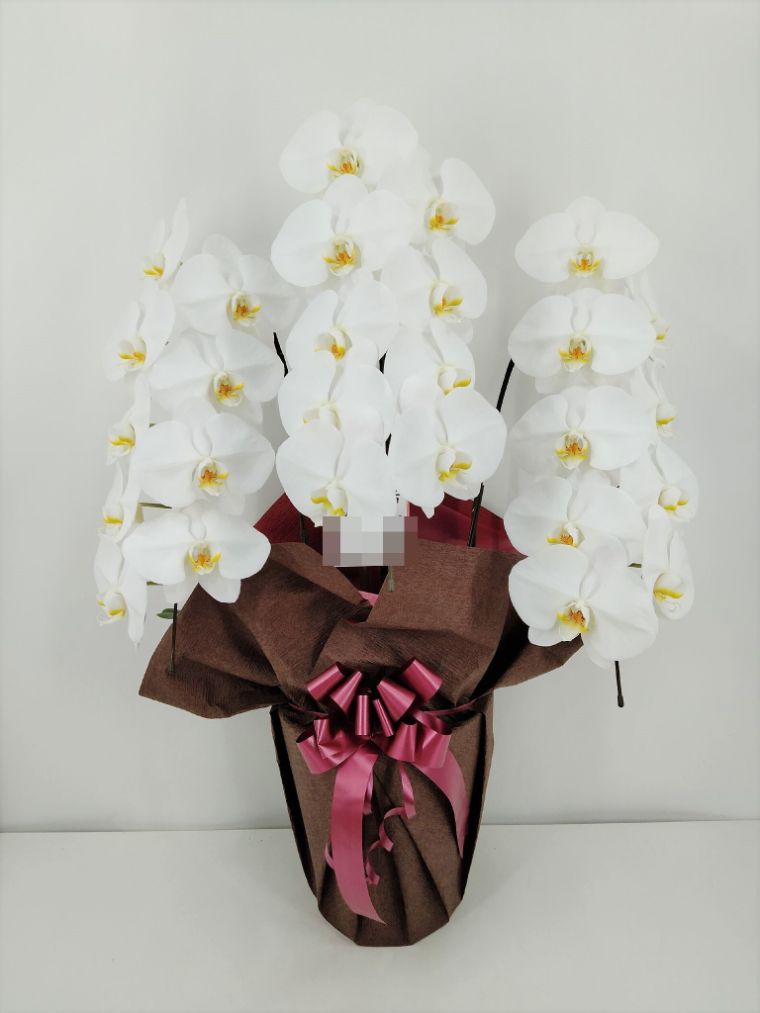 胡蝶蘭の実際にお届けした写真です。花秘書では発送前に写真をメールで送信致しますので安心して大切な顧客や取引様へのギフトにご利用頂けます。