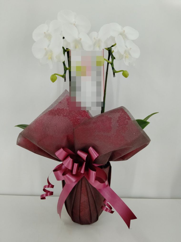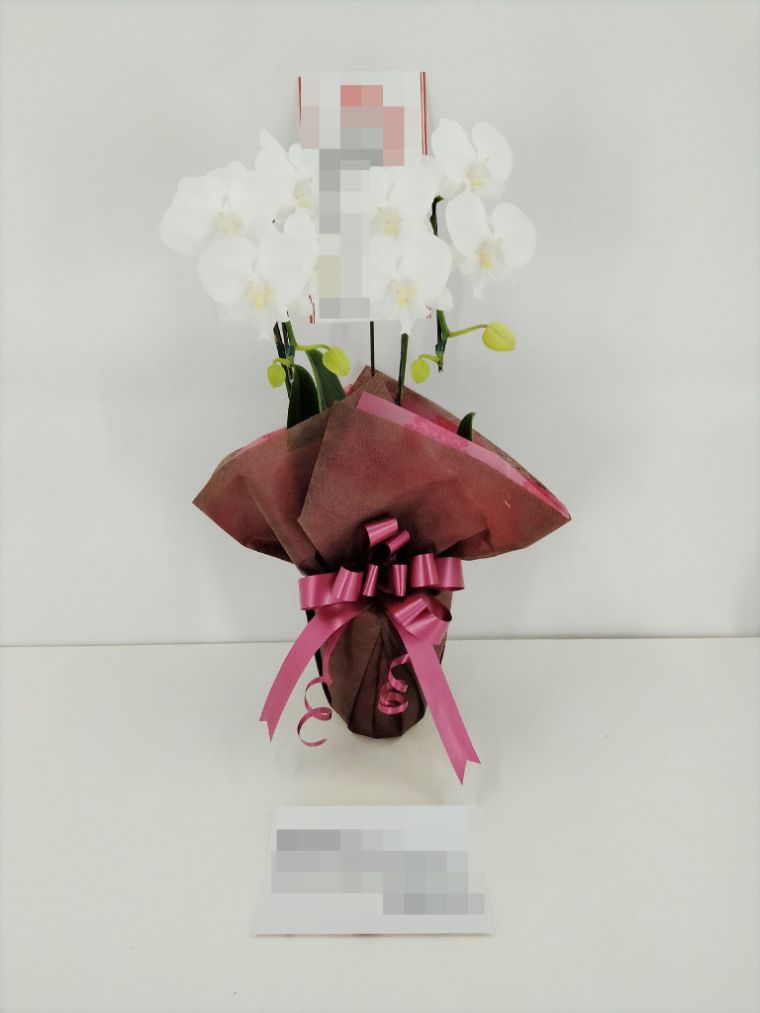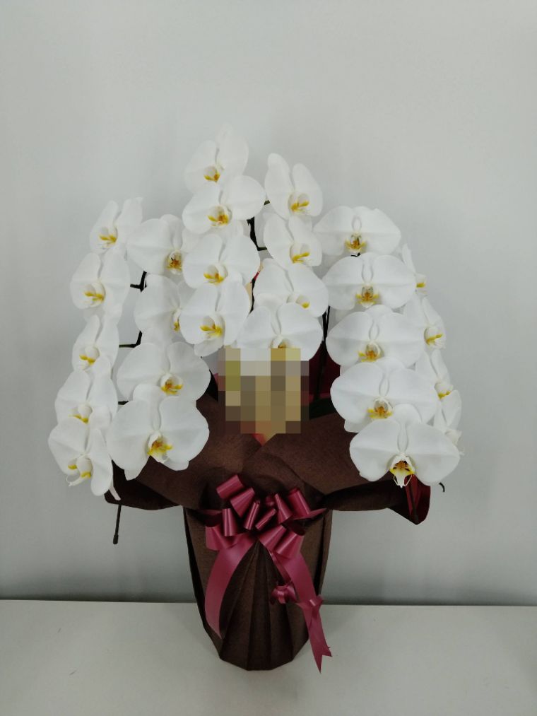 胡蝶蘭の実際にお届けした写真です。花秘書では発送前に写真をメールで送信致しますので安心して大切な顧客や取引様へのギフトにご利用頂けます。