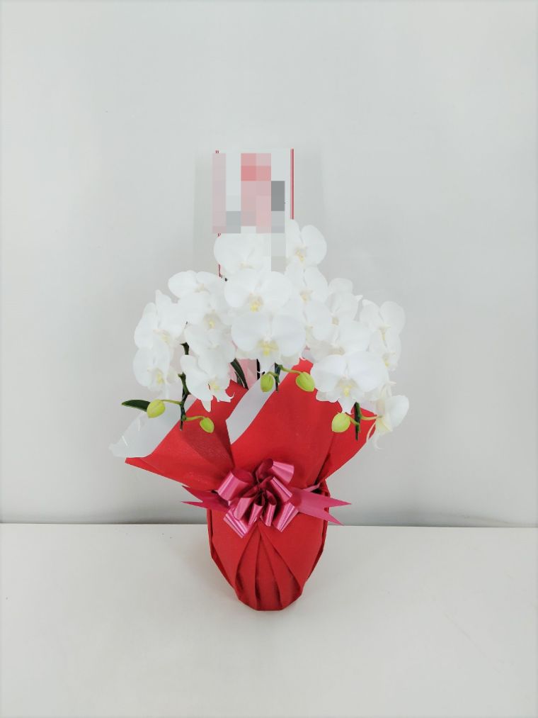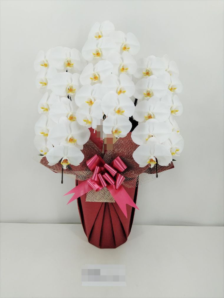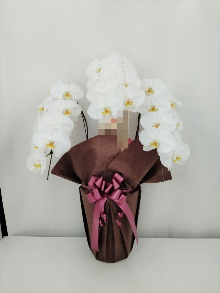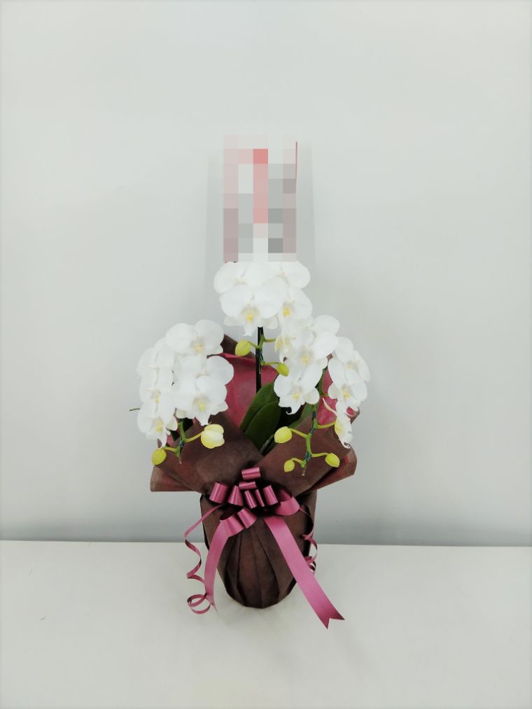 胡蝶蘭の実際にお届けした写真です。花秘書では発送前に写真をメールで送信致しますので安心して大切な顧客や取引様へのギフトにご利用頂けます。
