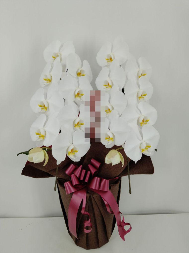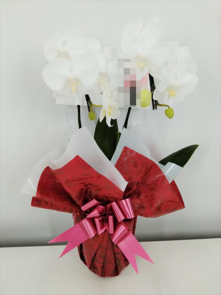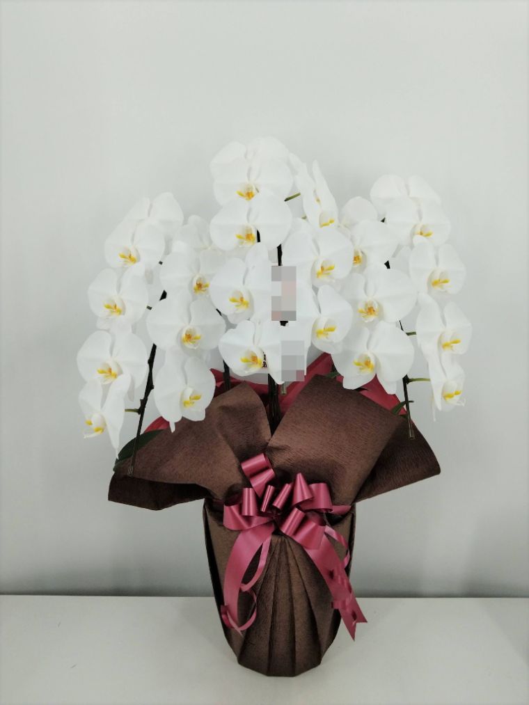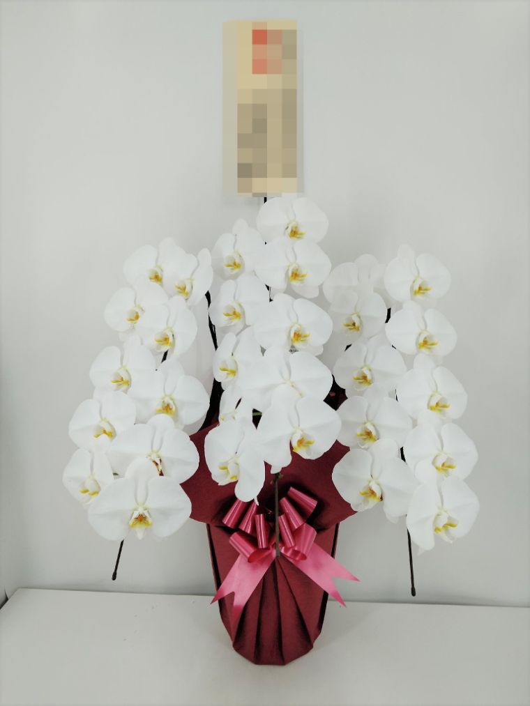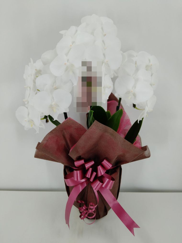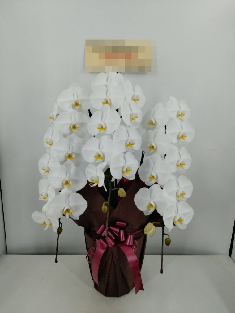 胡蝶蘭の実際にお届けした写真です。花秘書では発送前に写真をメールで送信致しますので安心して大切な顧客や取引様へのギフトにご利用頂けます。