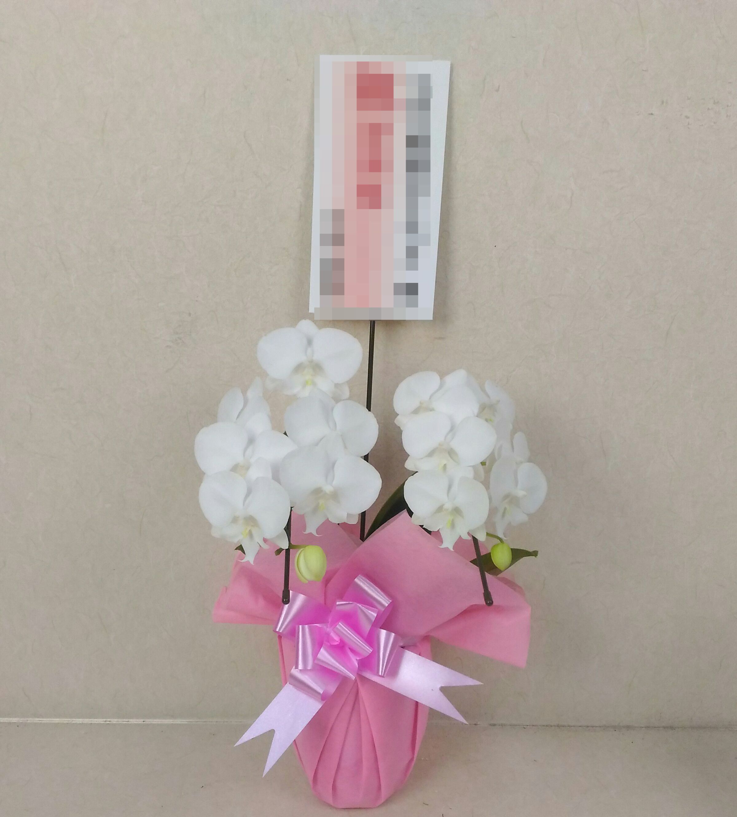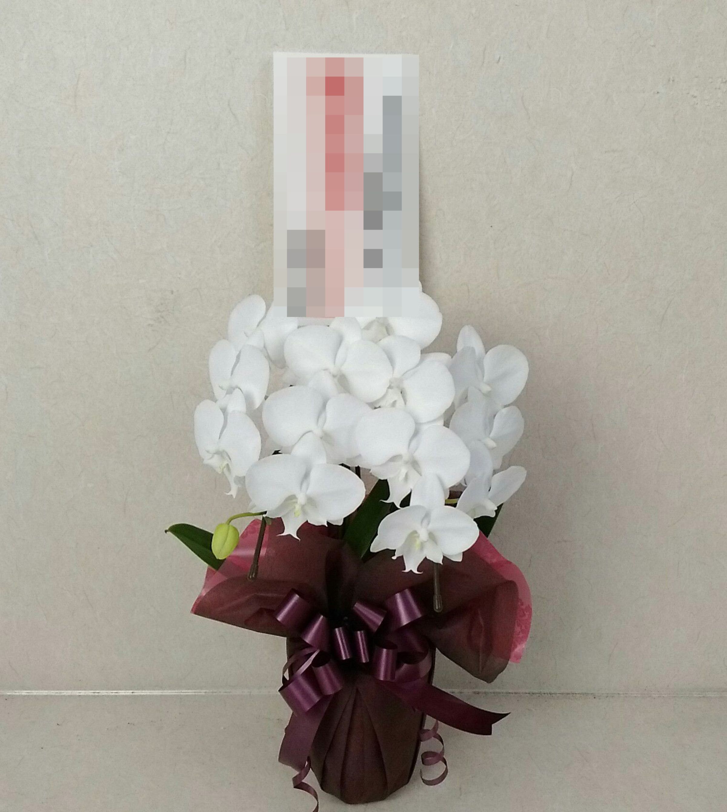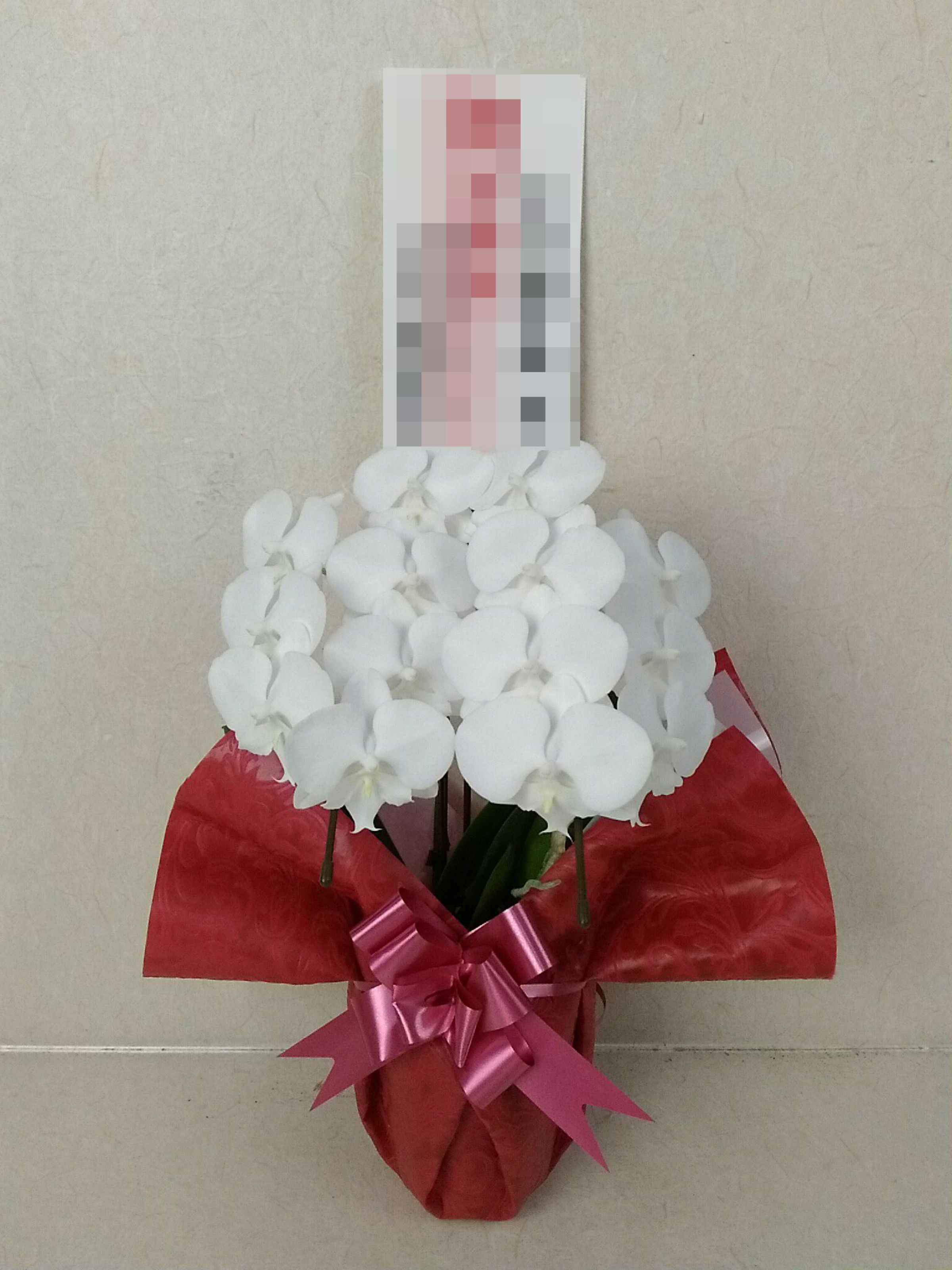 胡蝶蘭の実際にお届けした写真です。花秘書では発送前に写真をメールで送信致しますので安心して大切な顧客や取引様へのギフトにご利用頂けます。