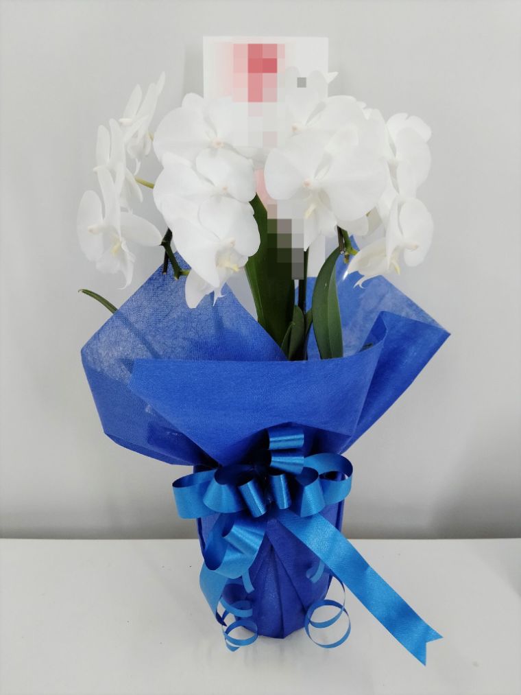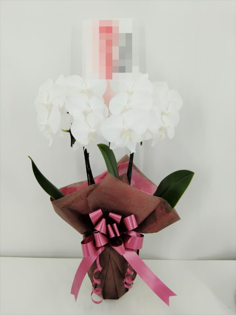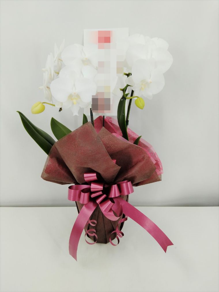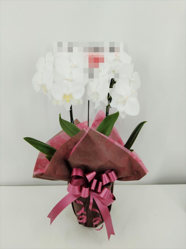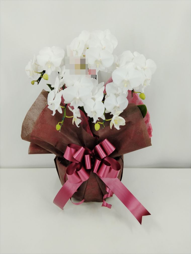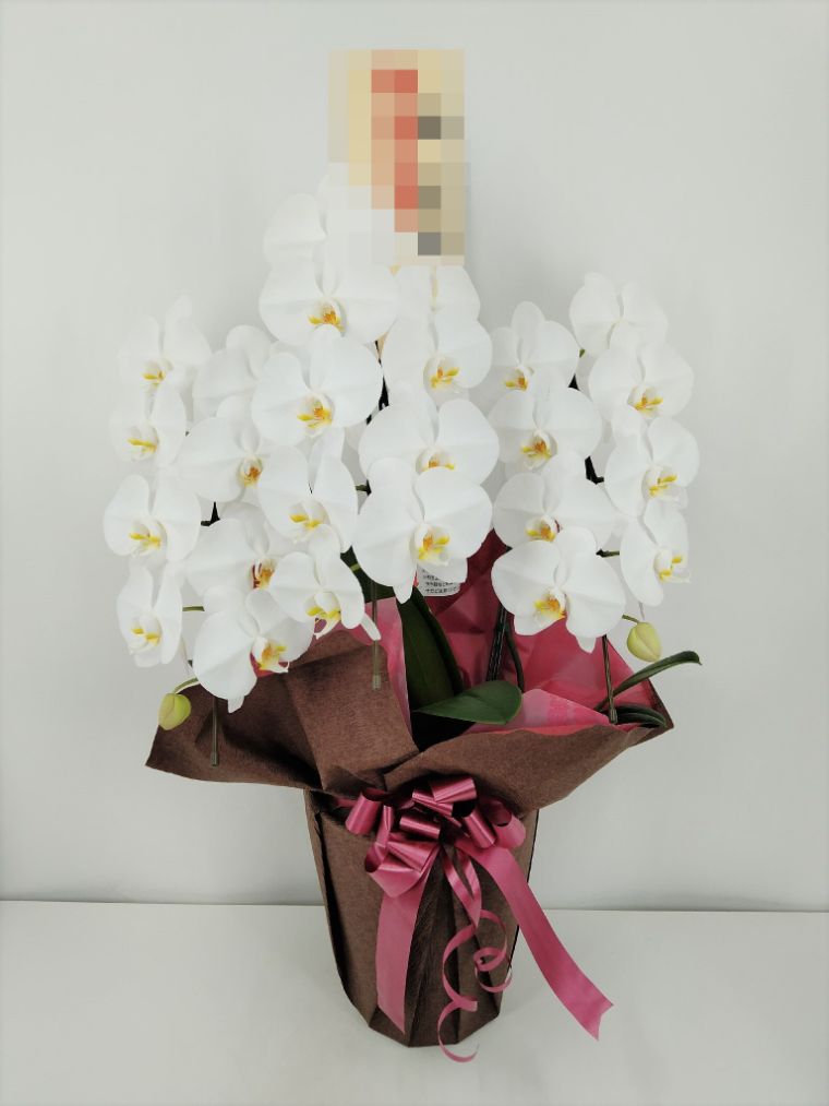 胡蝶蘭の実際にお届けした写真です。花秘書では発送前に写真をメールで送信致しますので安心して大切な顧客や取引様へのギフトにご利用頂けます。