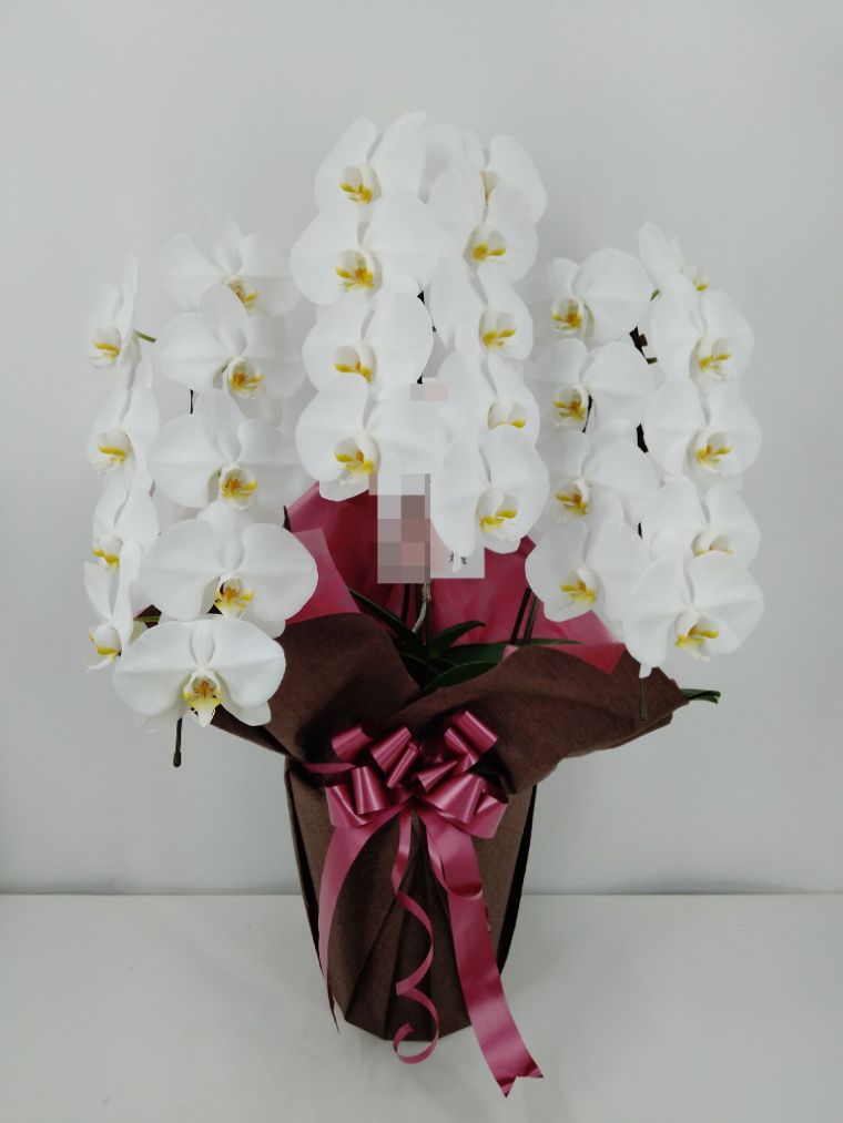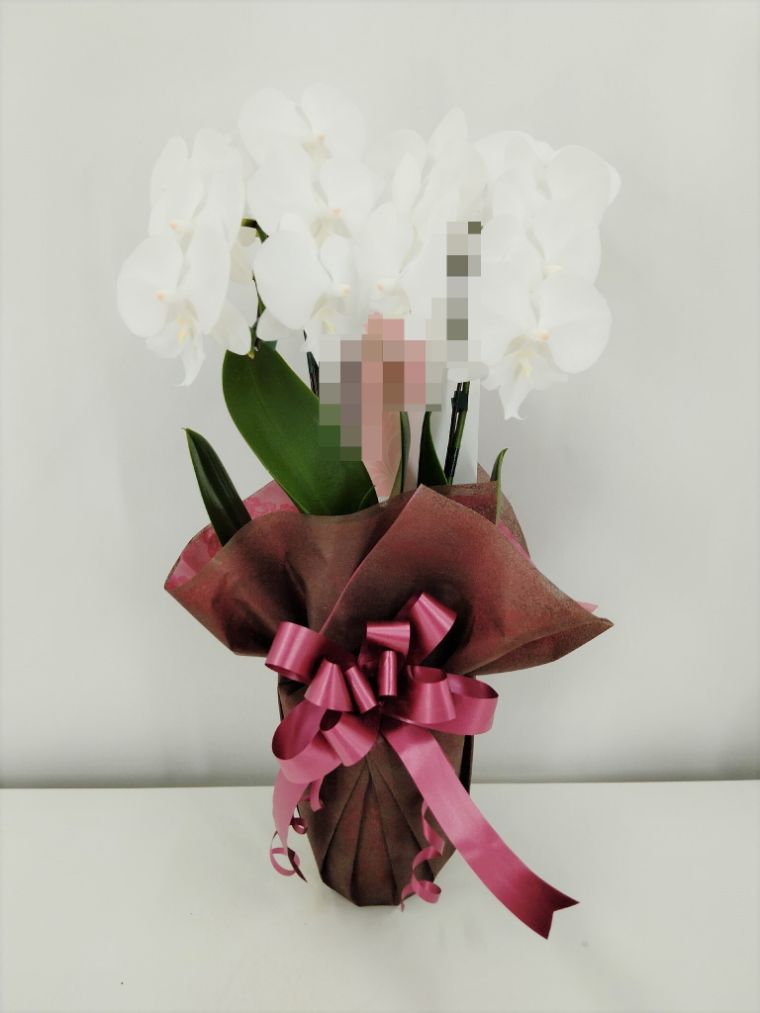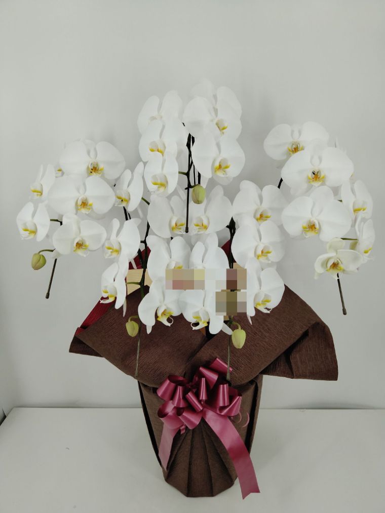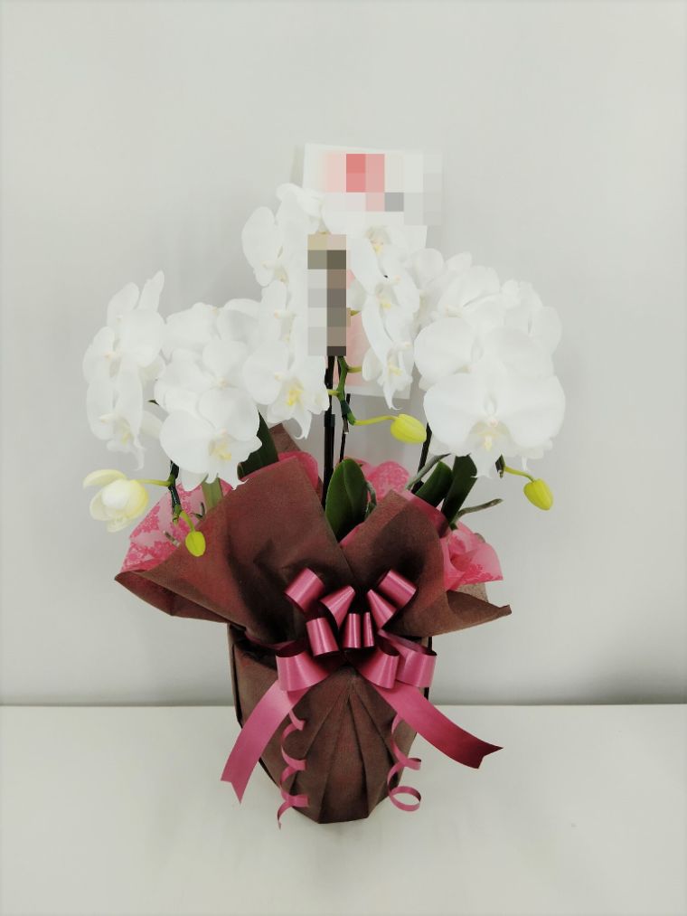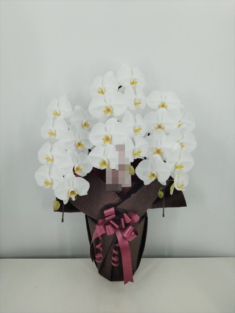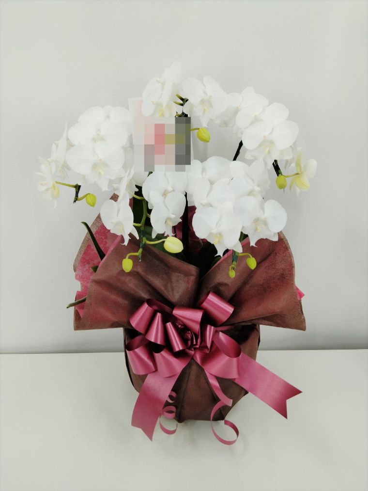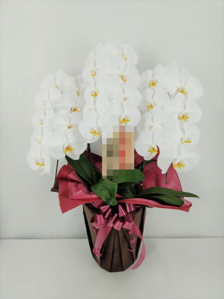 胡蝶蘭の実際にお届けした写真です。花秘書では発送前に写真をメールで送信致しますので安心して大切な顧客や取引様へのギフトにご利用頂けます。