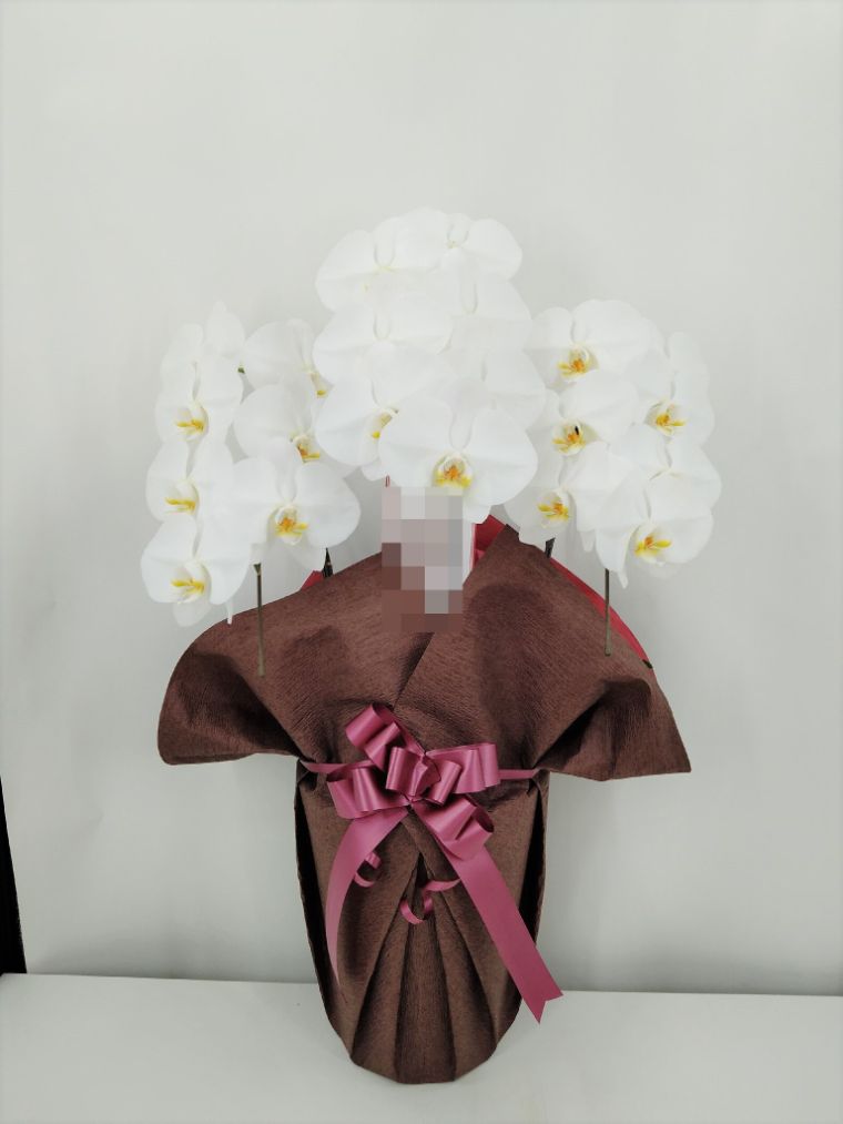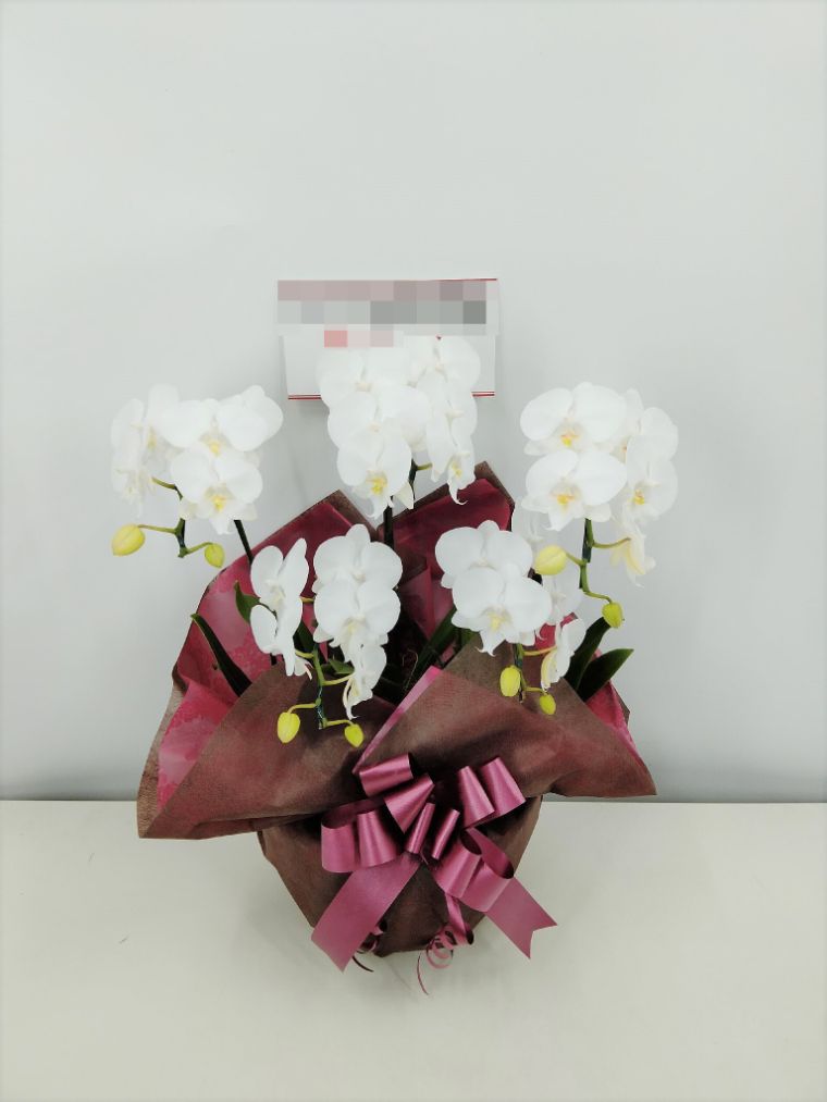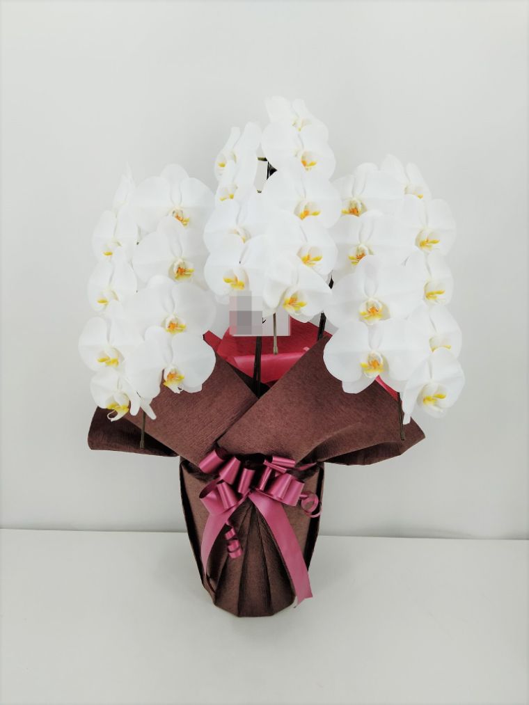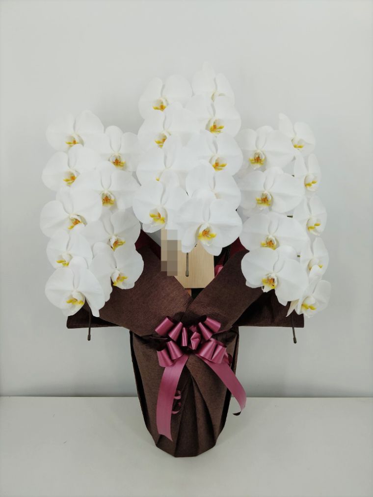 胡蝶蘭の実際にお届けした写真です。花秘書では発送前に写真をメールで送信致しますので安心して大切な顧客や取引様へのギフトにご利用頂けます。