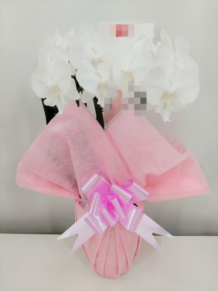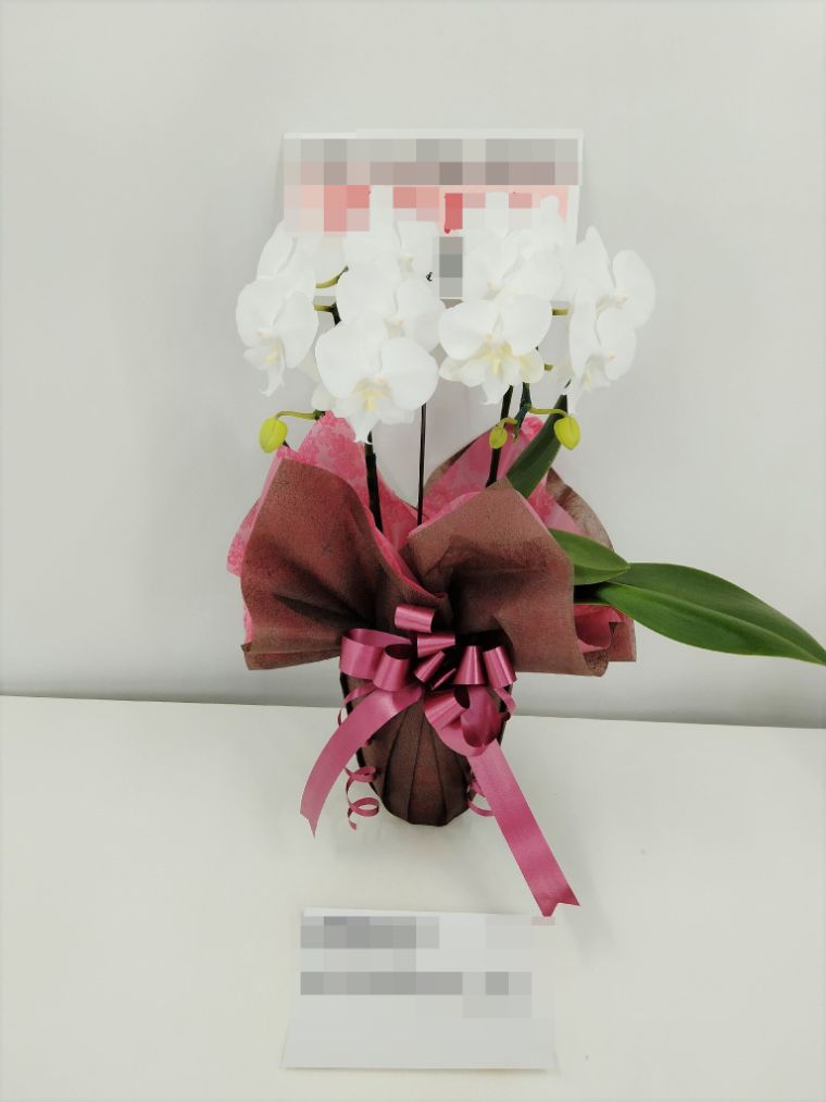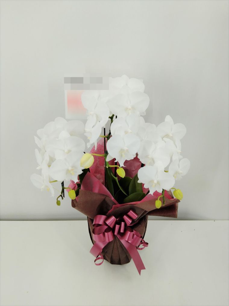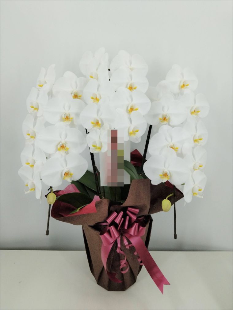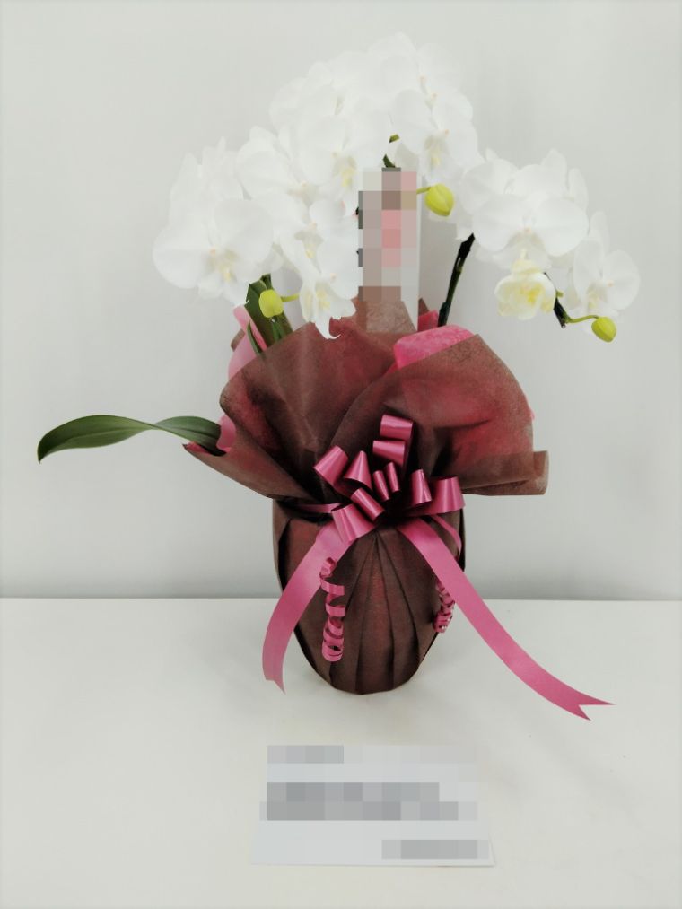 胡蝶蘭の実際にお届けした写真です。花秘書では発送前に写真をメールで送信致しますので安心して大切な顧客や取引様へのギフトにご利用頂けます。