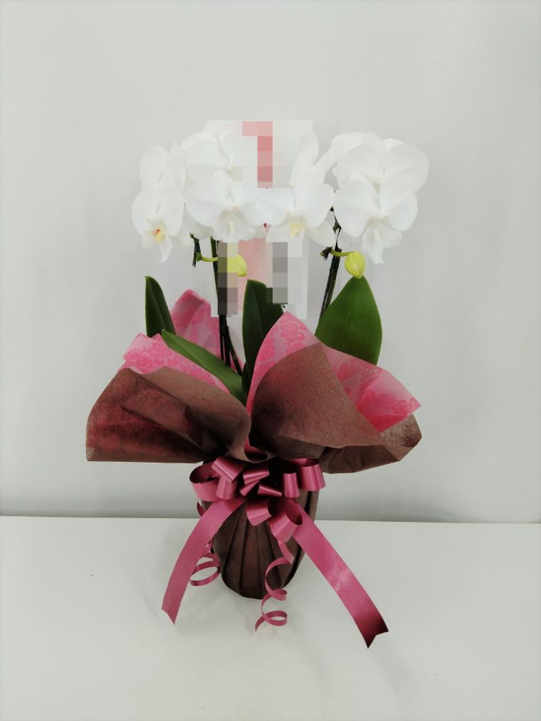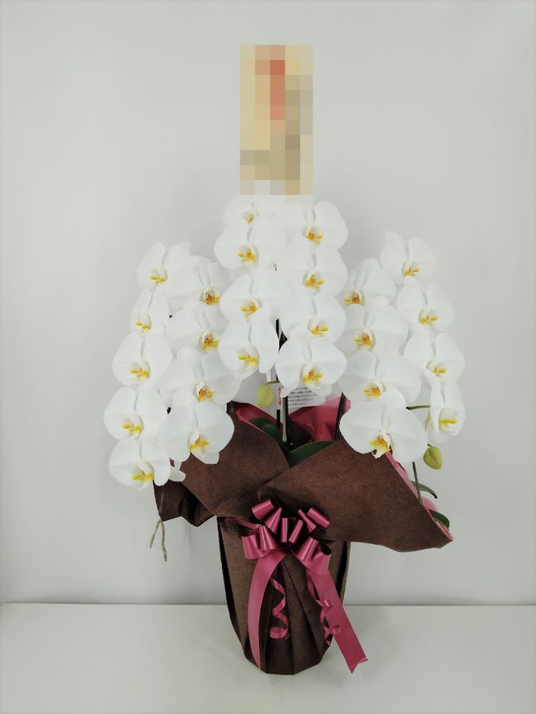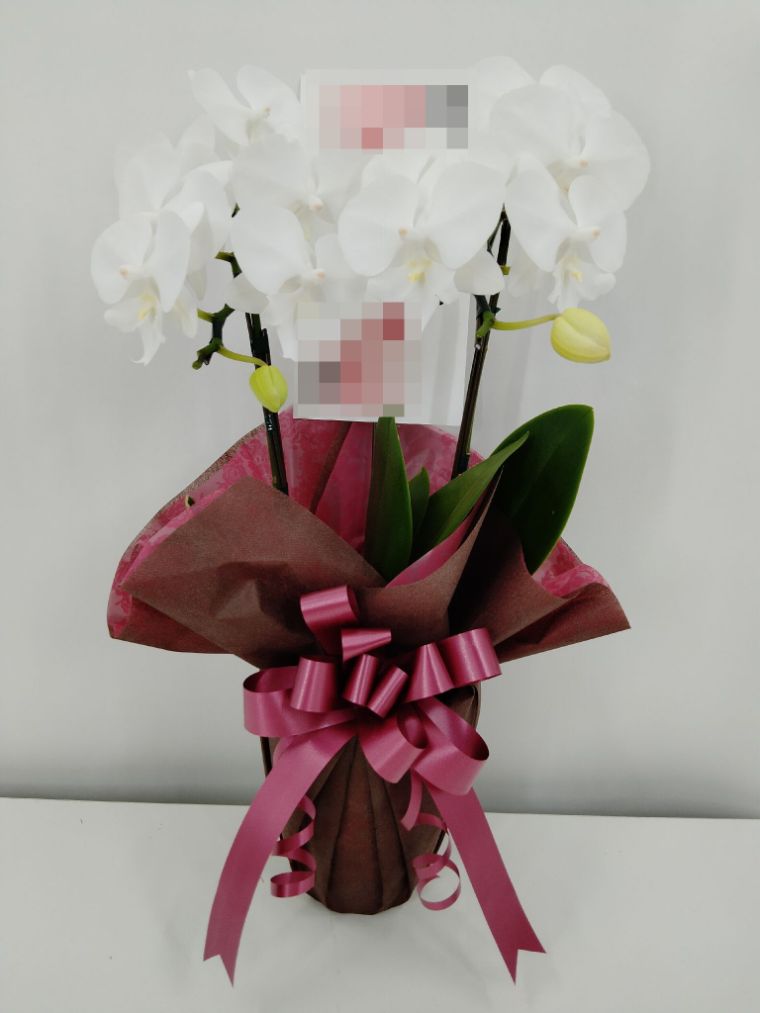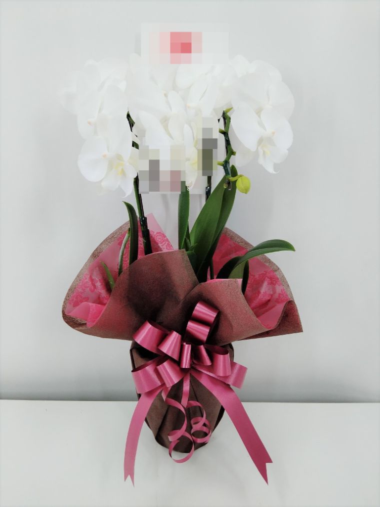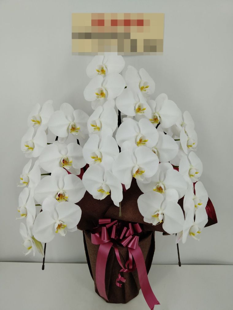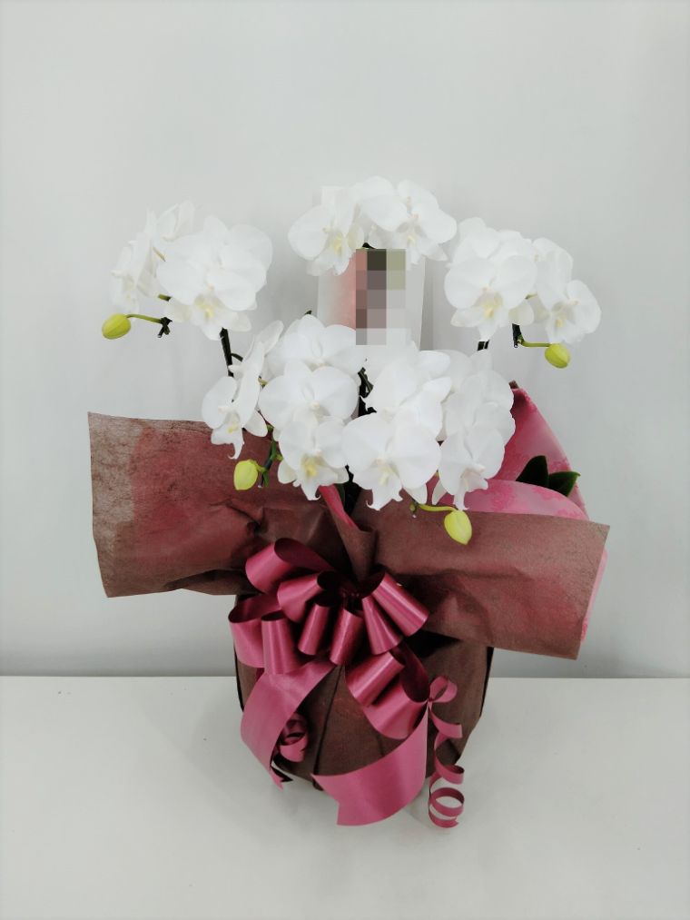 胡蝶蘭の実際にお届けした写真です。花秘書では発送前に写真をメールで送信致しますので安心して大切な顧客や取引様へのギフトにご利用頂けます。