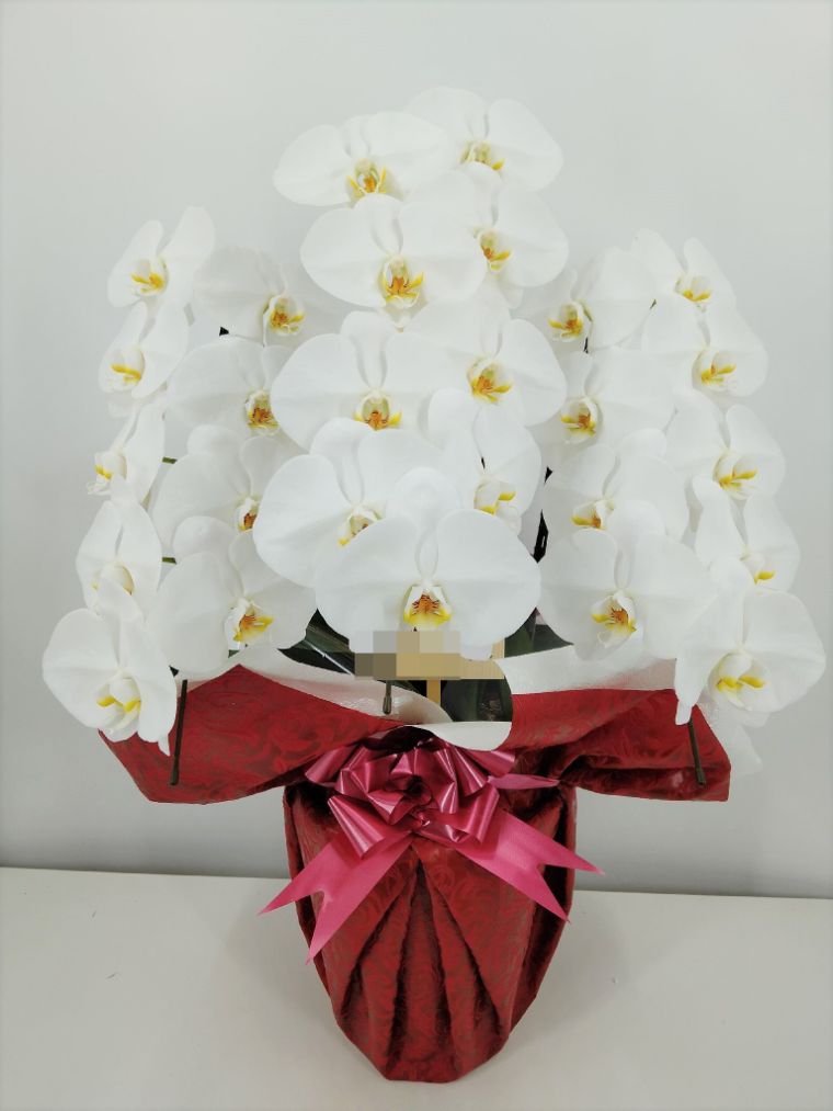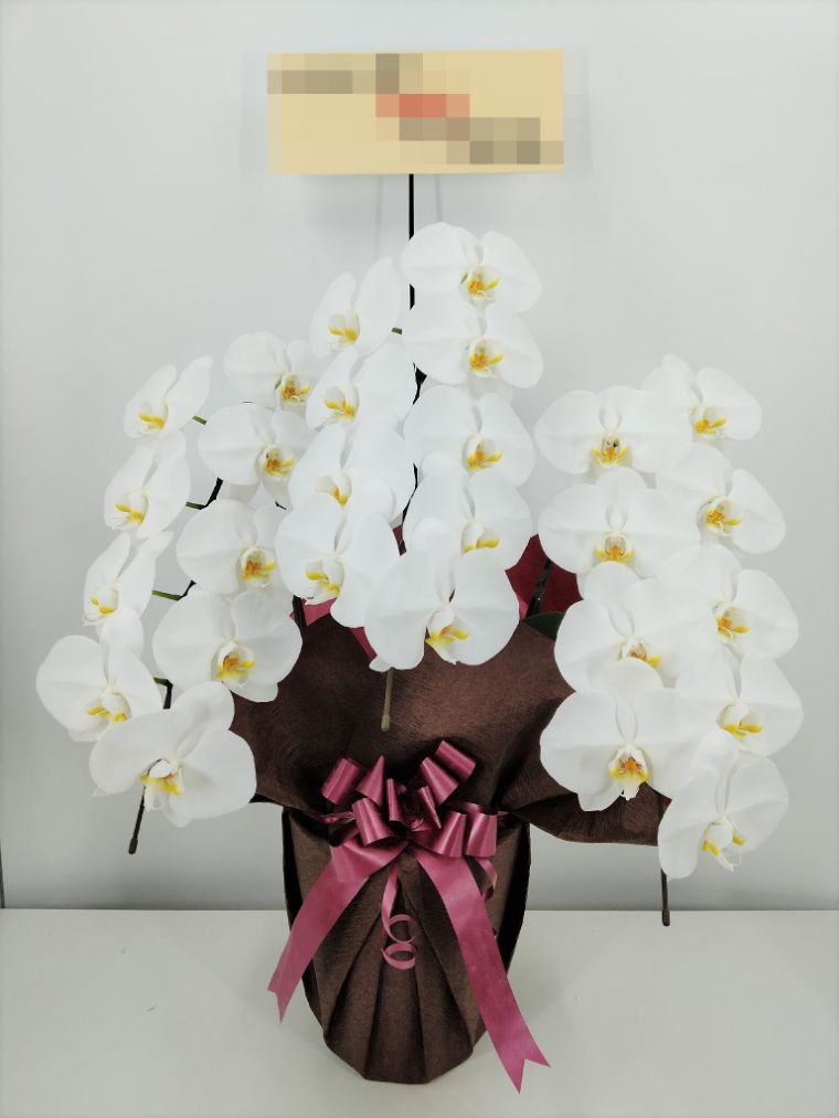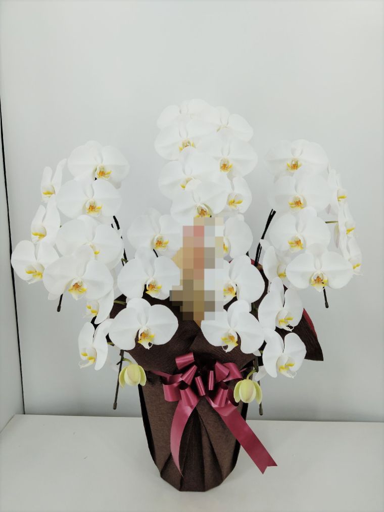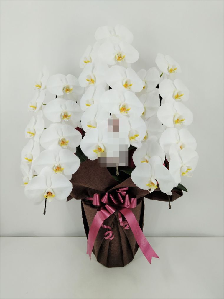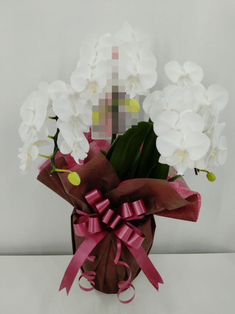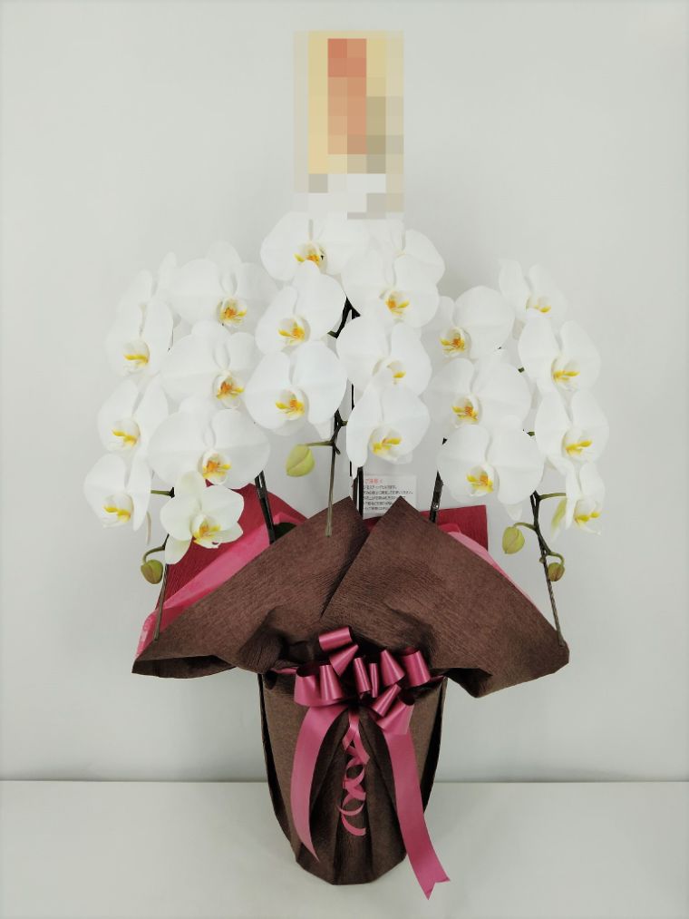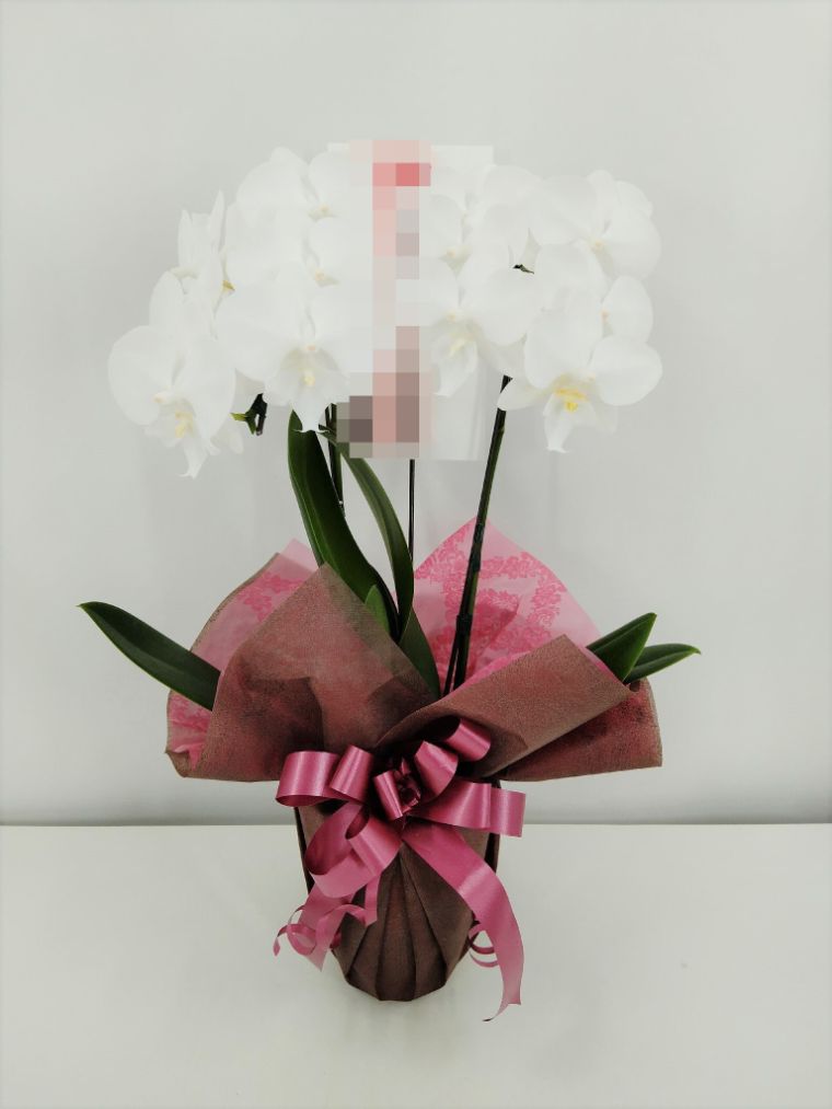 胡蝶蘭の実際にお届けした写真です。花秘書では発送前に写真をメールで送信致しますので安心して大切な顧客や取引様へのギフトにご利用頂けます。