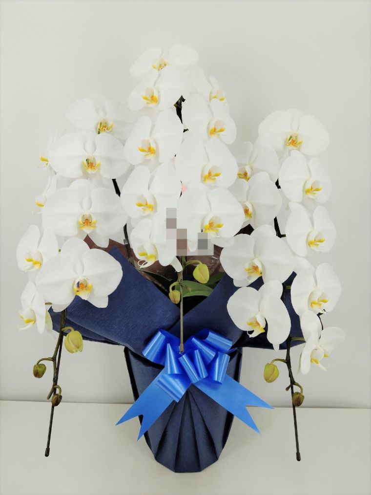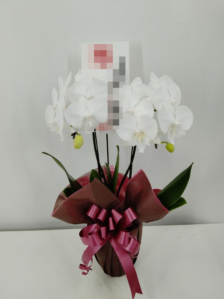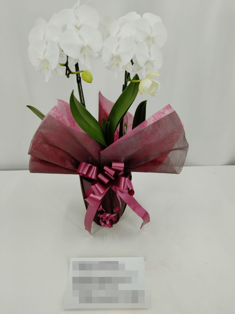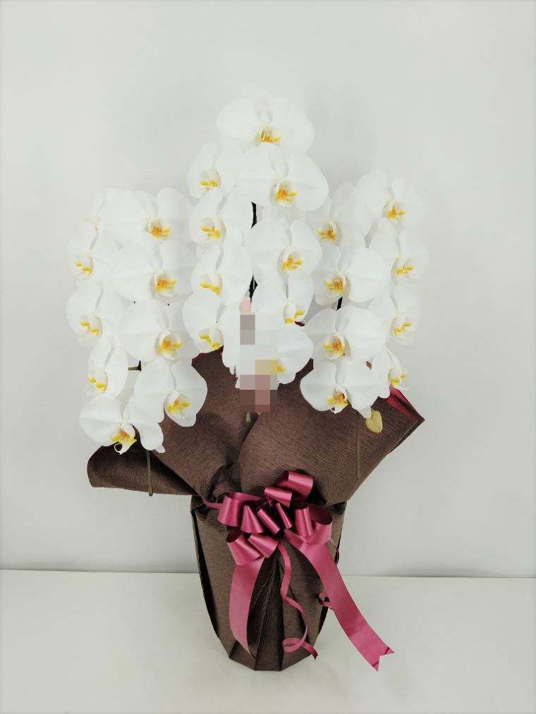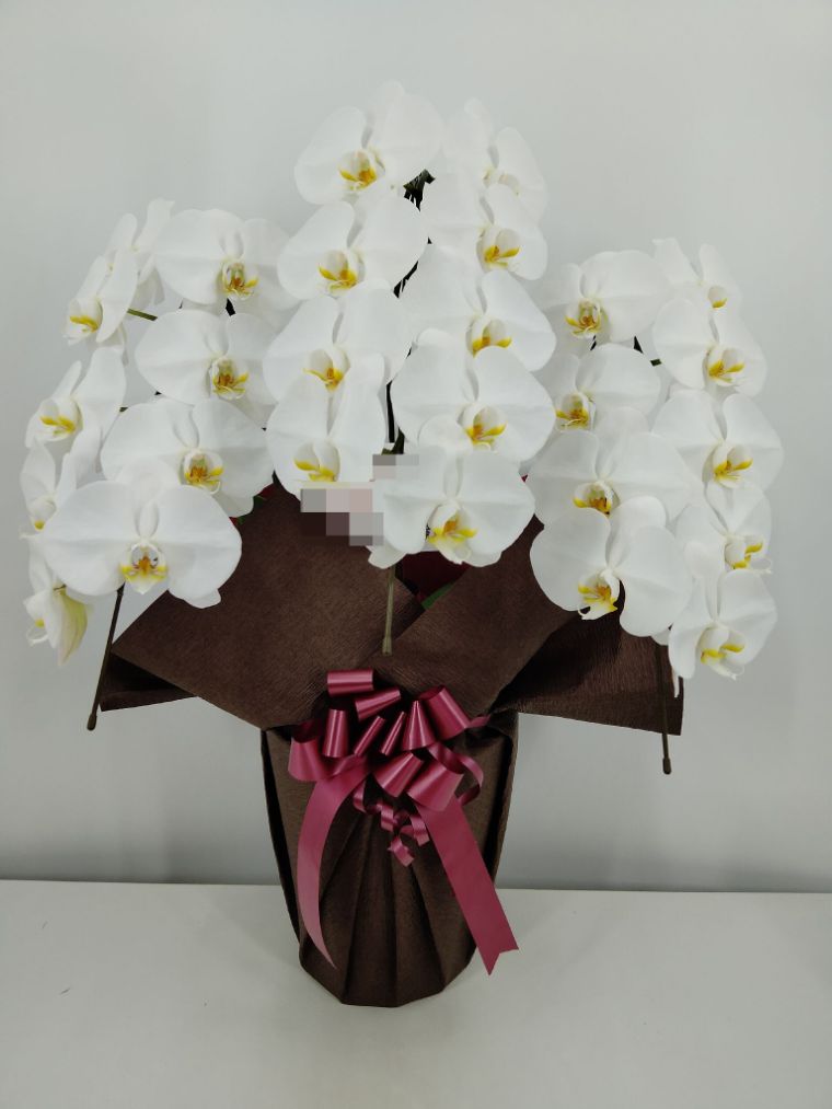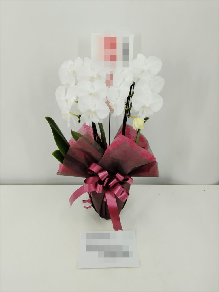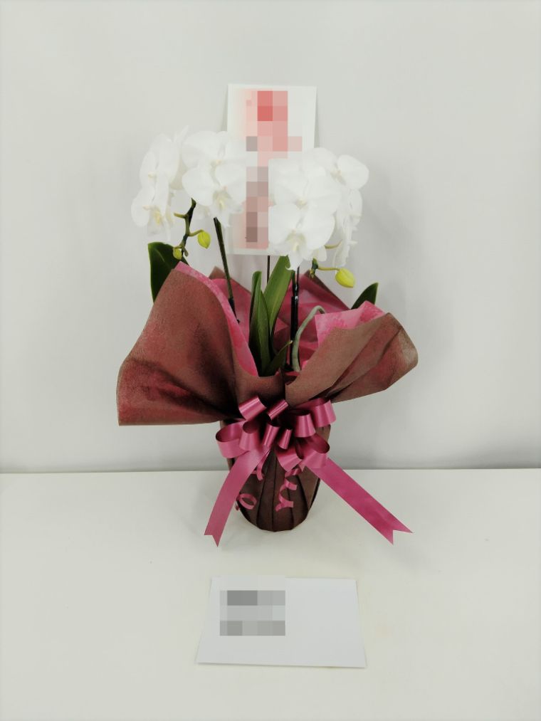 胡蝶蘭の実際にお届けした写真です。花秘書では発送前に写真をメールで送信致しますので安心して大切な顧客や取引様へのギフトにご利用頂けます。