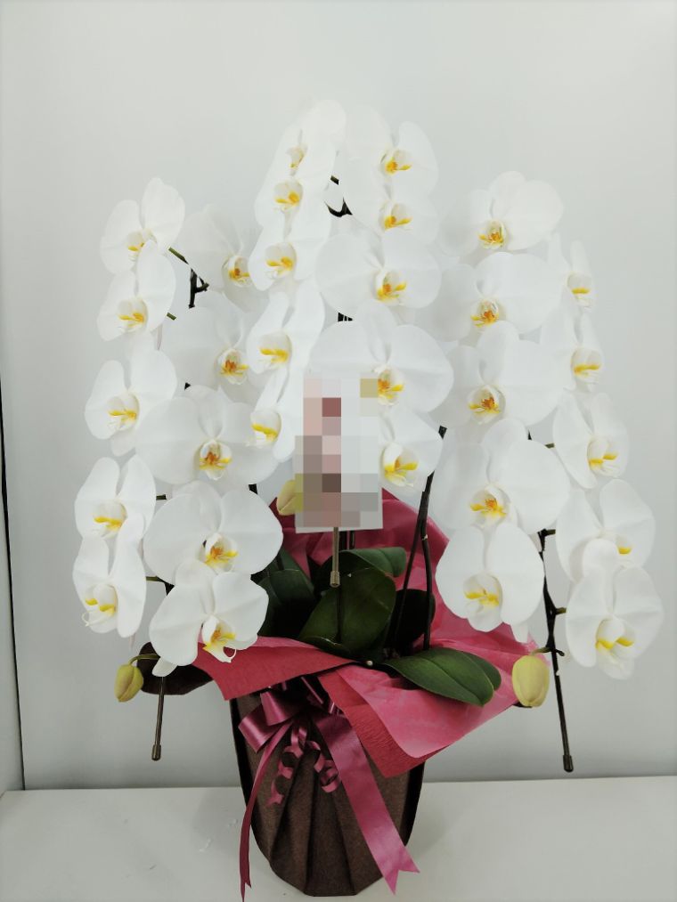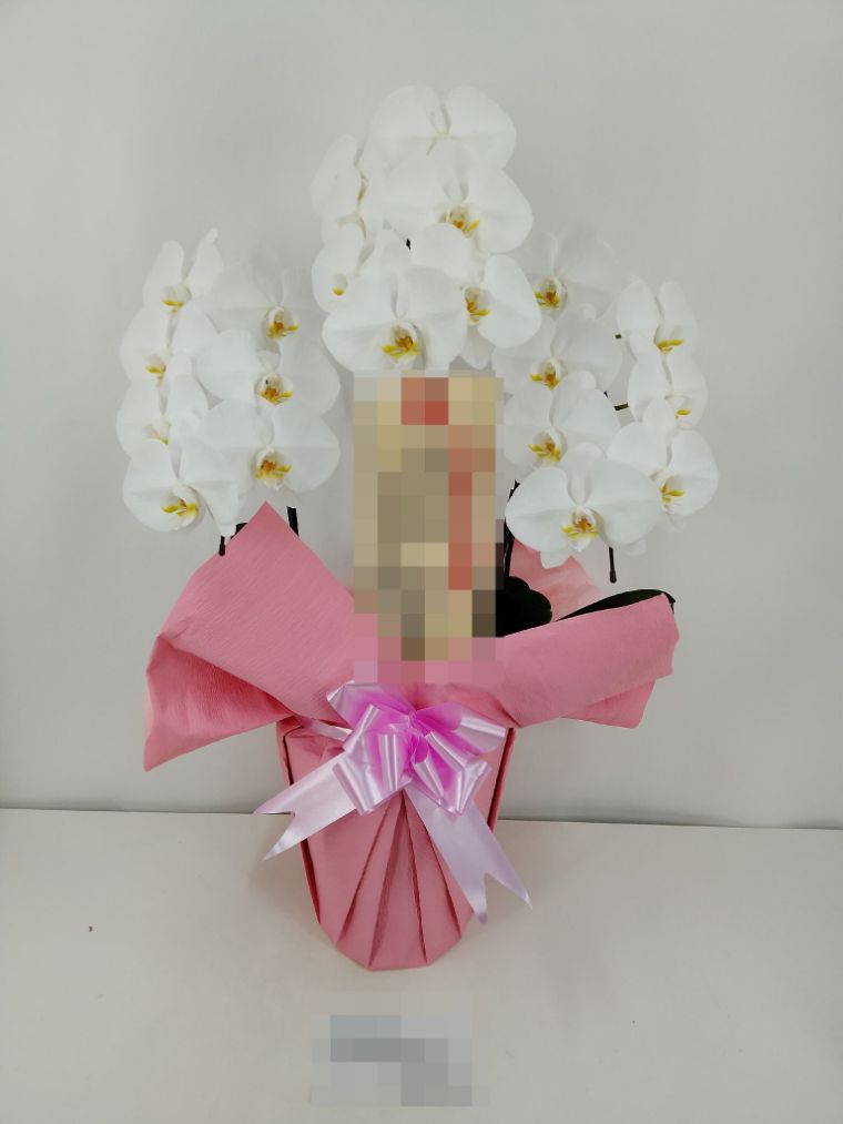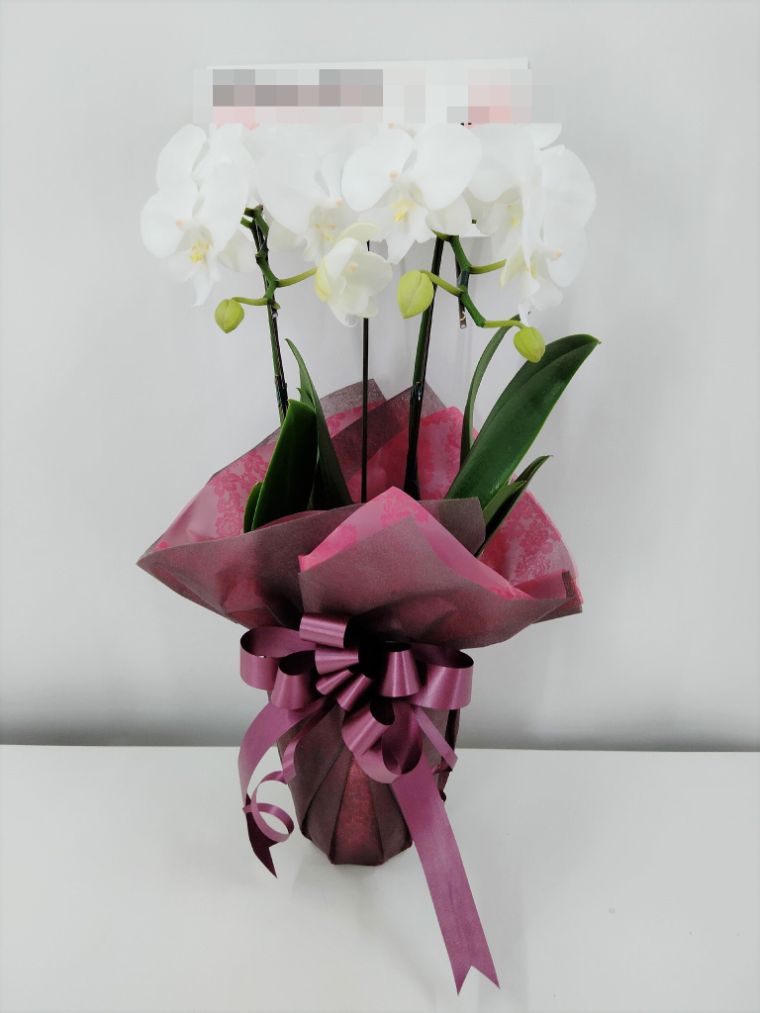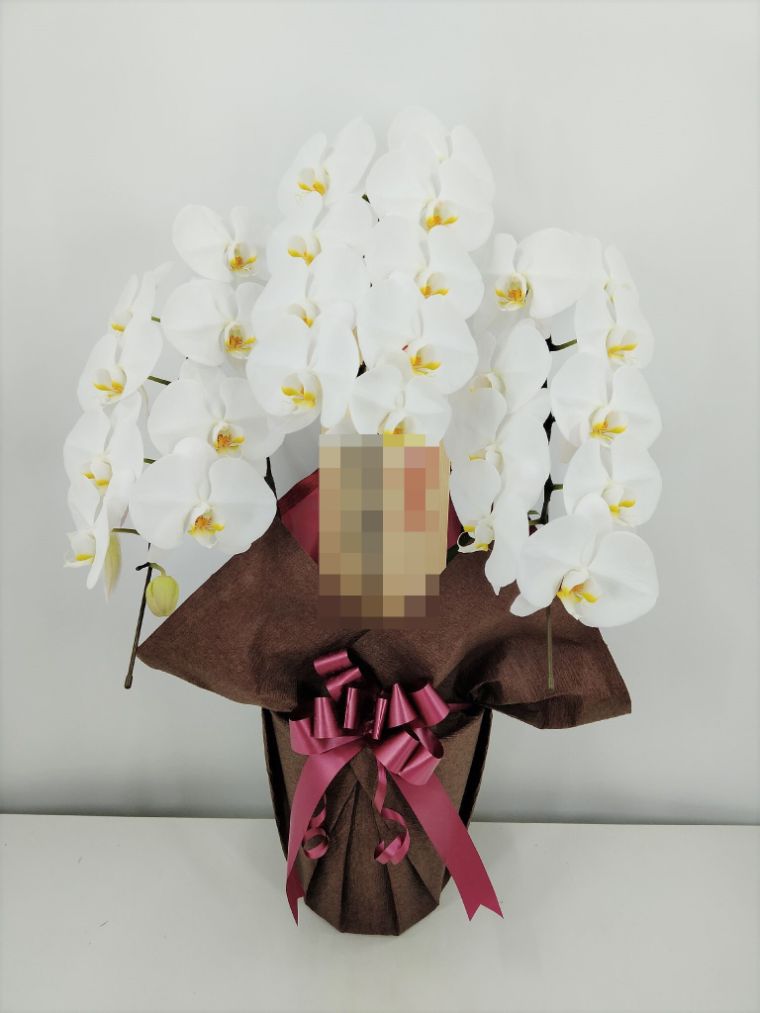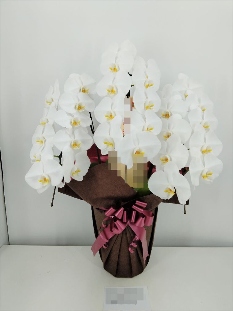 胡蝶蘭の実際にお届けした写真です。花秘書では発送前に写真をメールで送信致しますので安心して大切な顧客や取引様へのギフトにご利用頂けます。