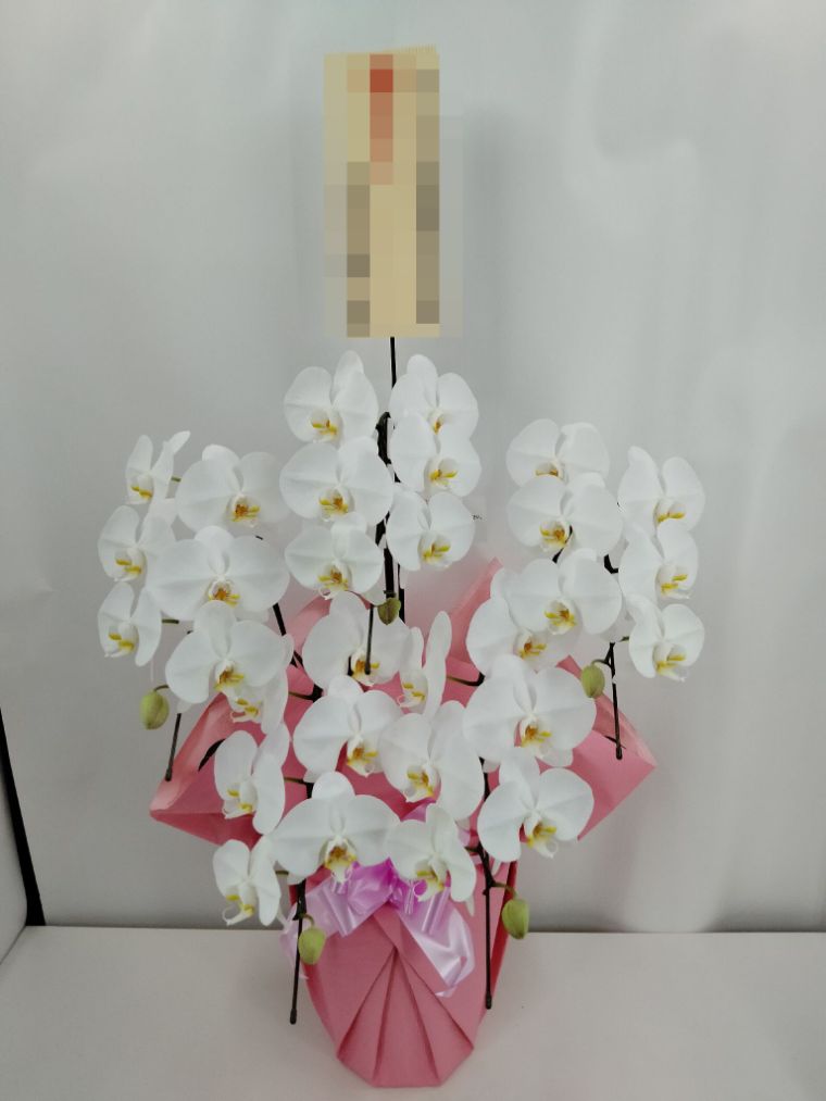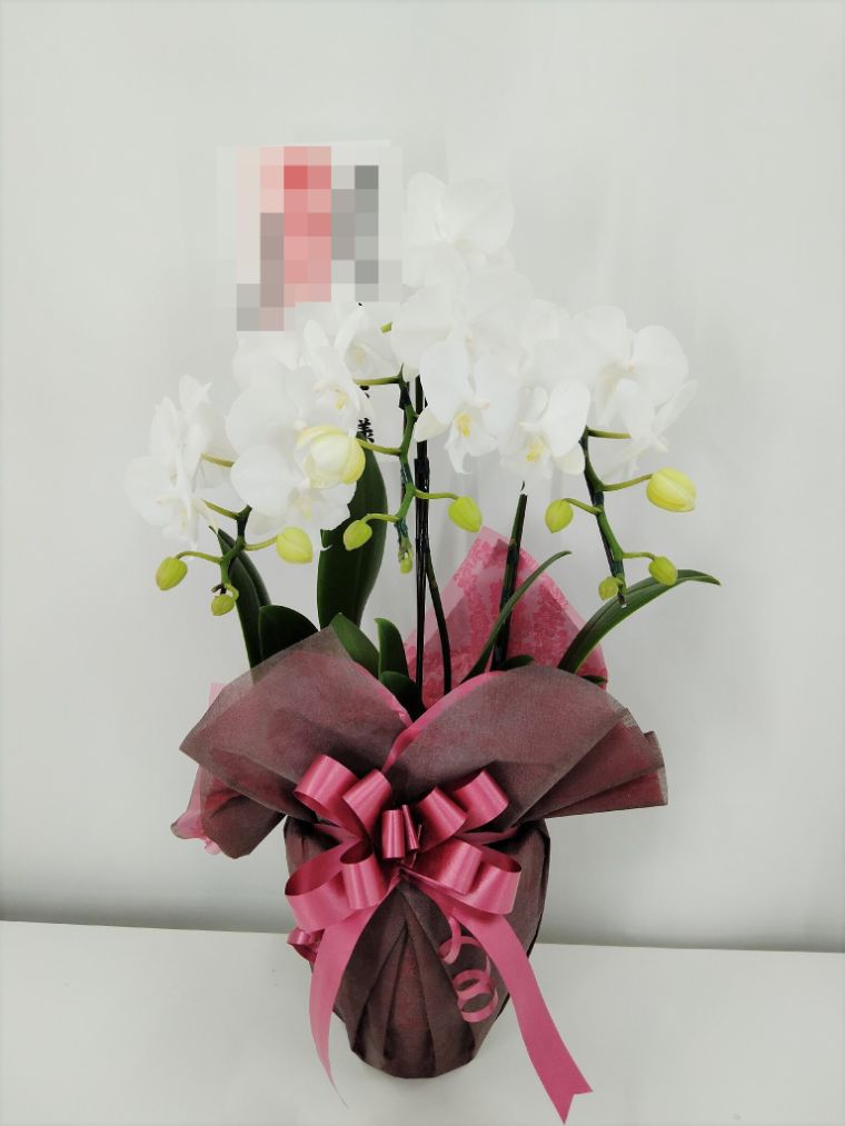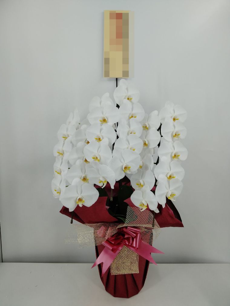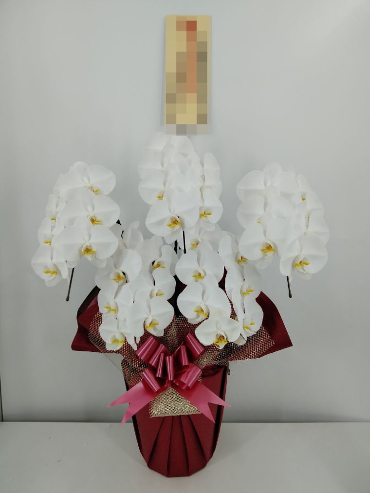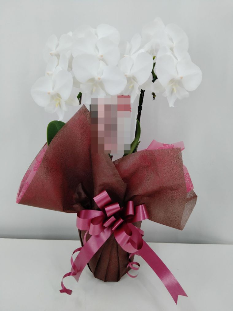 胡蝶蘭の実際にお届けした写真です。花秘書では発送前に写真をメールで送信致しますので安心して大切な顧客や取引様へのギフトにご利用頂けます。