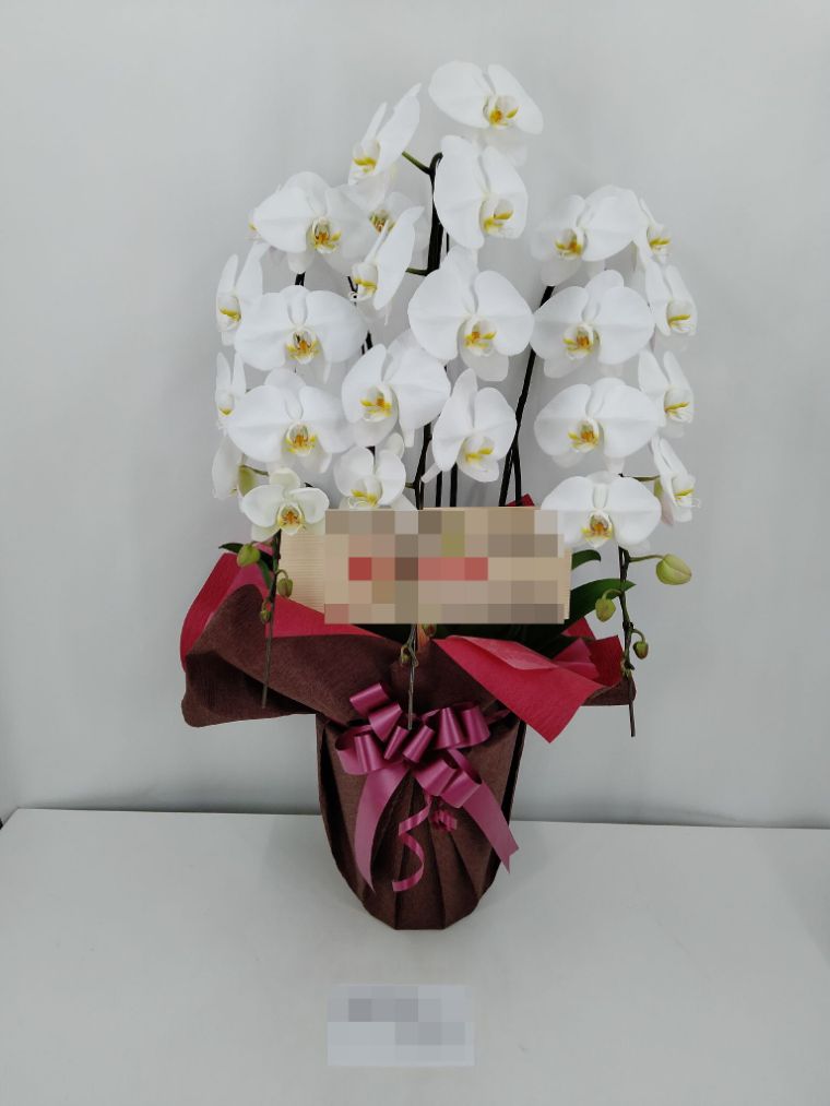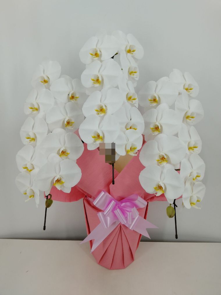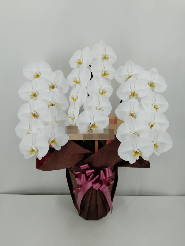 胡蝶蘭の実際にお届けした写真です。花秘書では発送前に写真をメールで送信致しますので安心して大切な顧客や取引様へのギフトにご利用頂けます。