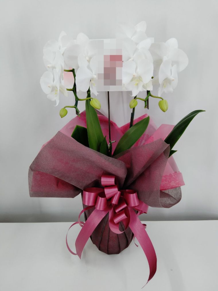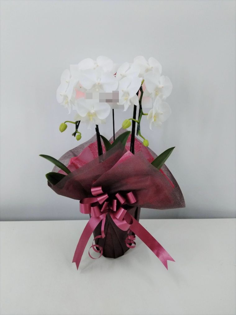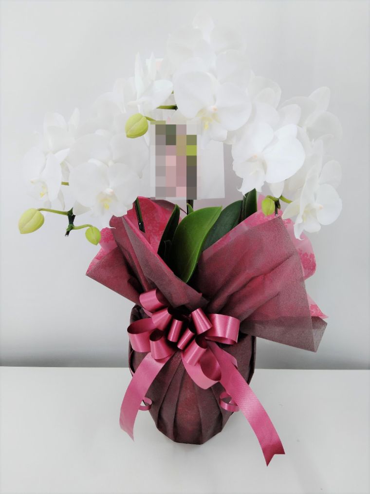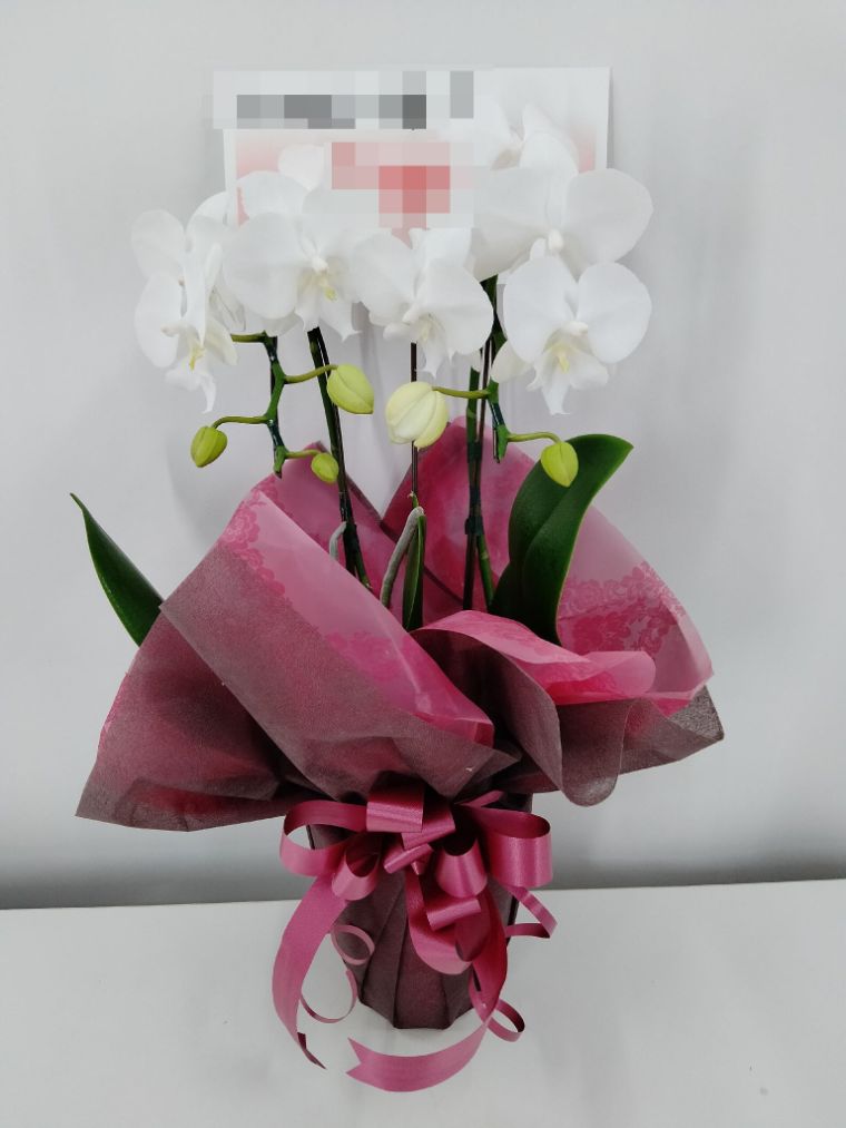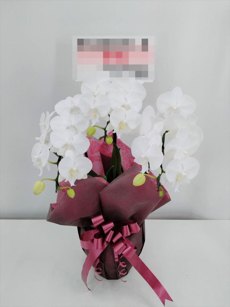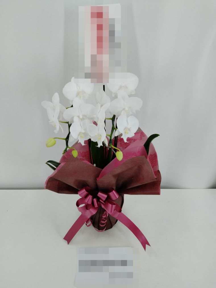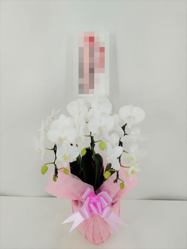 胡蝶蘭の実際にお届けした写真です。花秘書では発送前に写真をメールで送信致しますので安心して大切な顧客や取引様へのギフトにご利用頂けます。