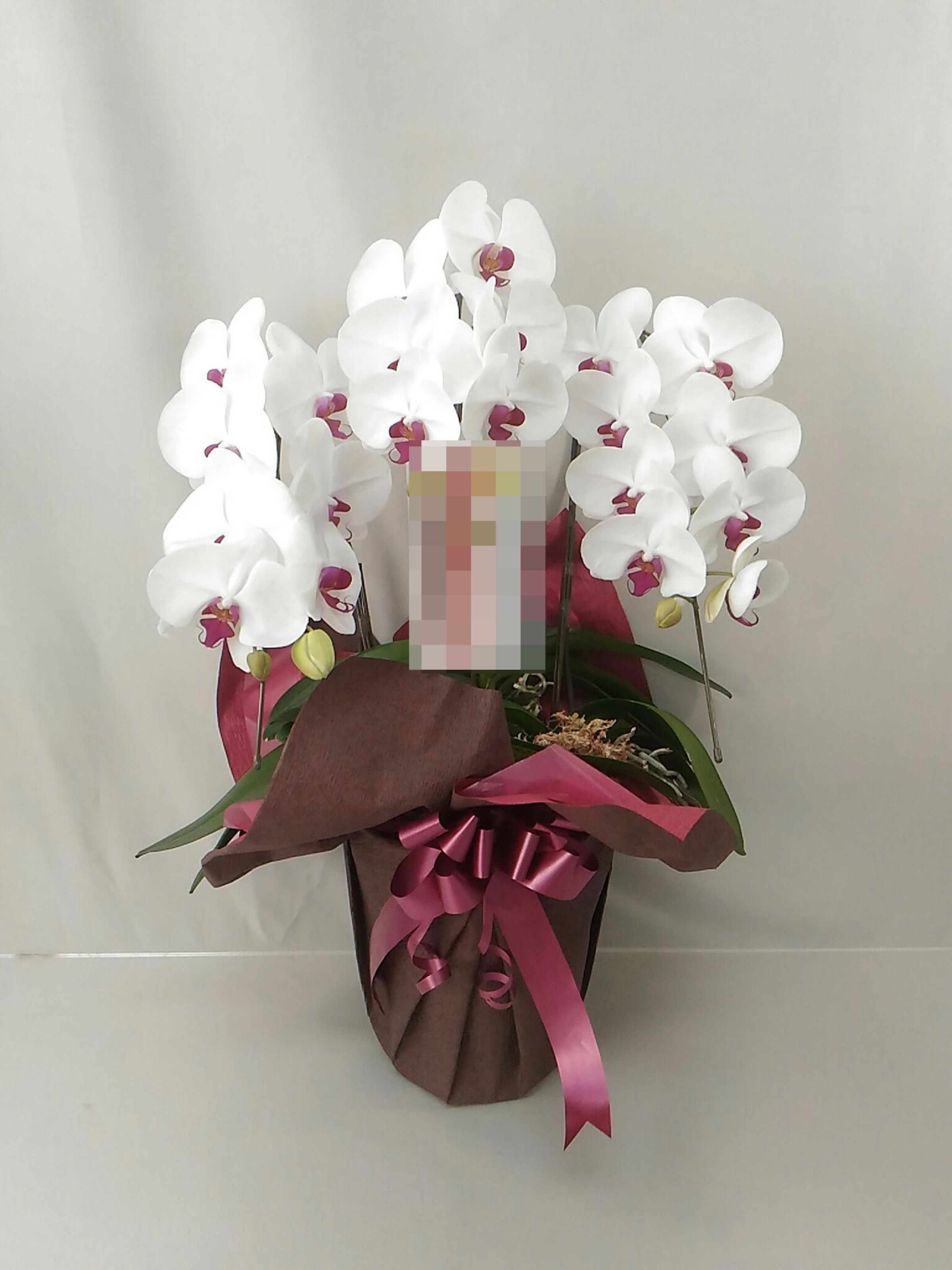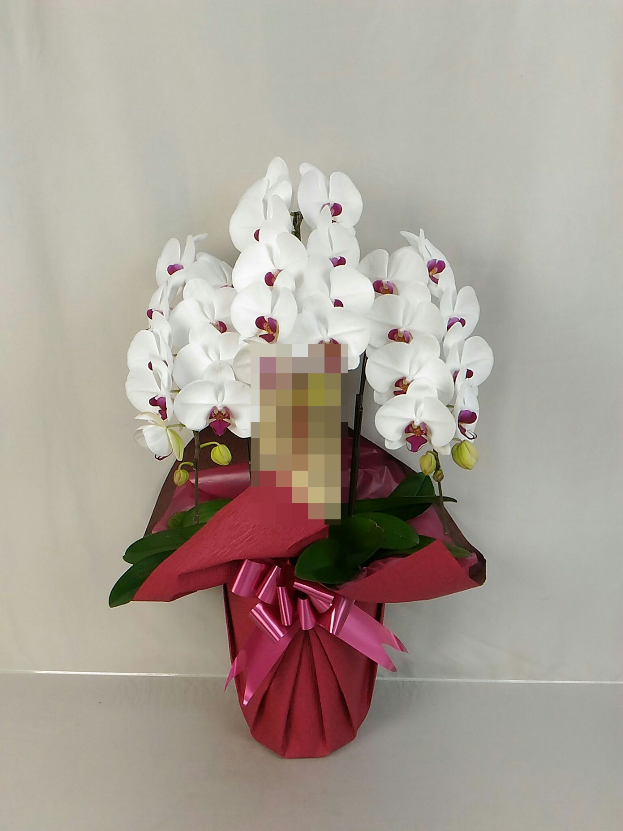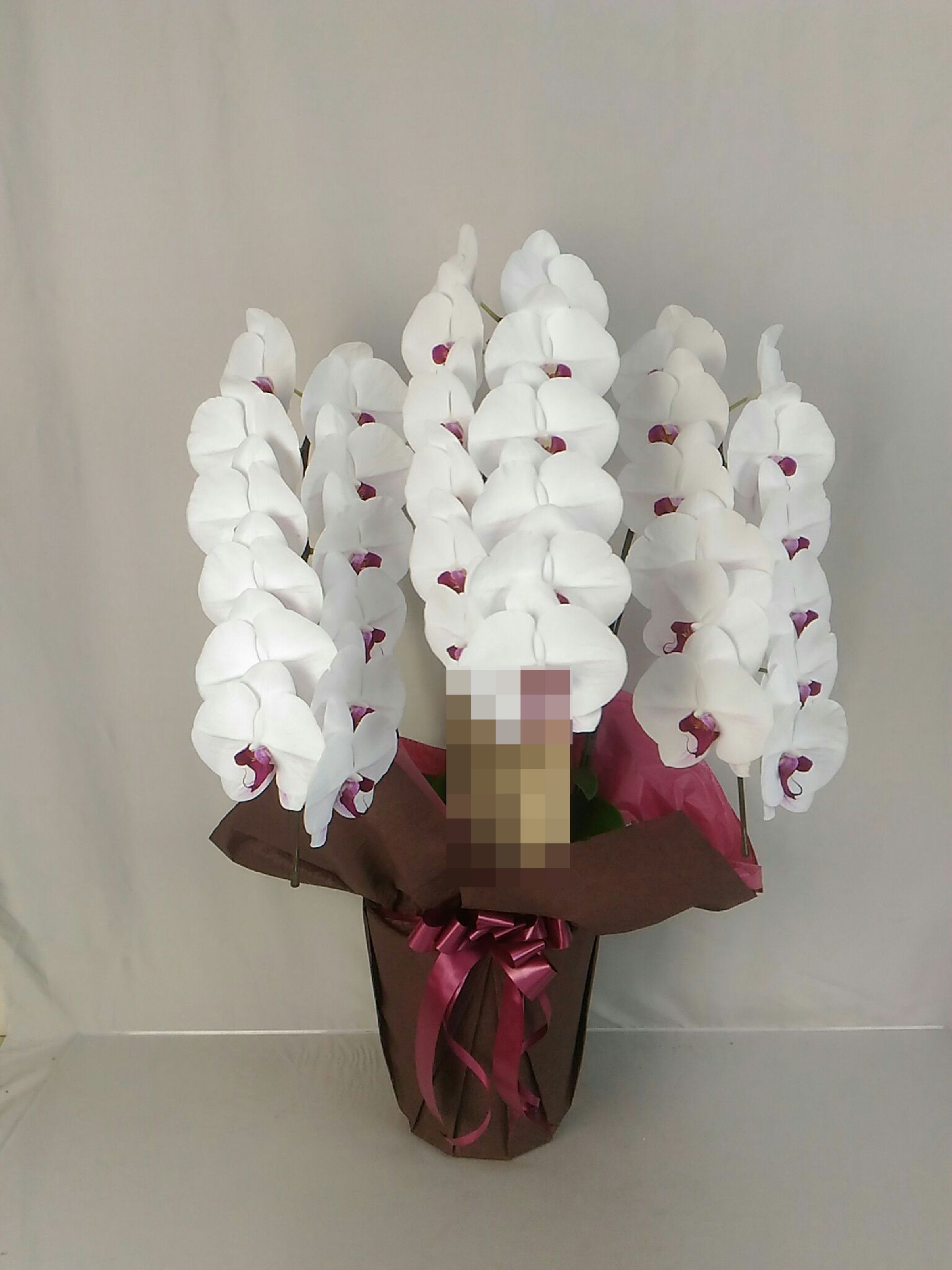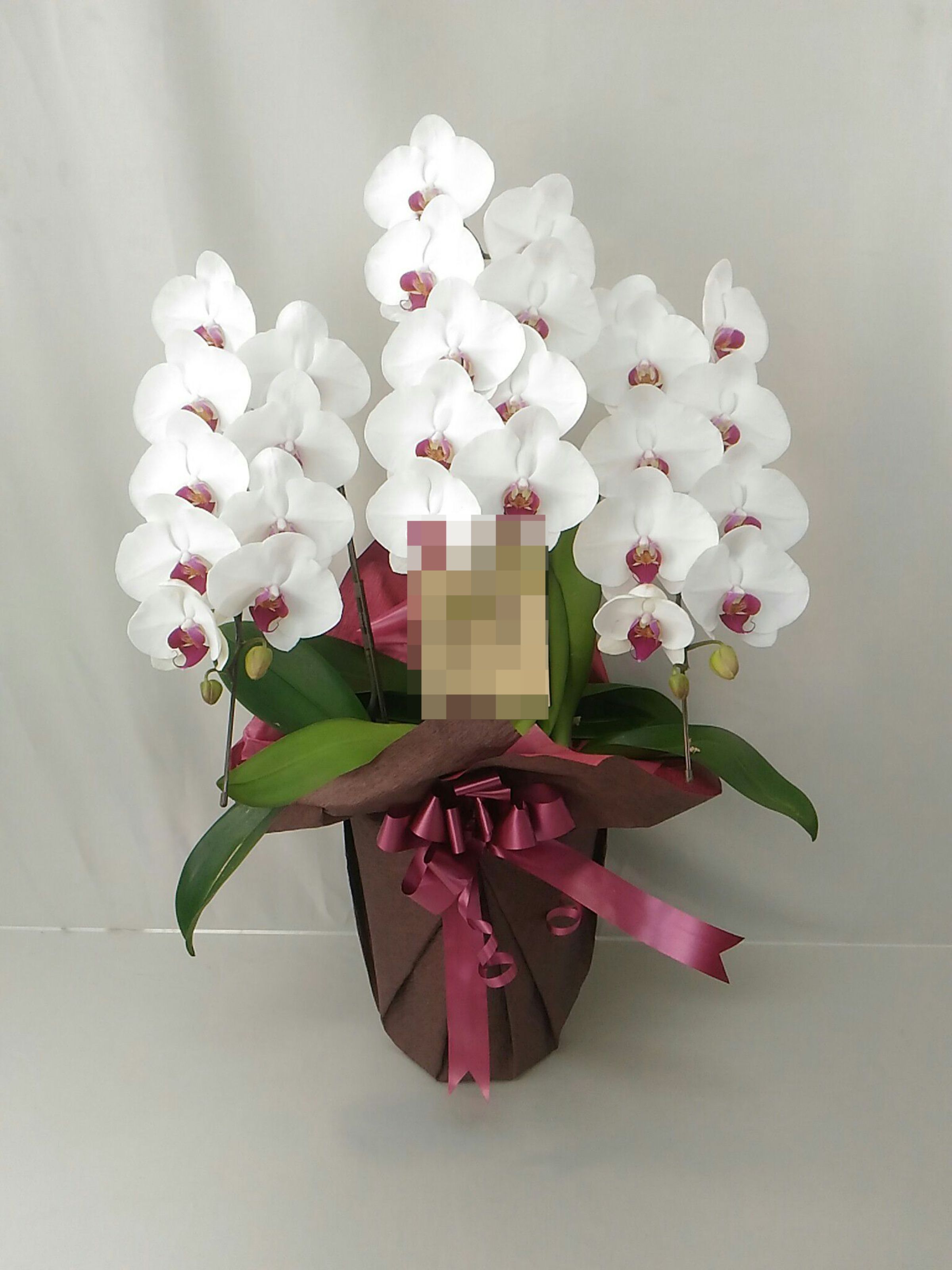 胡蝶蘭の実際にお届けした写真です。花秘書では発送前に写真をメールで送信致しますので安心して大切な顧客や取引様へのギフトにご利用頂けます。
