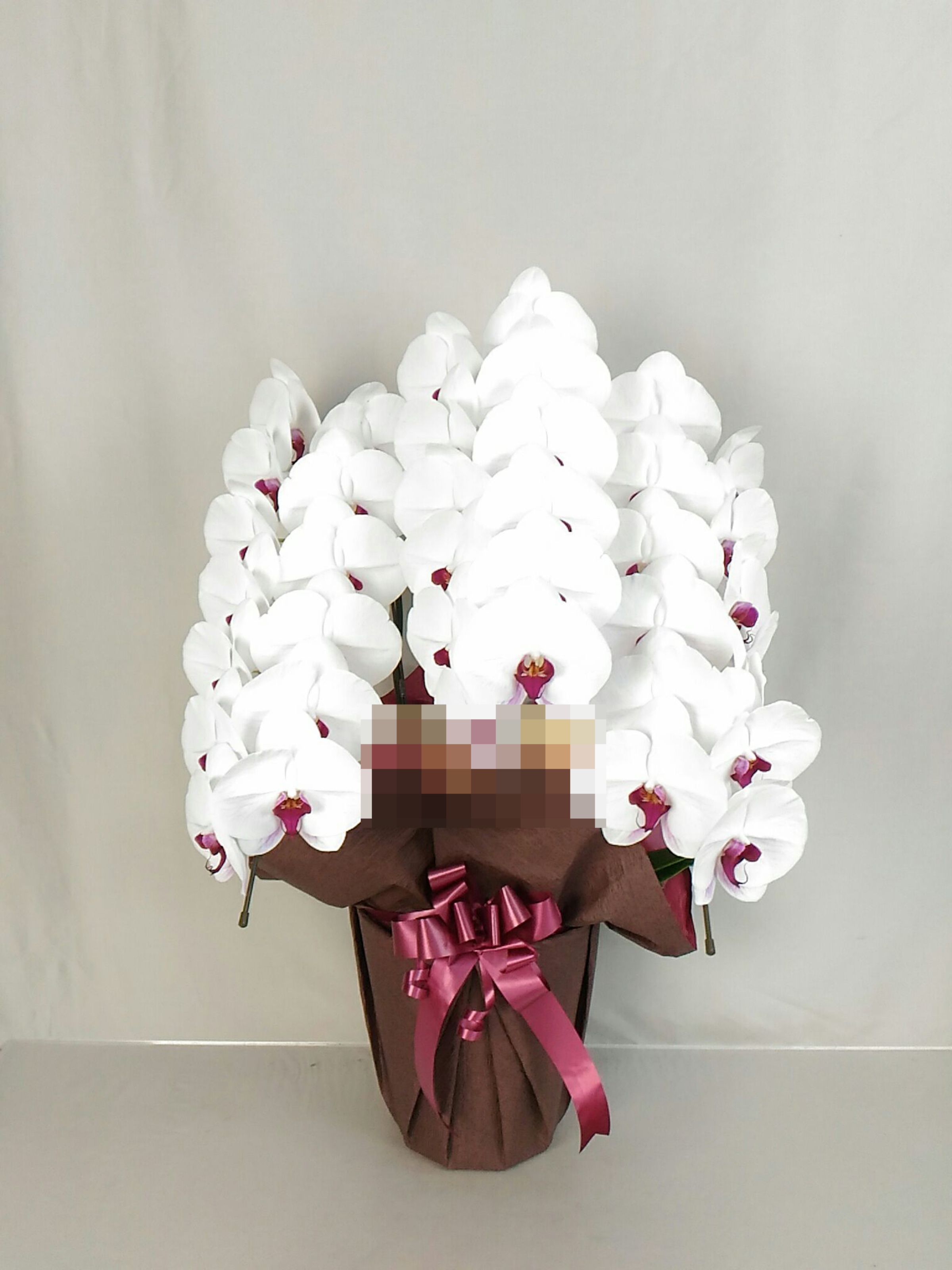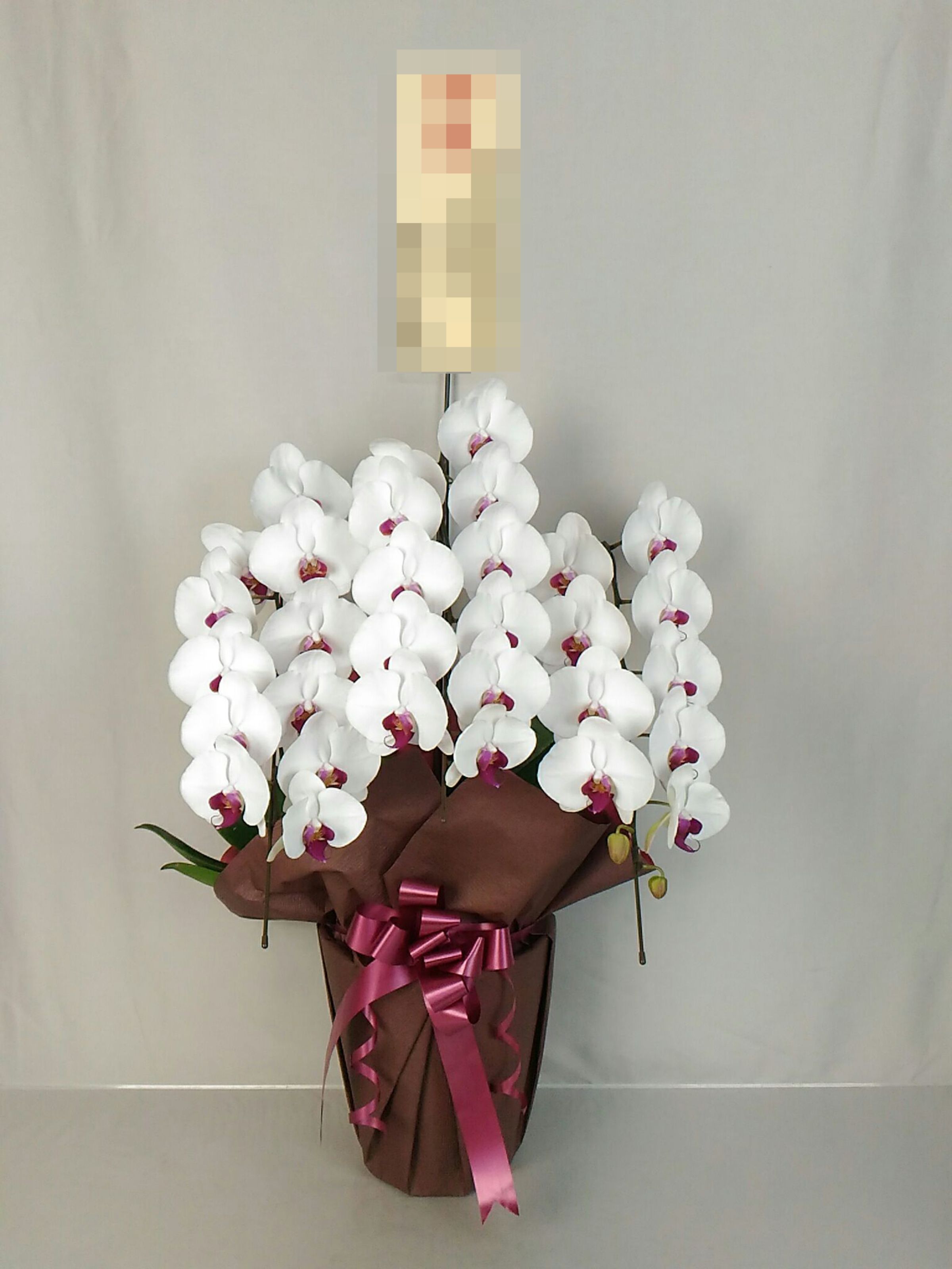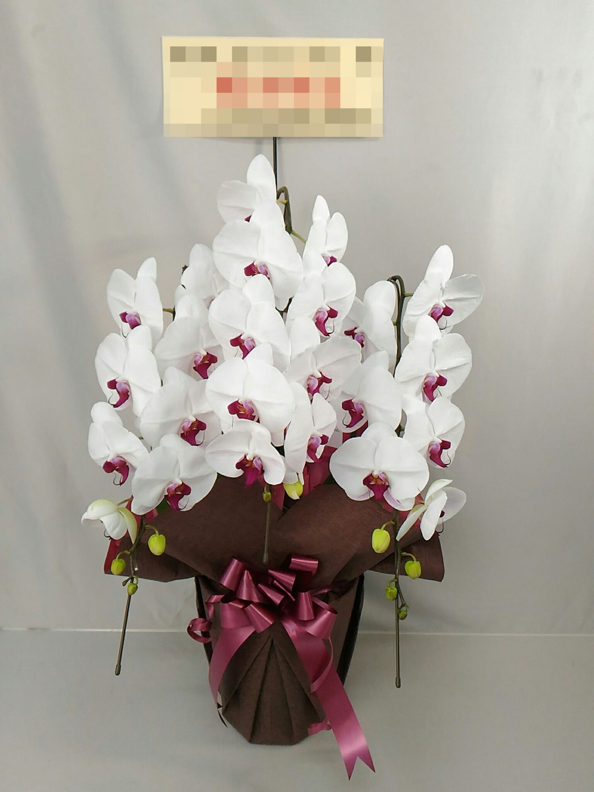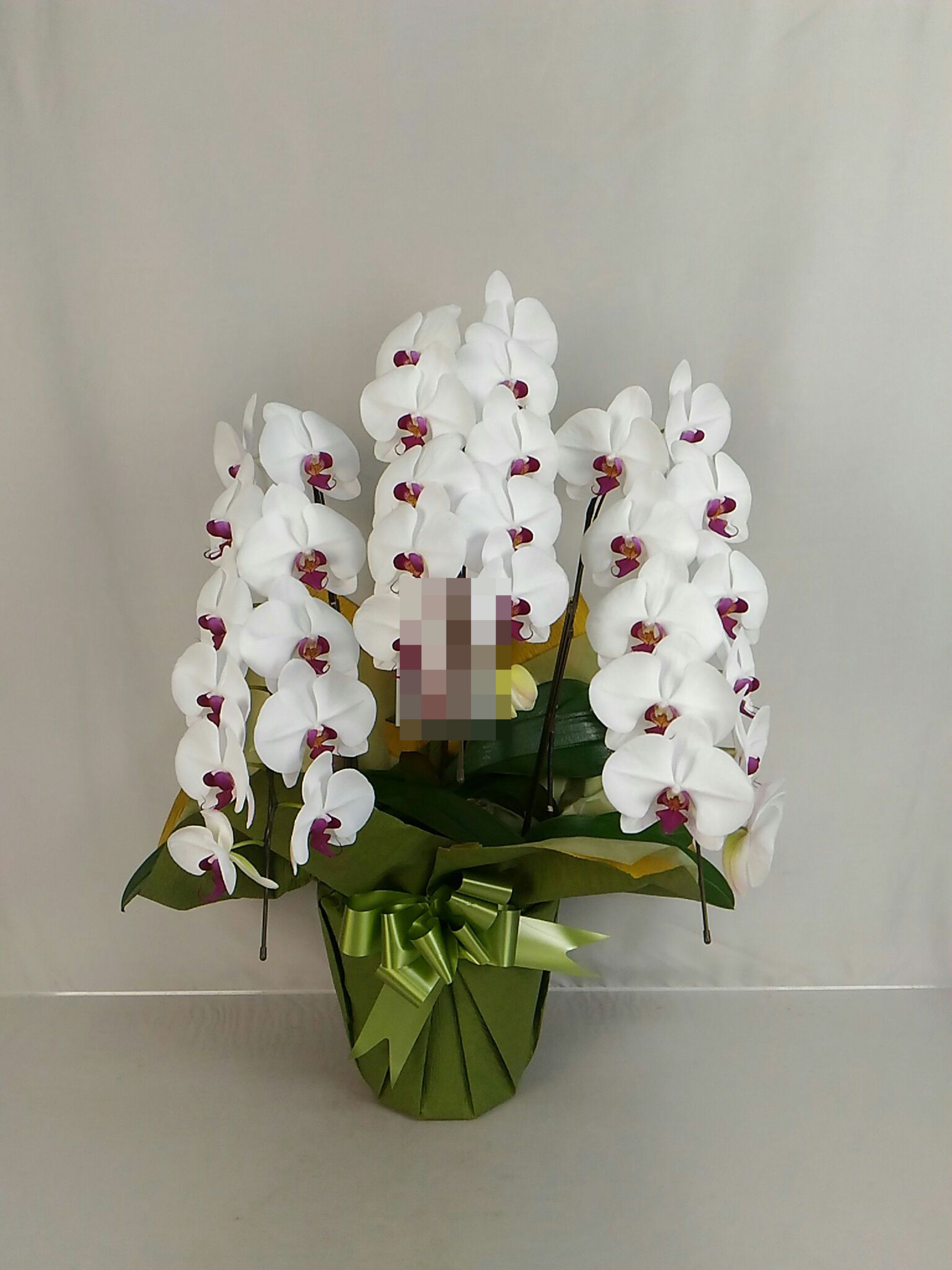 胡蝶蘭の実際にお届けした写真です。花秘書では発送前に写真をメールで送信致しますので安心して大切な顧客や取引様へのギフトにご利用頂けます。