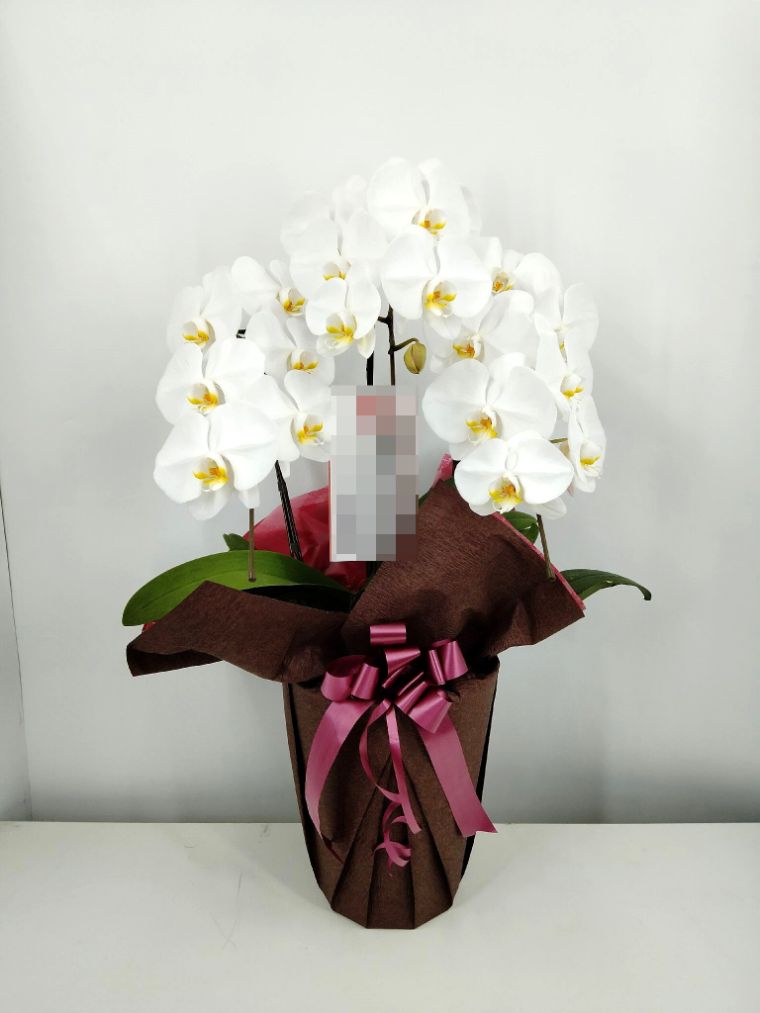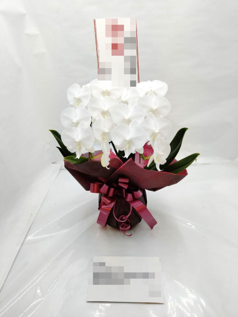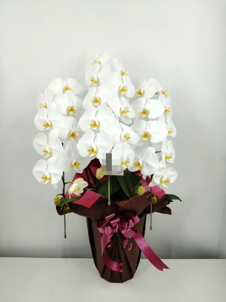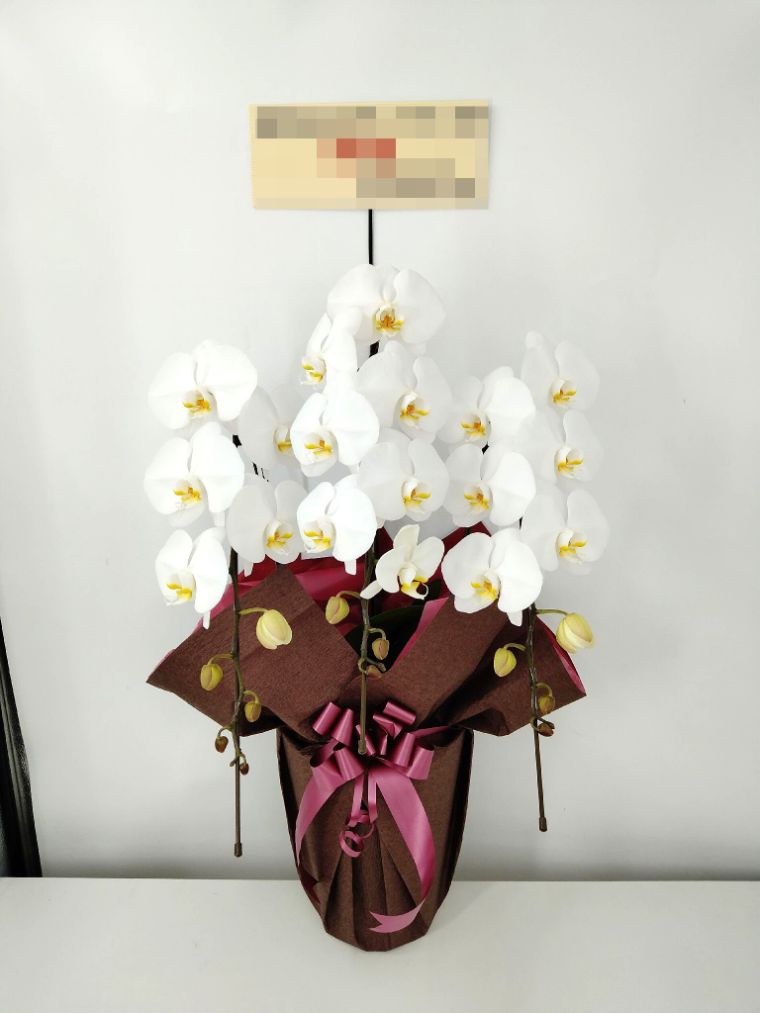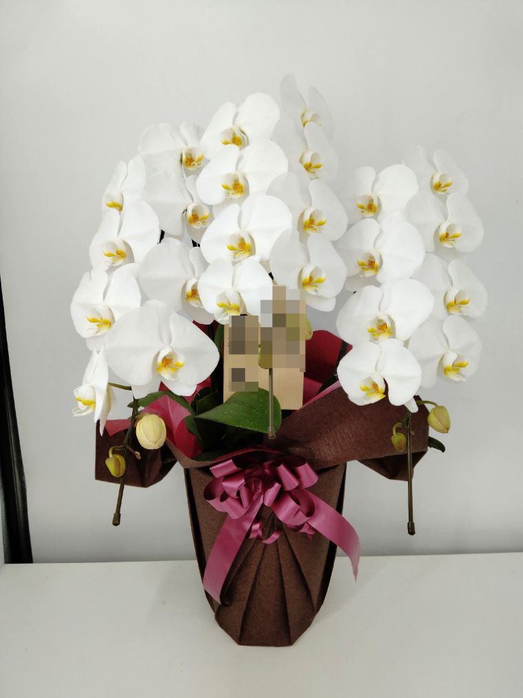 胡蝶蘭の実際にお届けした写真です。花秘書では発送前に写真をメールで送信致しますので安心して大切な顧客や取引様へのギフトにご利用頂けます。