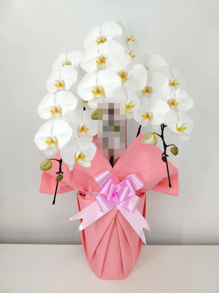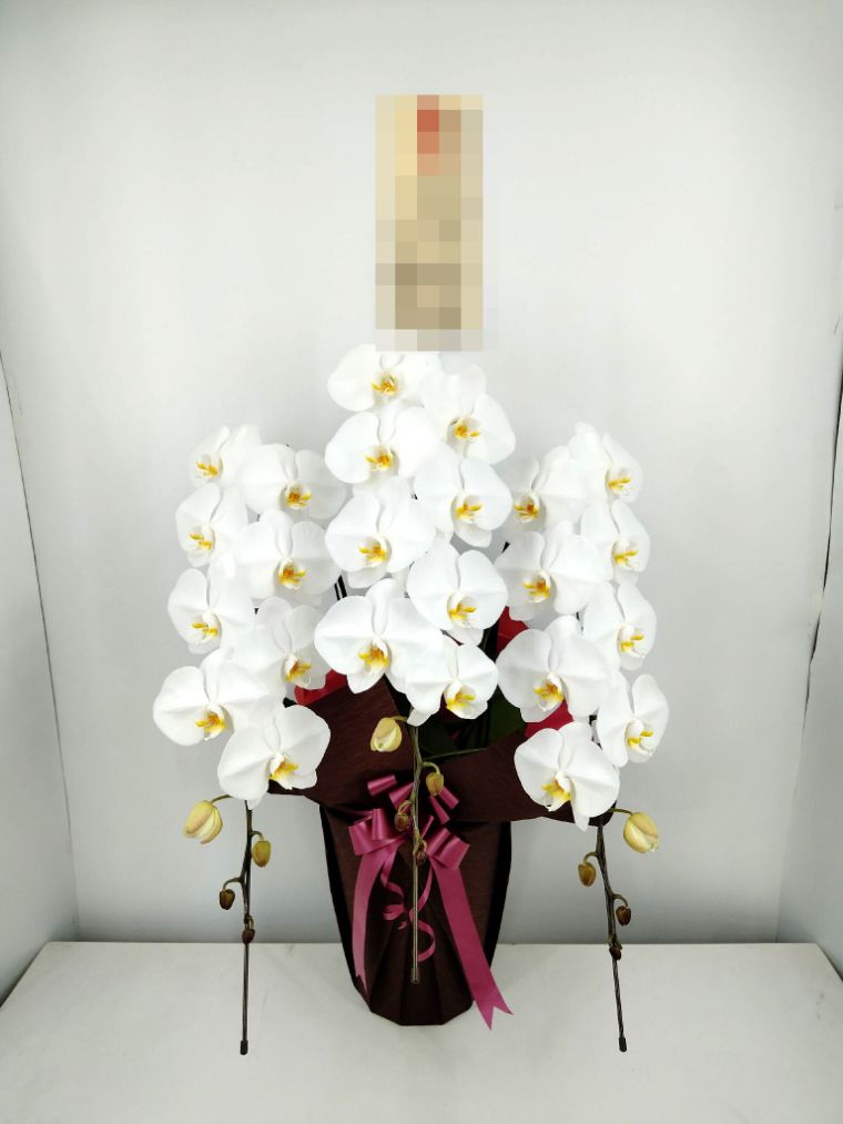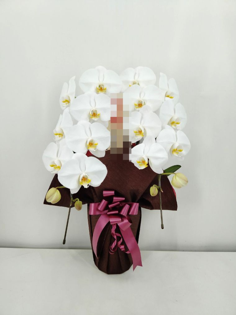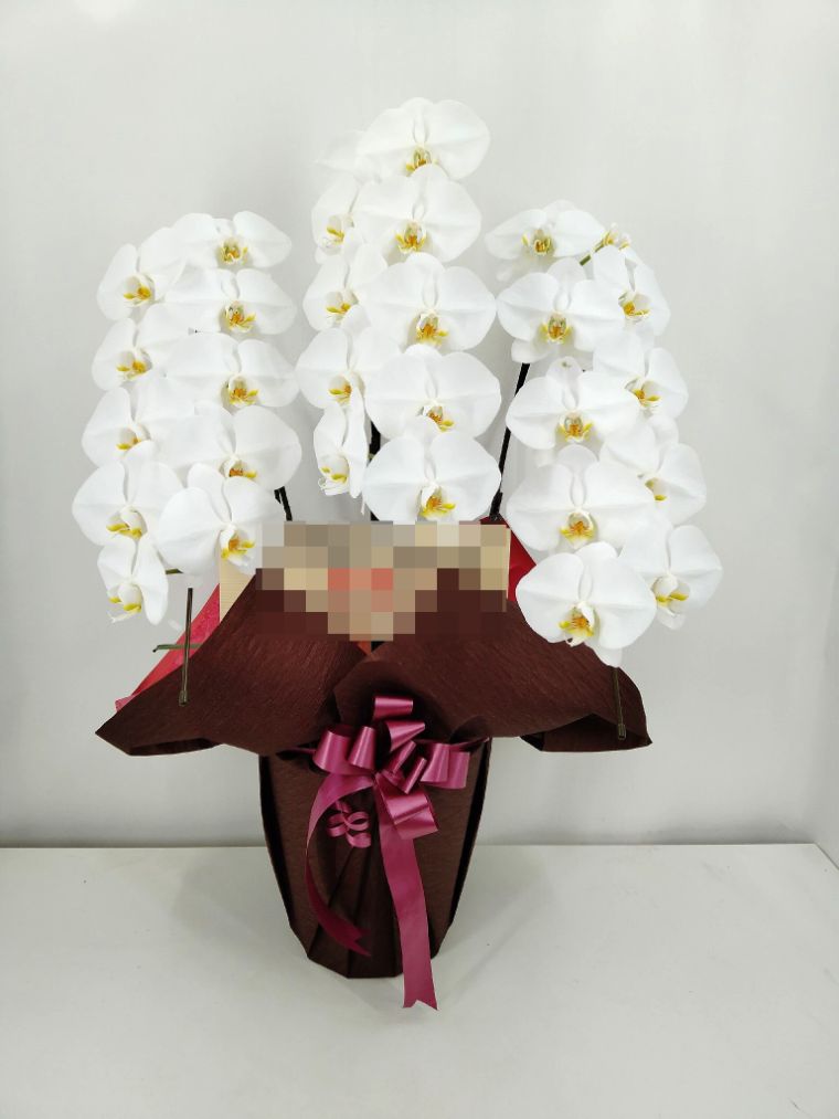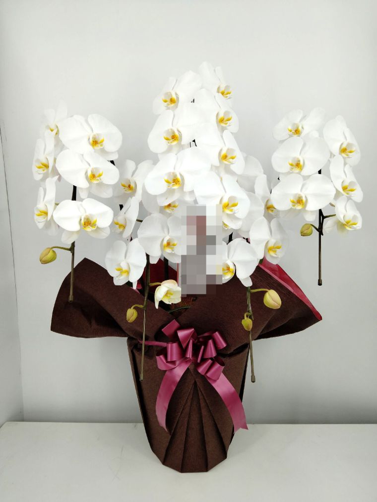 胡蝶蘭の実際にお届けした写真です。花秘書では発送前に写真をメールで送信致しますので安心して大切な顧客や取引様へのギフトにご利用頂けます。