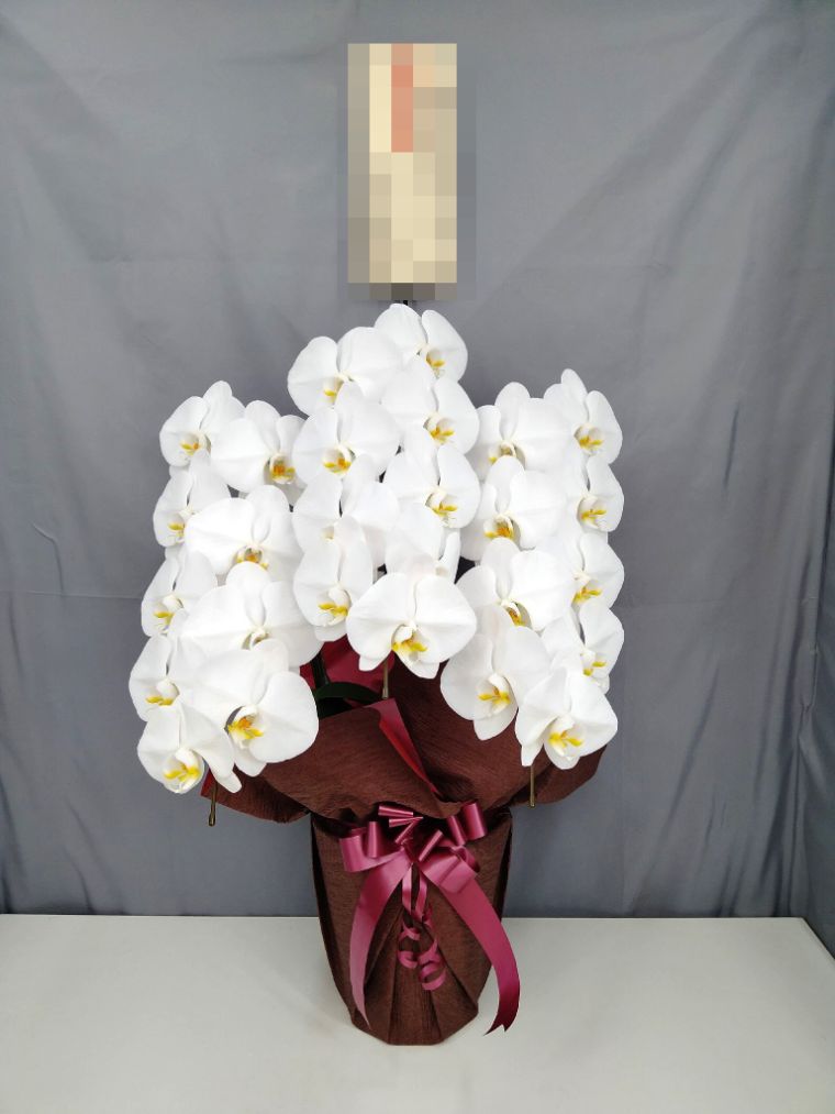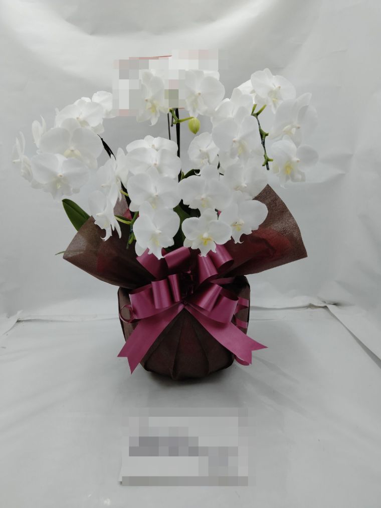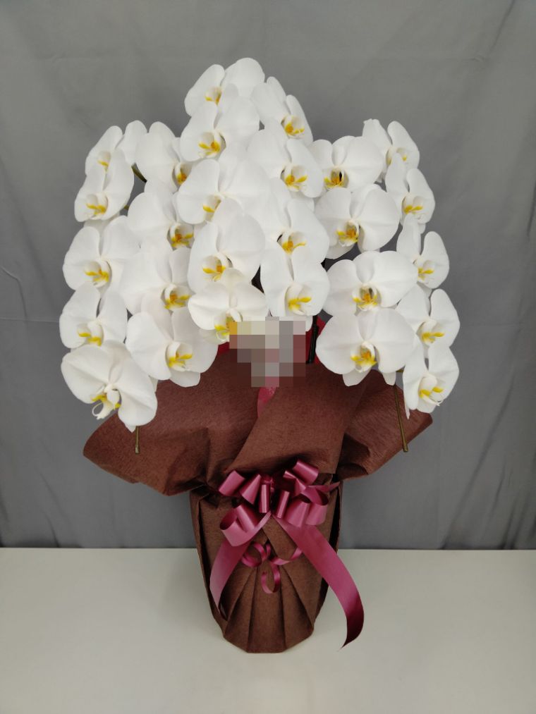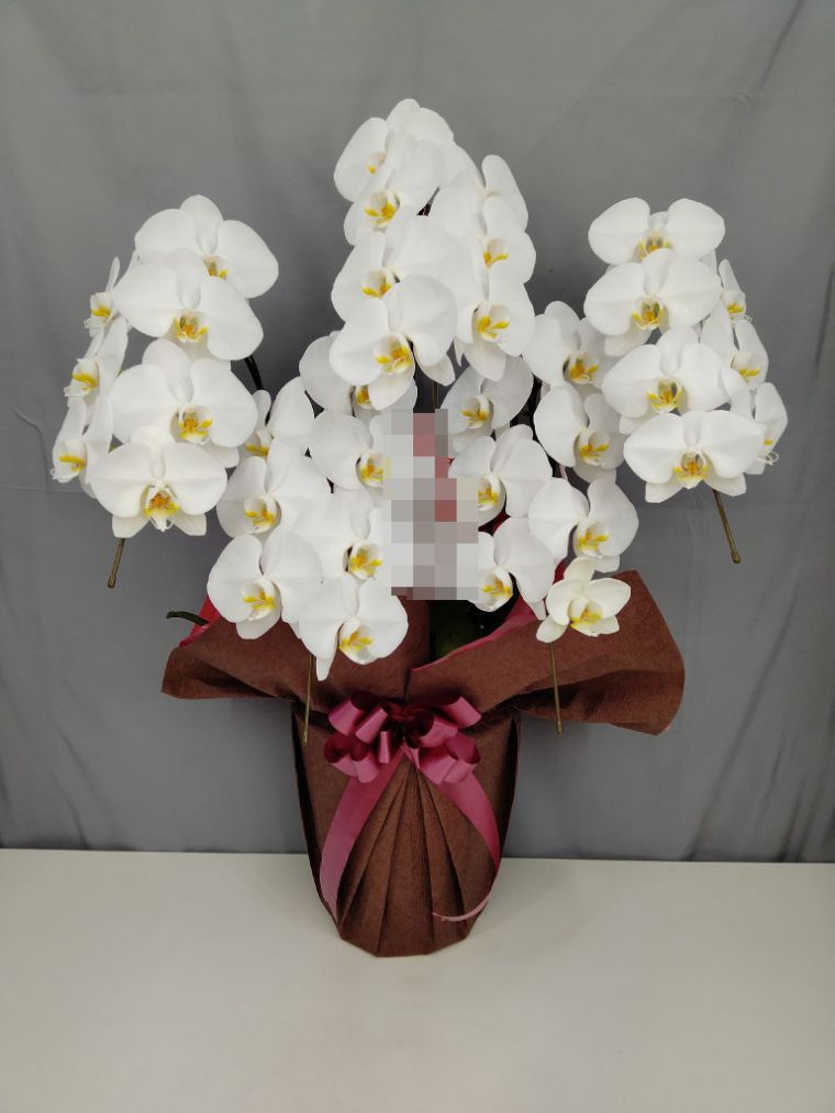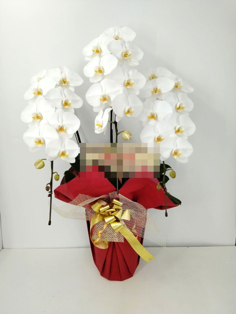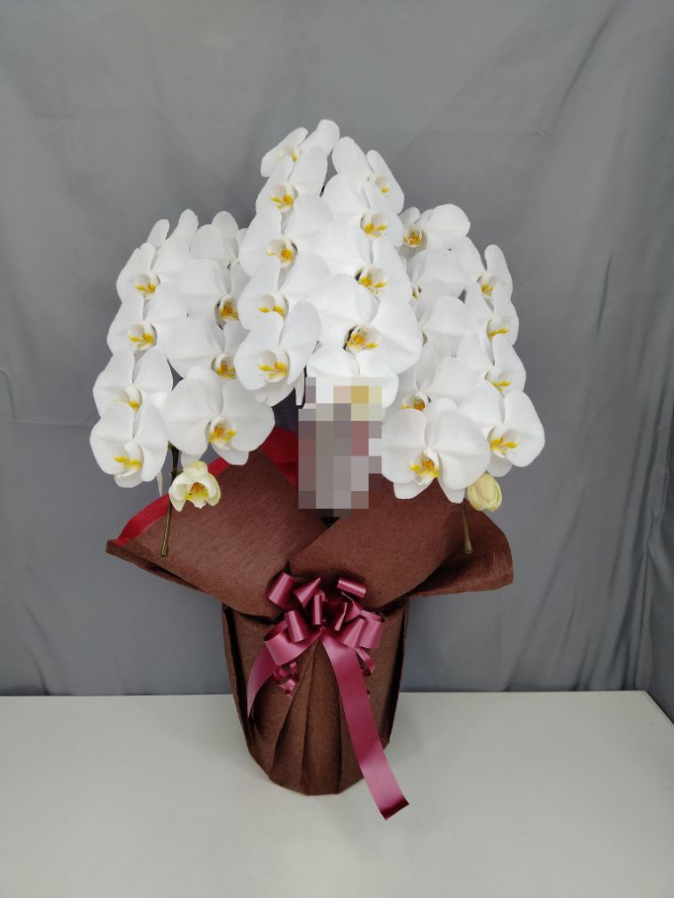 胡蝶蘭の実際にお届けした写真です。花秘書では発送前に写真をメールで送信致しますので安心して大切な顧客や取引様へのギフトにご利用頂けます。