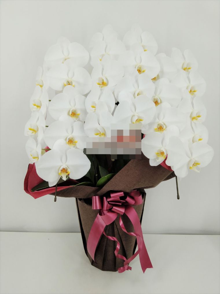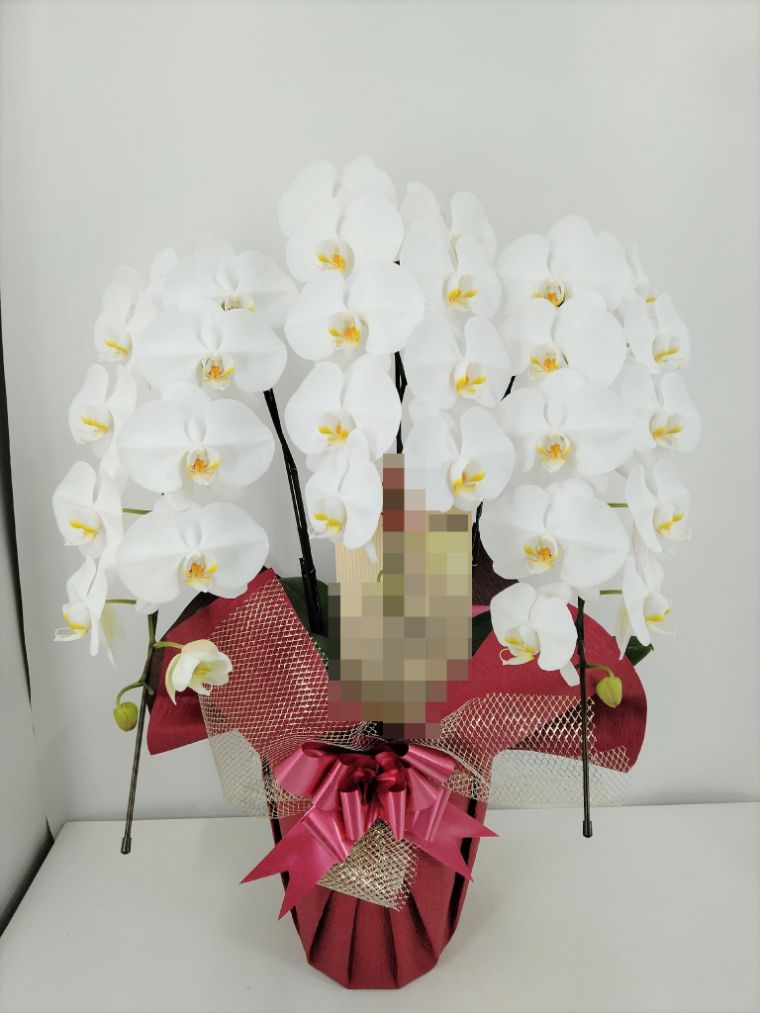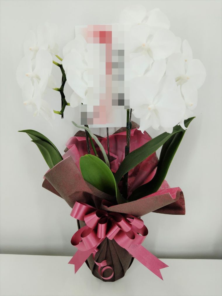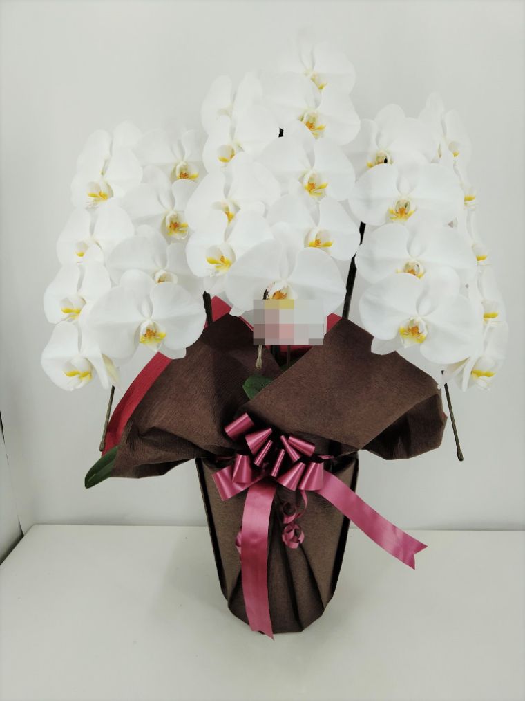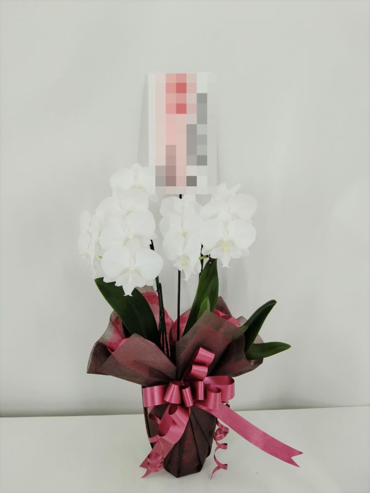 胡蝶蘭の実際にお届けした写真です。花秘書では発送前に写真をメールで送信致しますので安心して大切な顧客や取引様へのギフトにご利用頂けます。