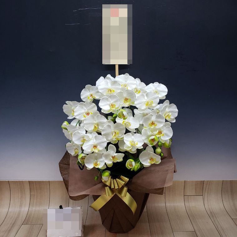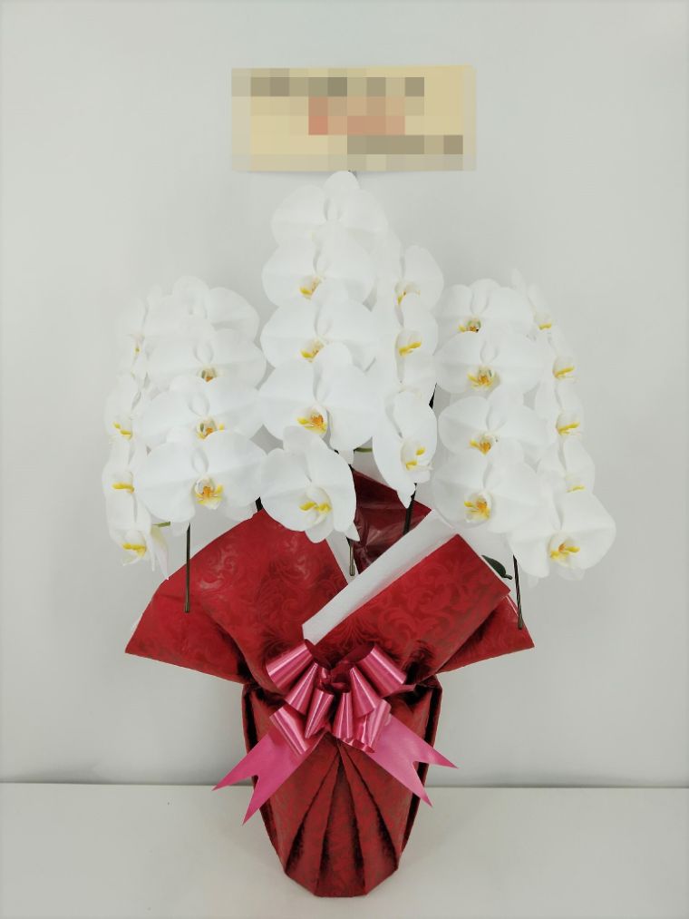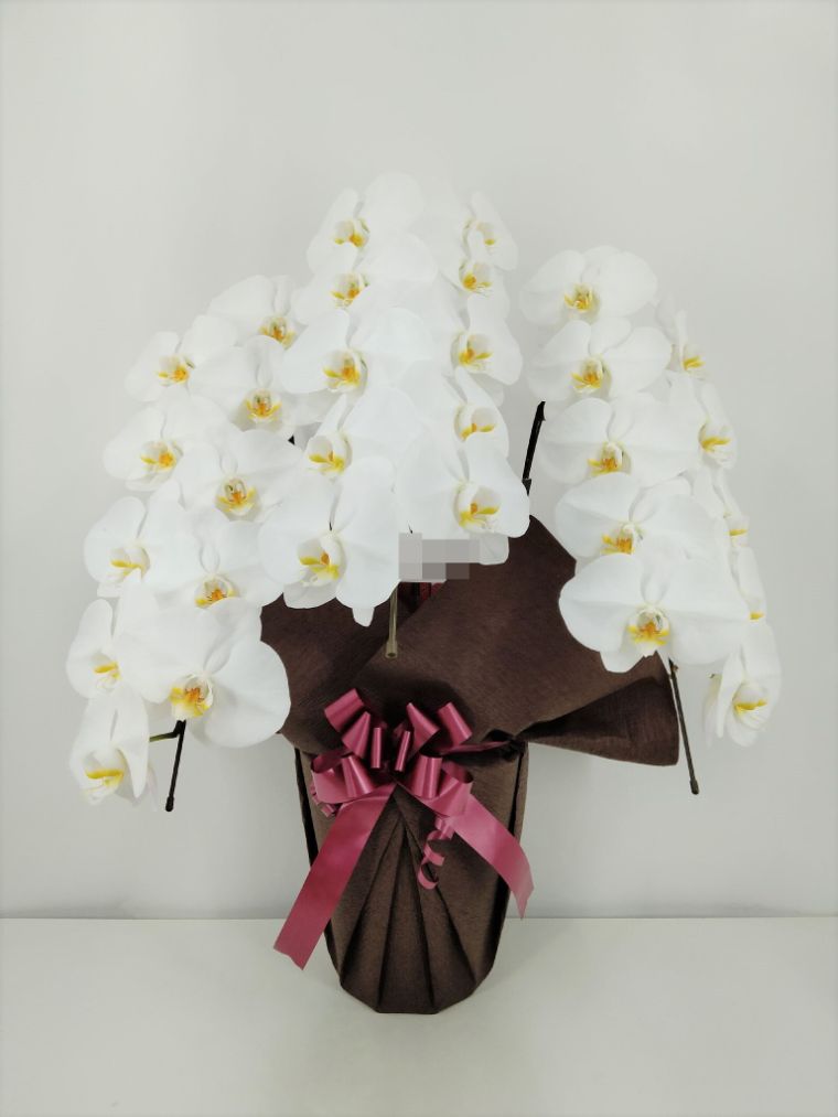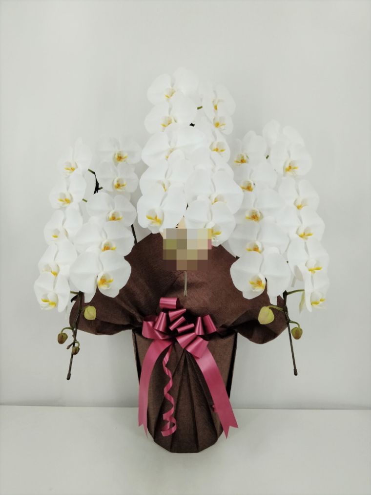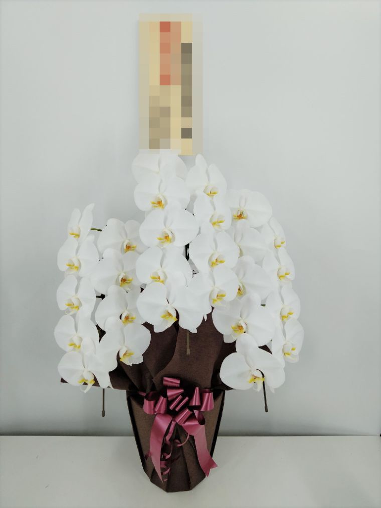 胡蝶蘭の実際にお届けした写真です。花秘書では発送前に写真をメールで送信致しますので安心して大切な顧客や取引様へのギフトにご利用頂けます。