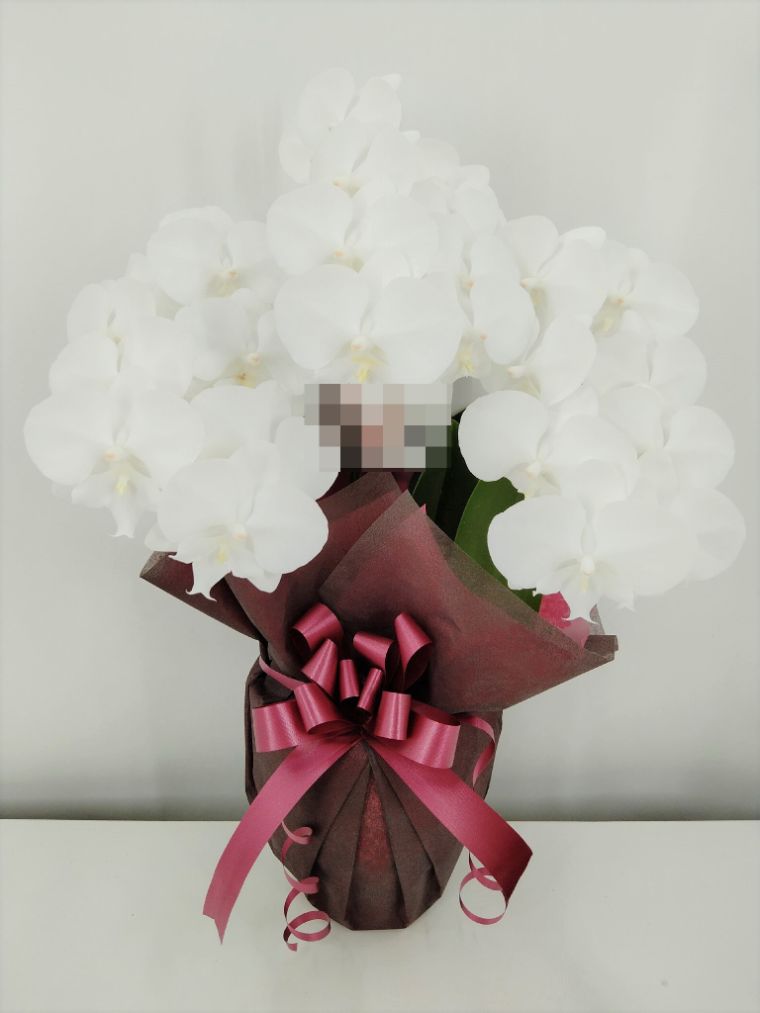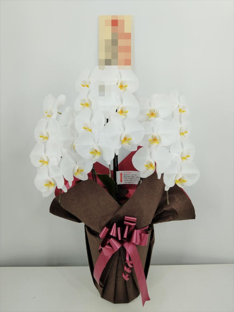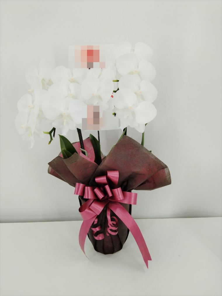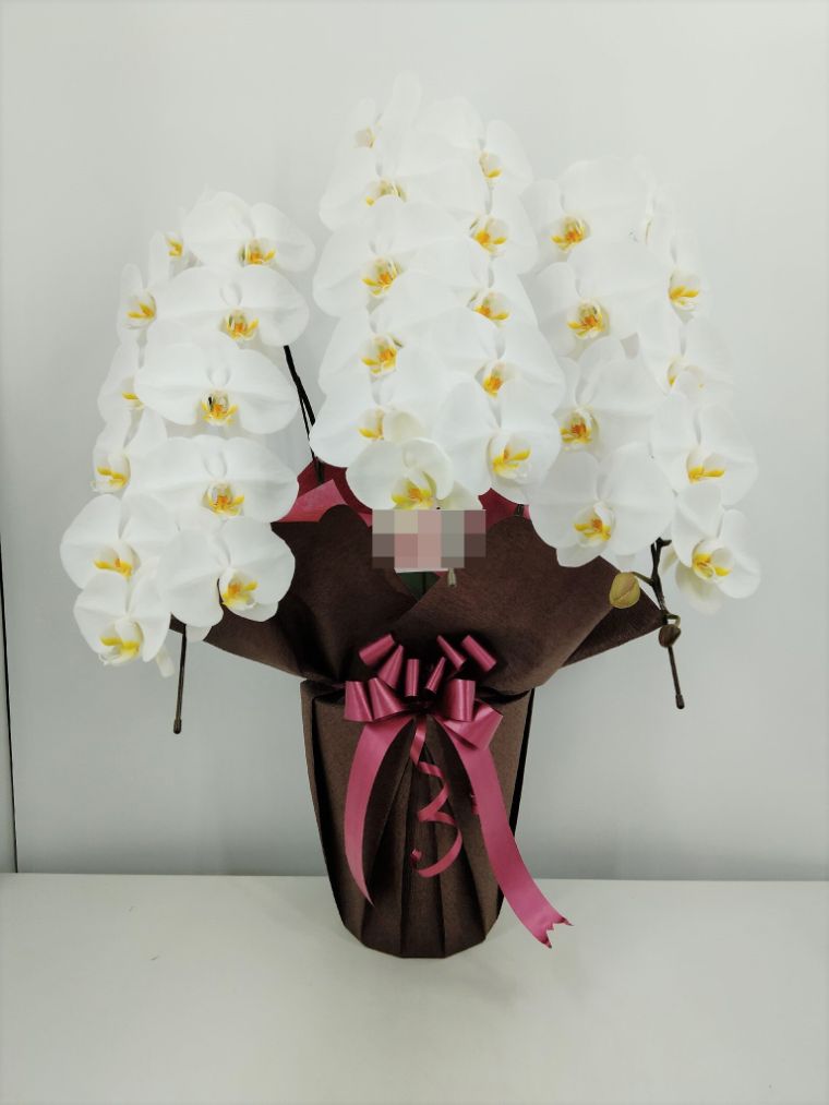 胡蝶蘭の実際にお届けした写真です。花秘書では発送前に写真をメールで送信致しますので安心して大切な顧客や取引様へのギフトにご利用頂けます。