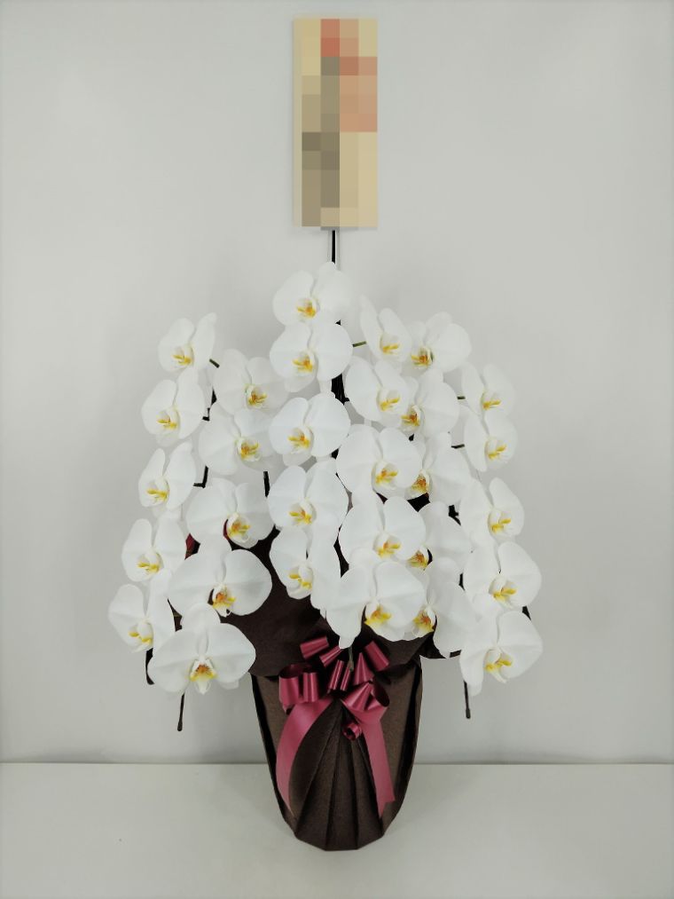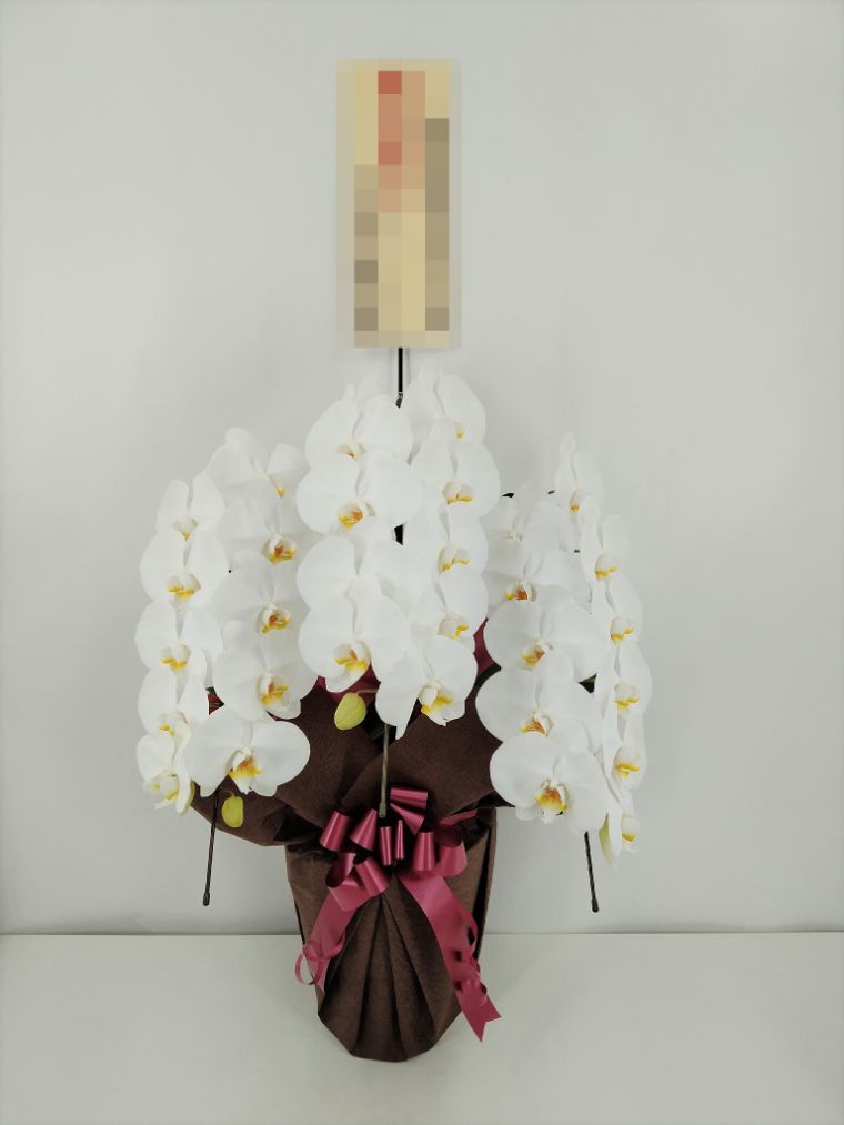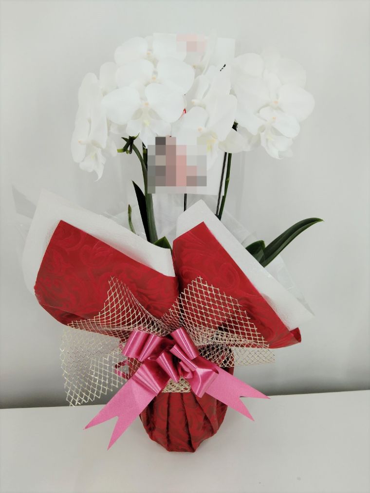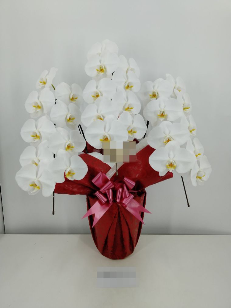胡蝶蘭の実際にお届けした写真です。花秘書では発送前に写真をメールで送信致しますので安心して大切な顧客や取引様へのギフトにご利用頂けます。