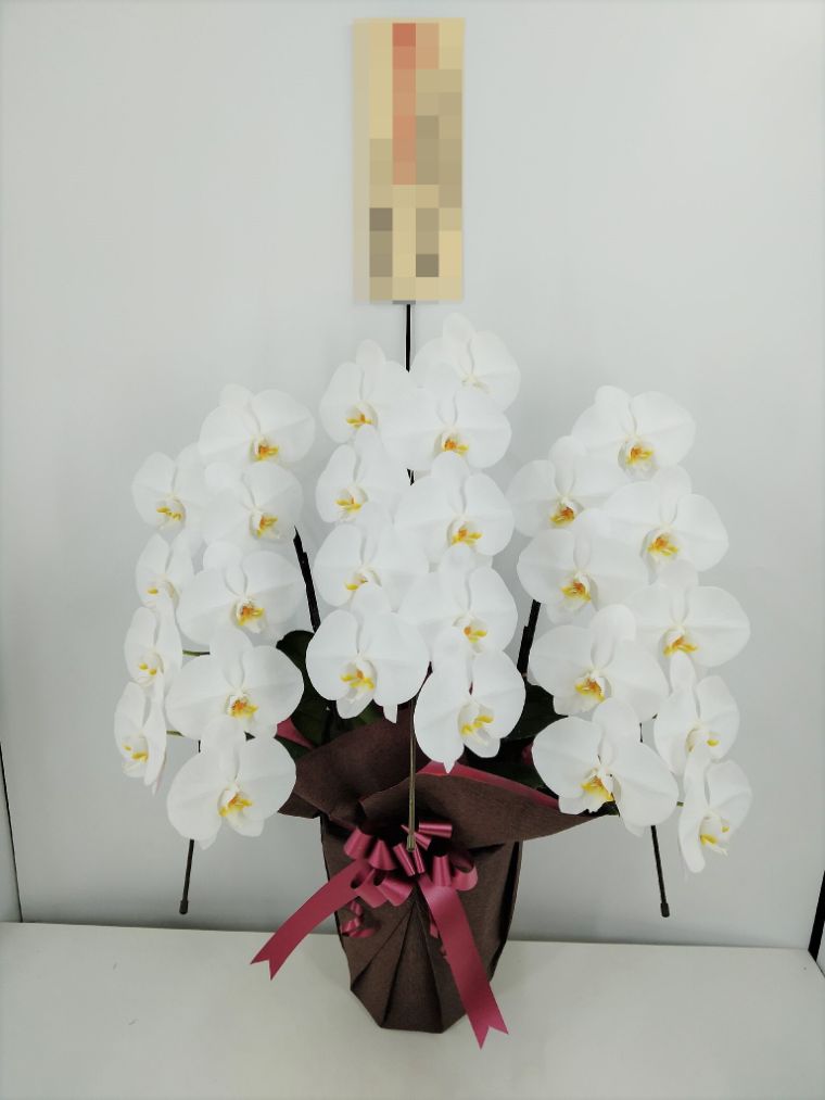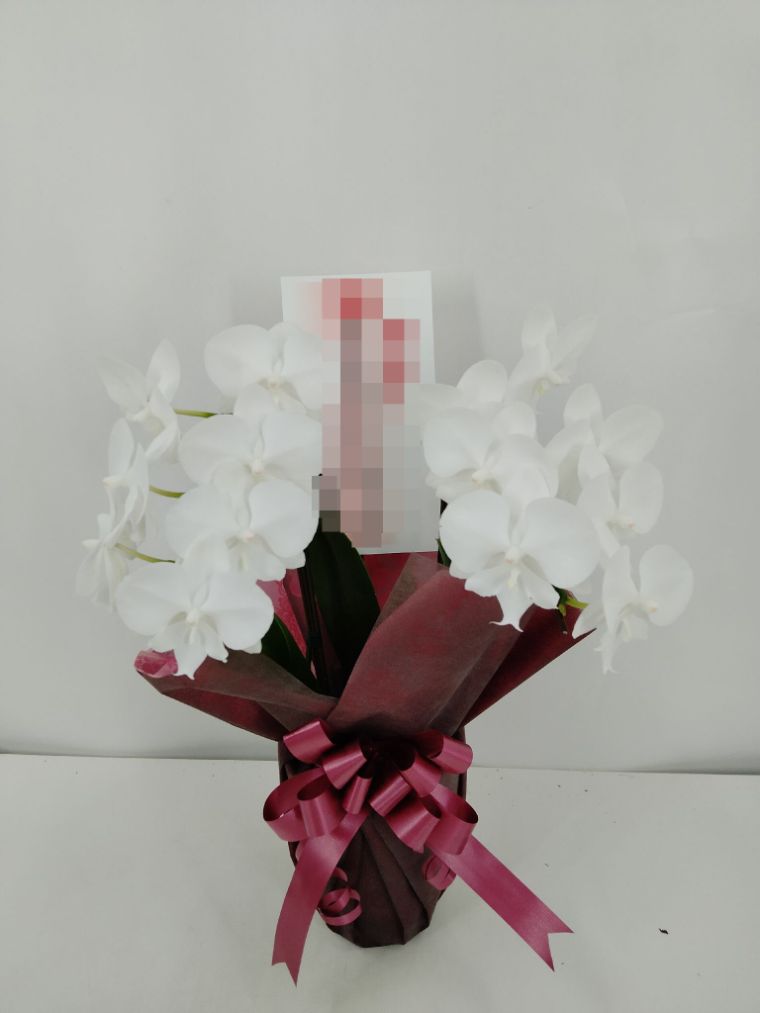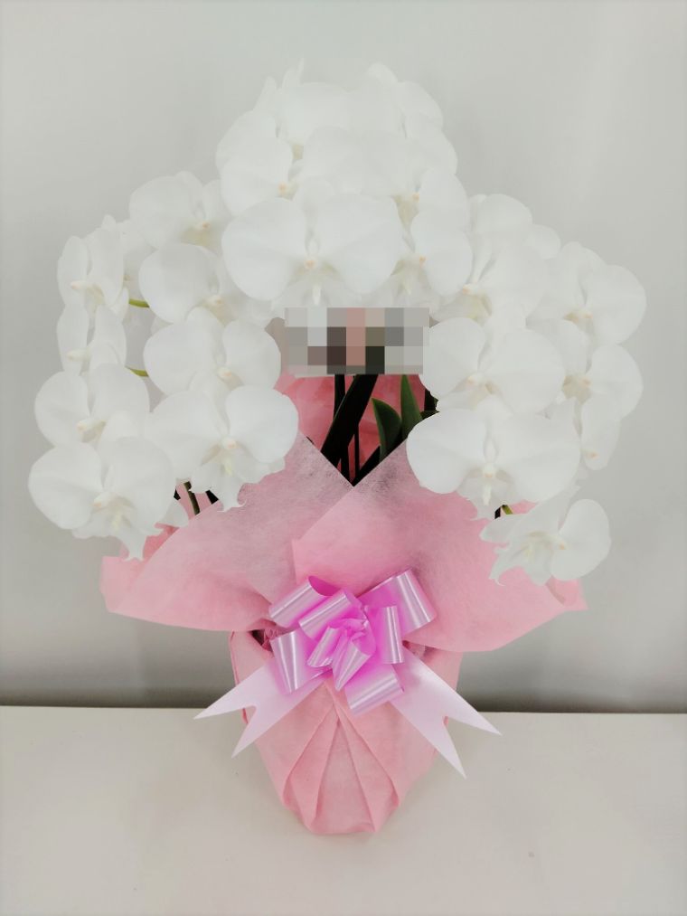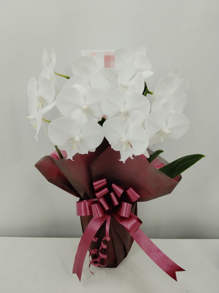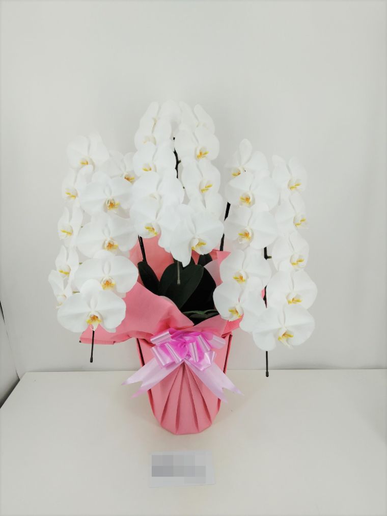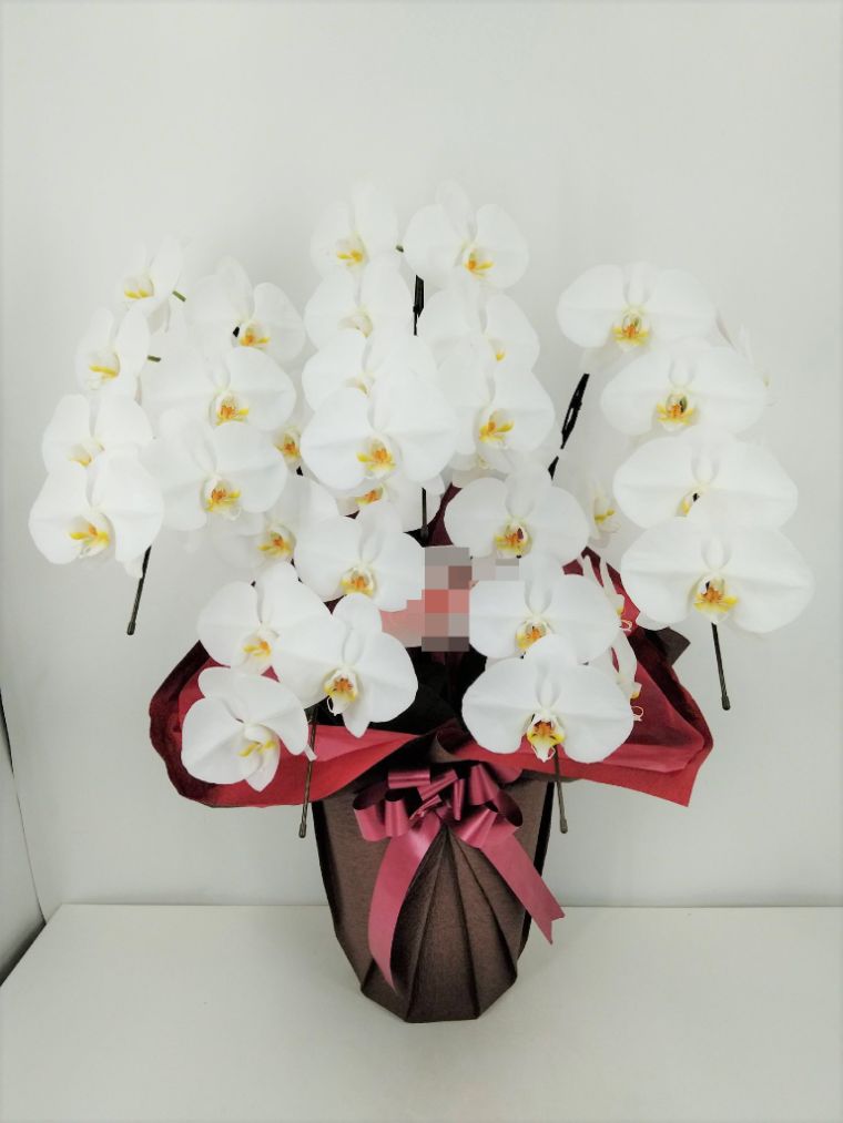 胡蝶蘭の実際にお届けした写真です。花秘書では発送前に写真をメールで送信致しますので安心して大切な顧客や取引様へのギフトにご利用頂けます。