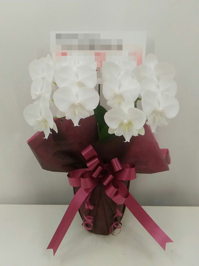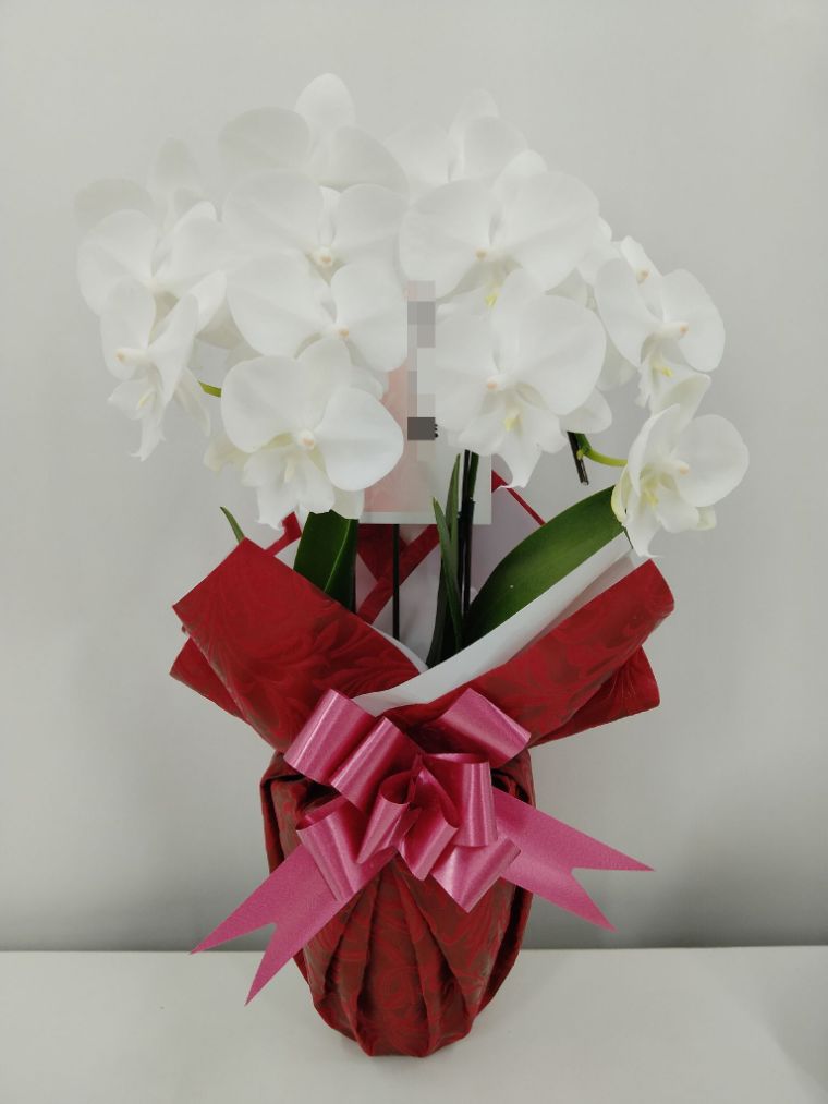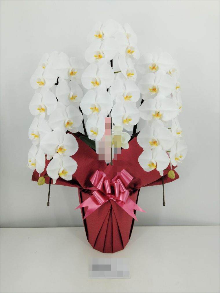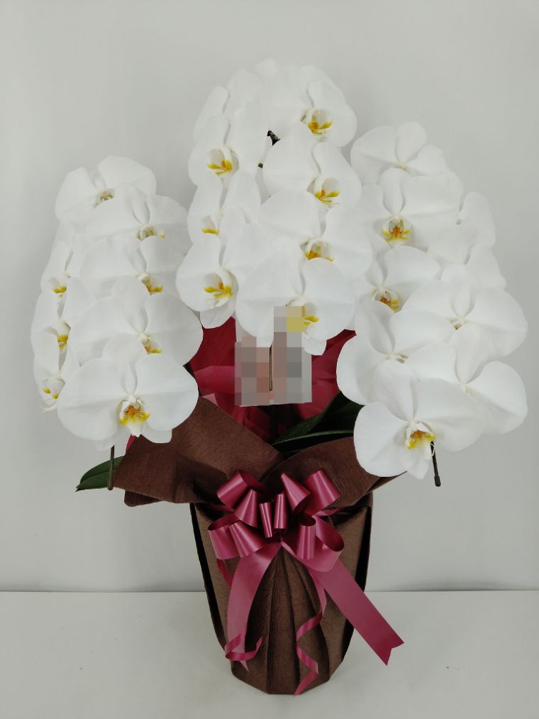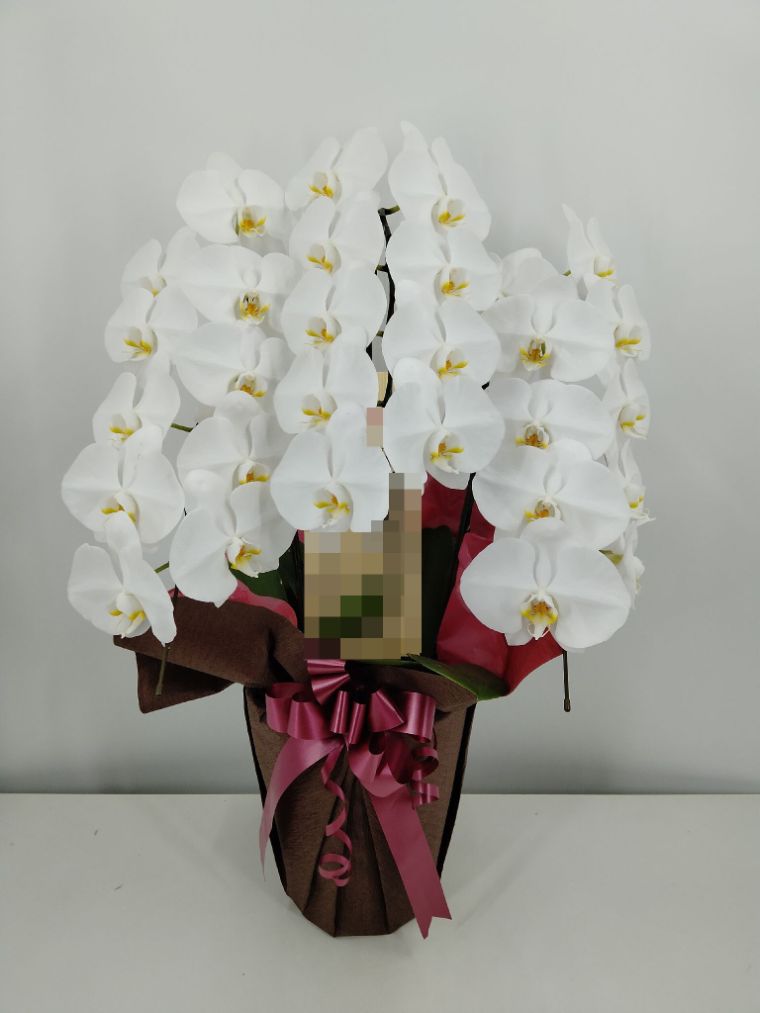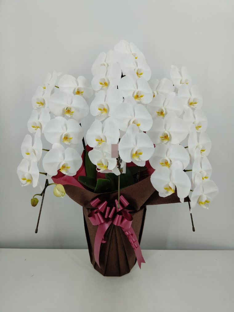 胡蝶蘭の実際にお届けした写真です。花秘書では発送前に写真をメールで送信致しますので安心して大切な顧客や取引様へのギフトにご利用頂けます。