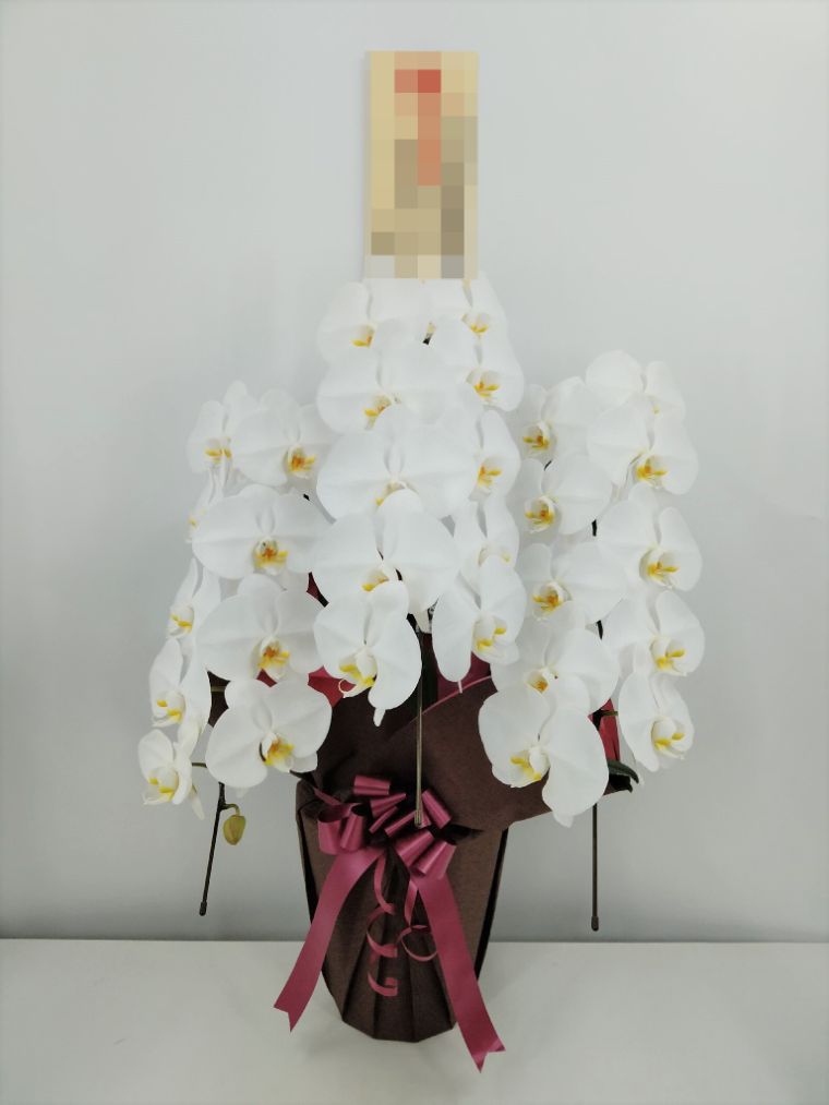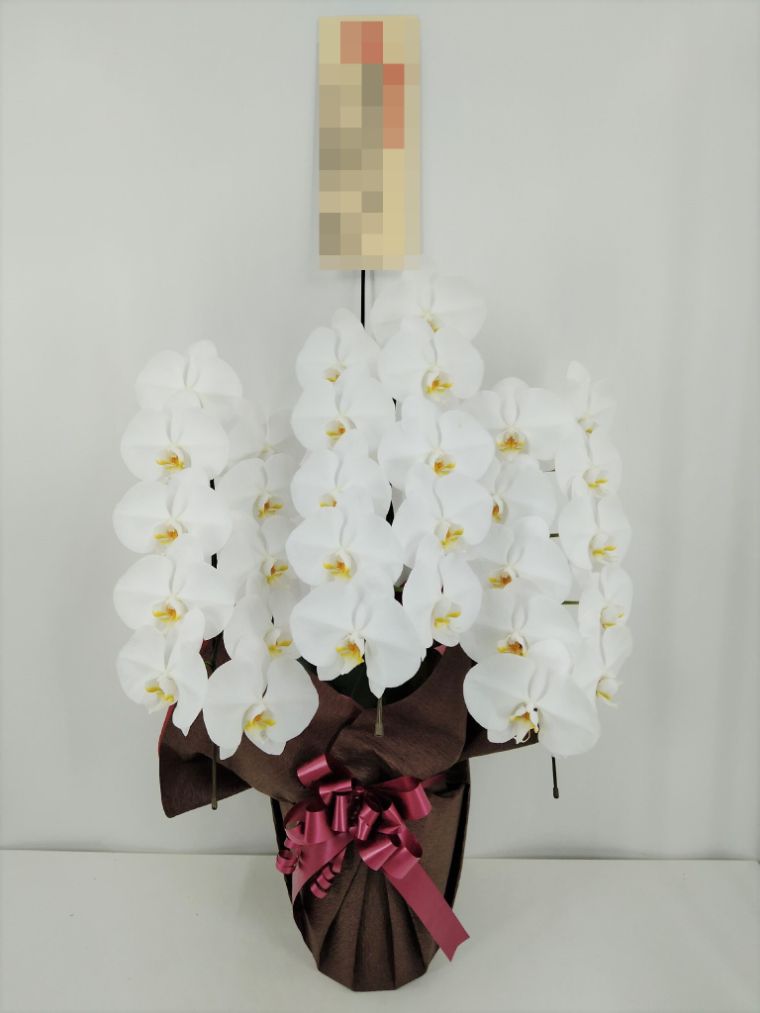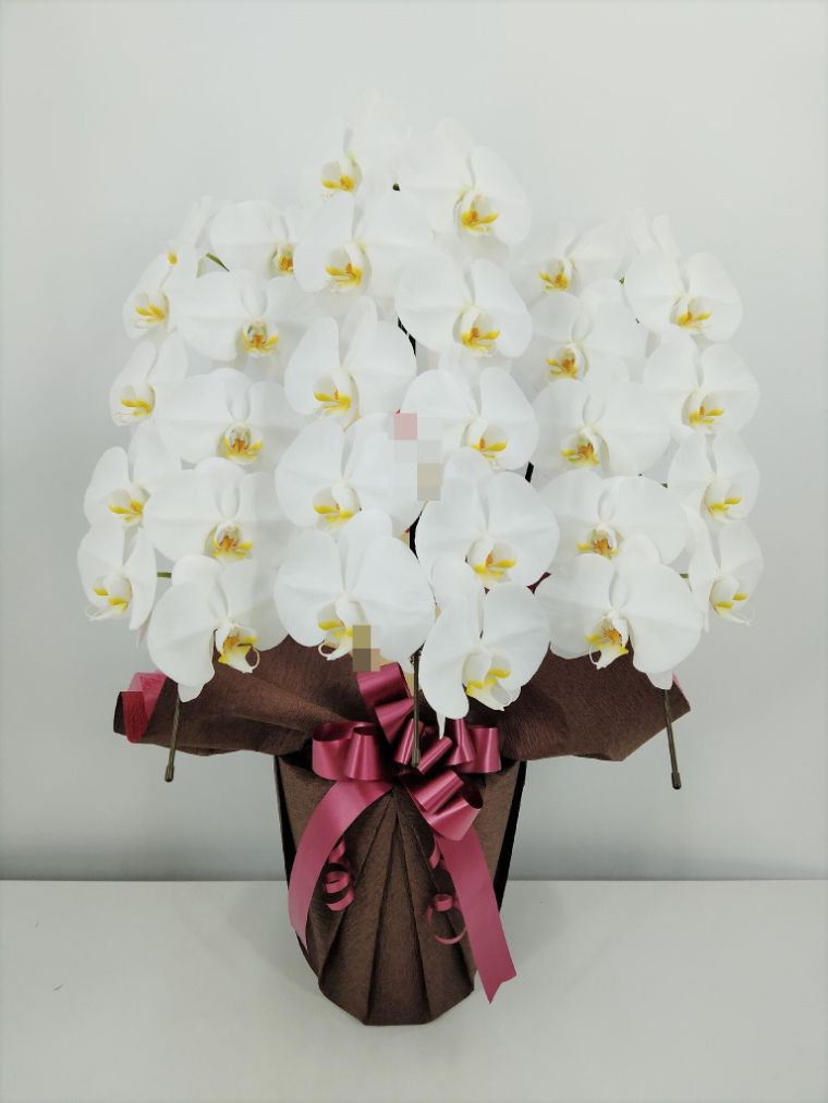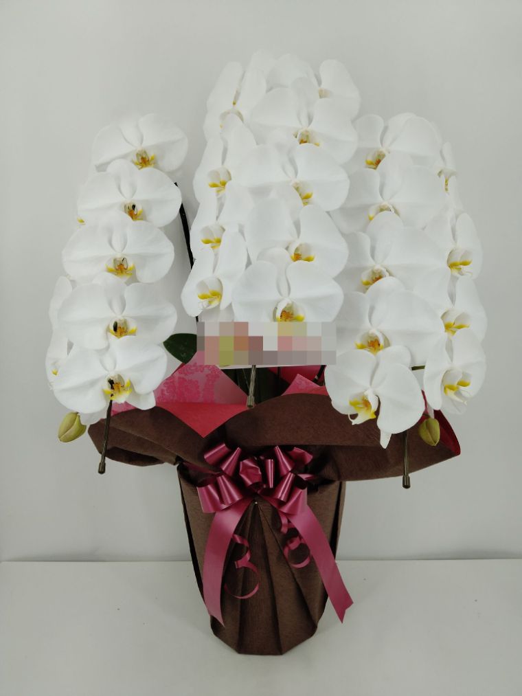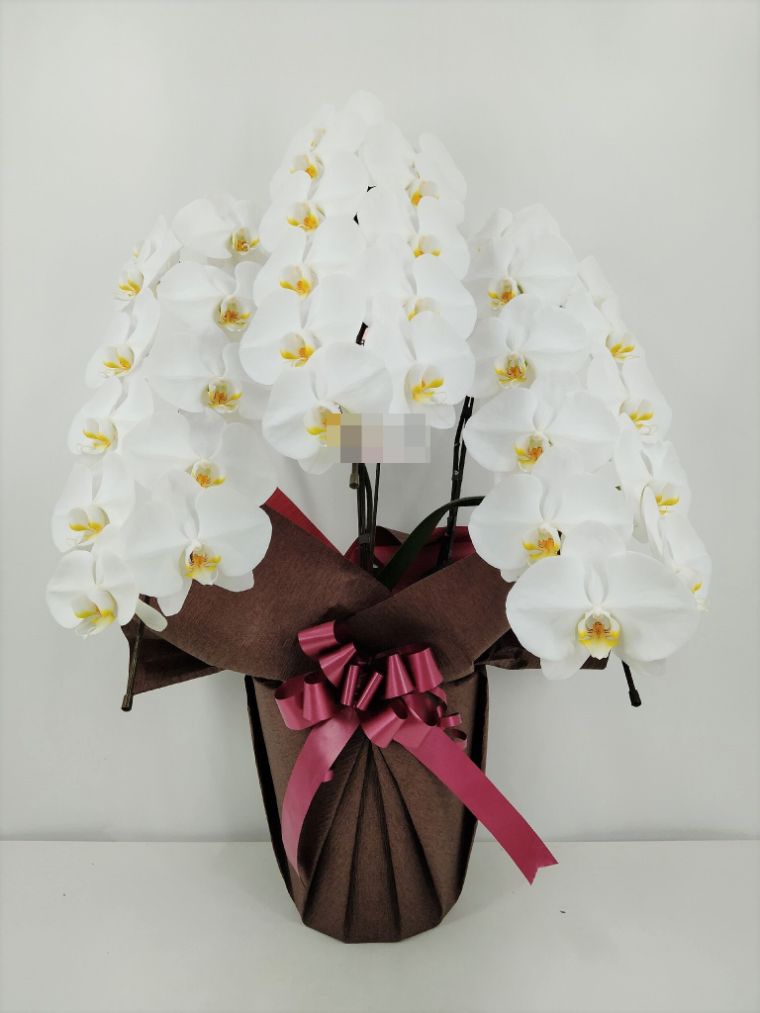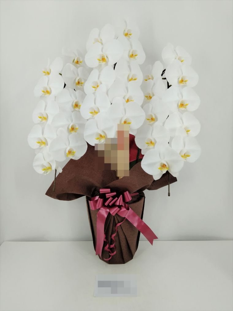 胡蝶蘭の実際にお届けした写真です。花秘書では発送前に写真をメールで送信致しますので安心して大切な顧客や取引様へのギフトにご利用頂けます。