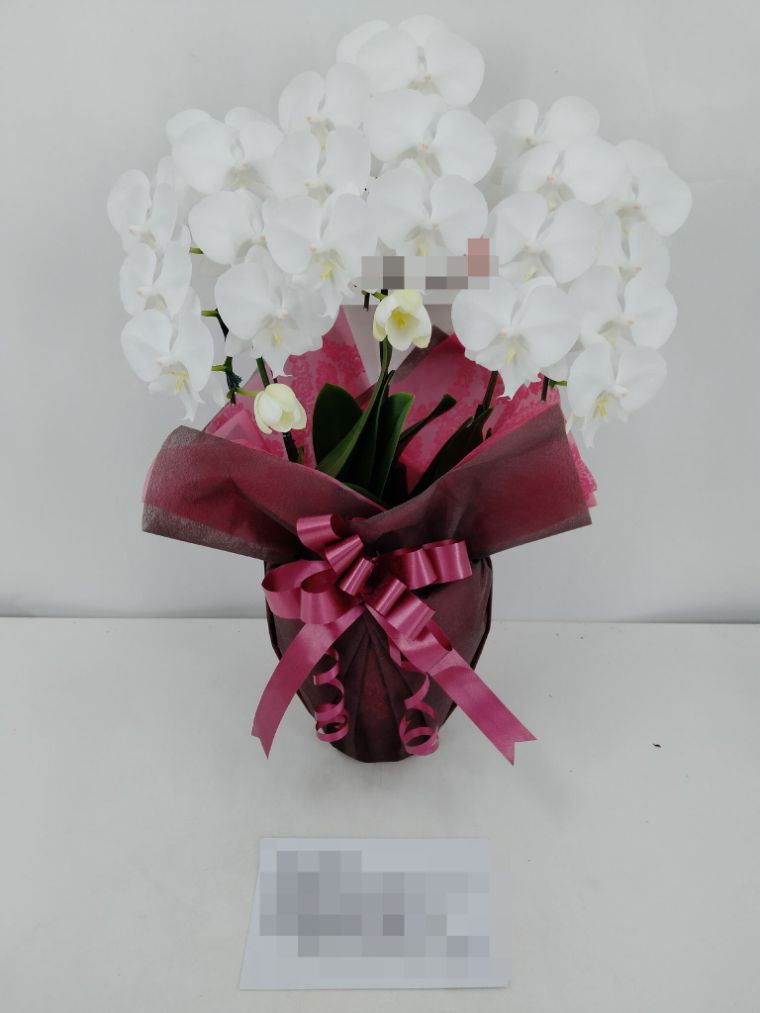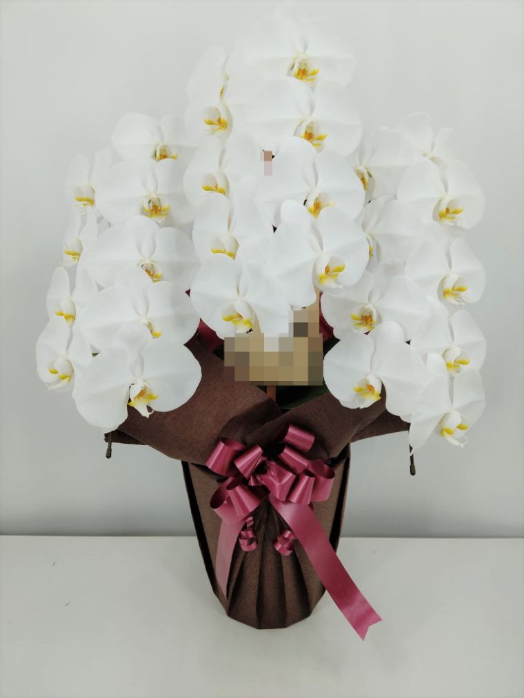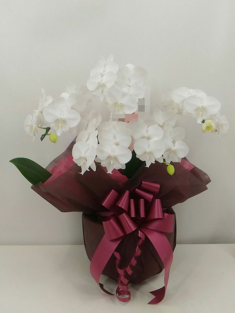 胡蝶蘭の実際にお届けした写真です。花秘書では発送前に写真をメールで送信致しますので安心して大切な顧客や取引様へのギフトにご利用頂けます。
