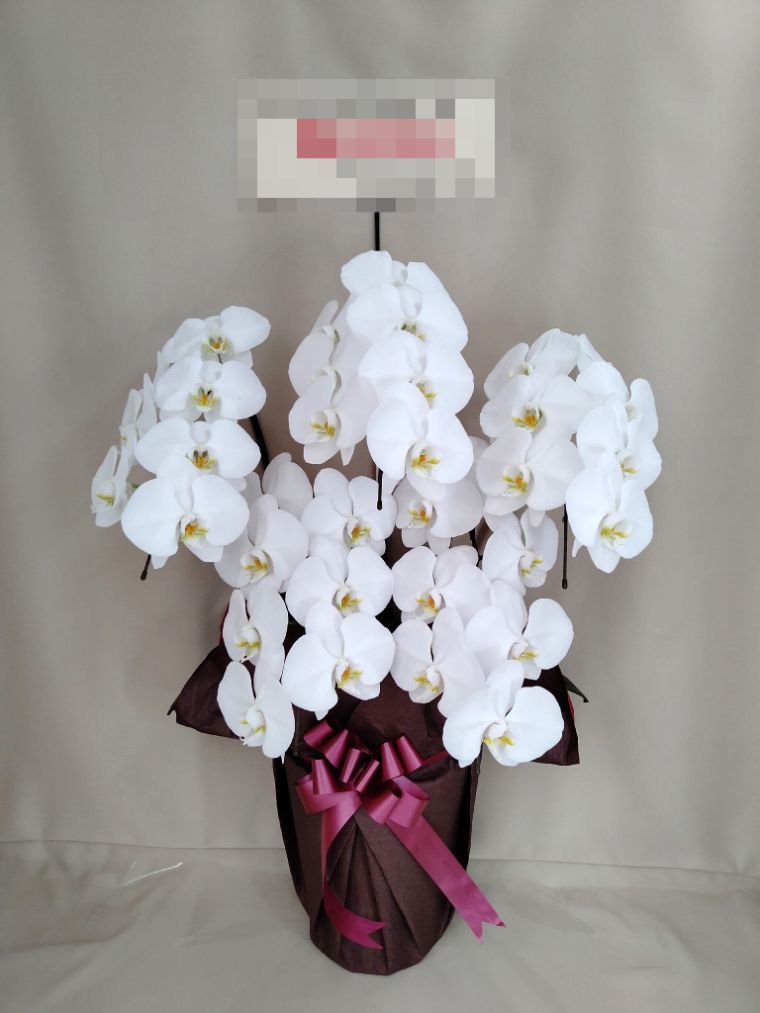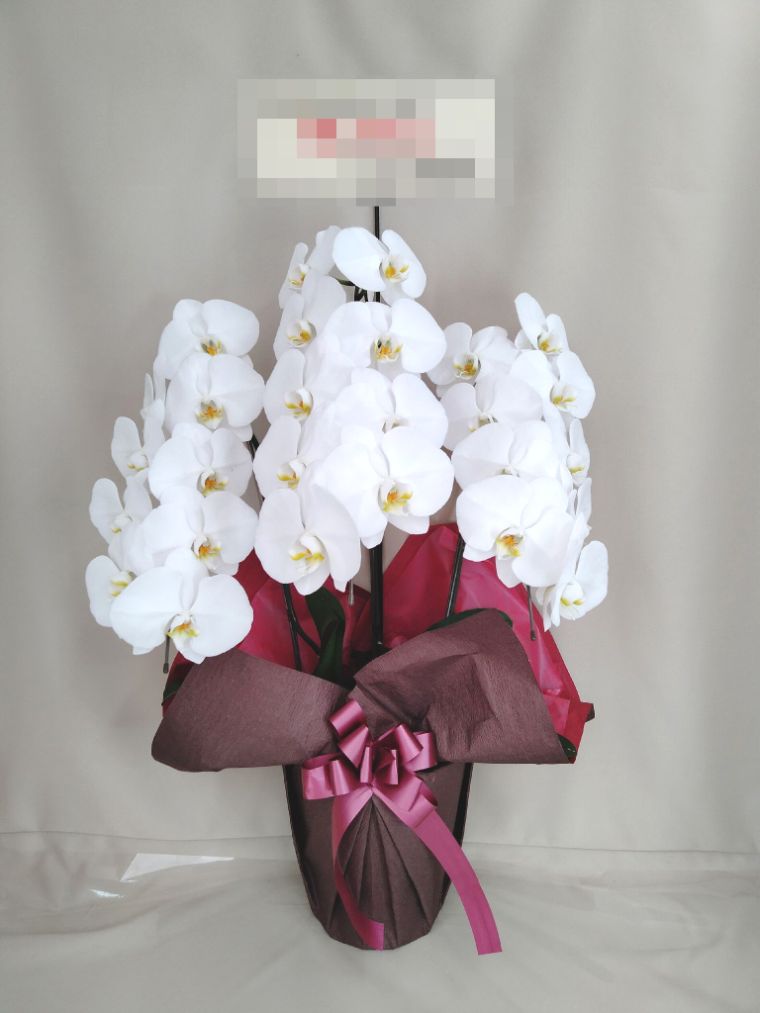胡蝶蘭の実際にお届けした写真です。花秘書では発送前に写真をメールで送信致しますので安心して大切な顧客や取引様へのギフトにご利用頂けます。