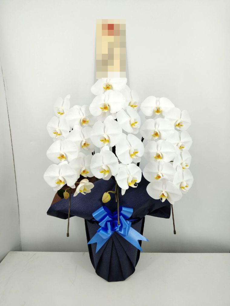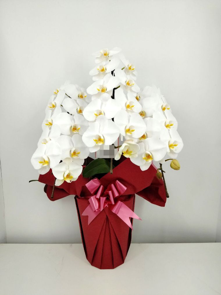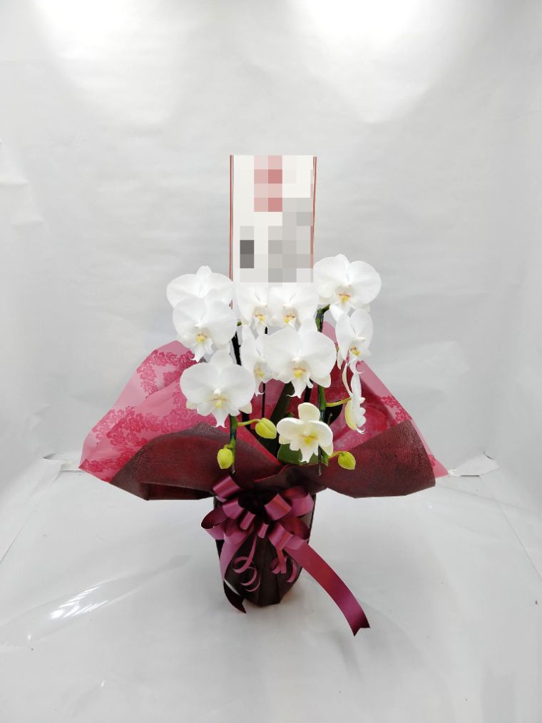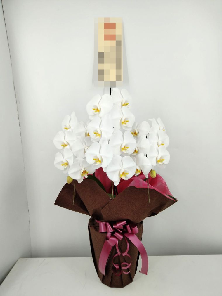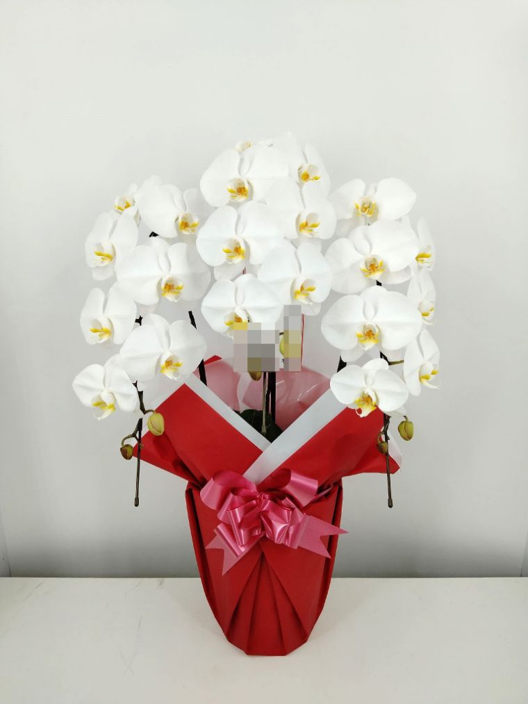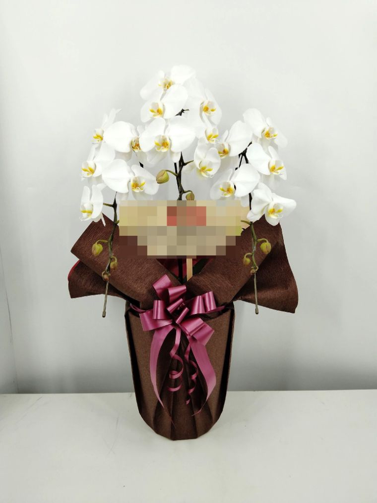 胡蝶蘭の実際にお届けした写真です。花秘書では発送前に写真をメールで送信致しますので安心して大切な顧客や取引様へのギフトにご利用頂けます。