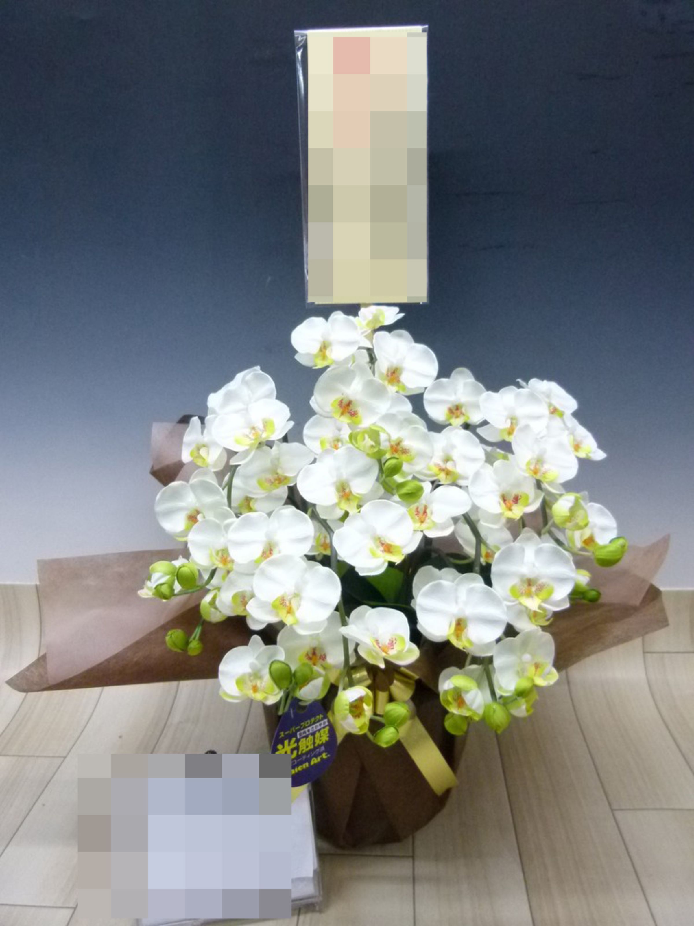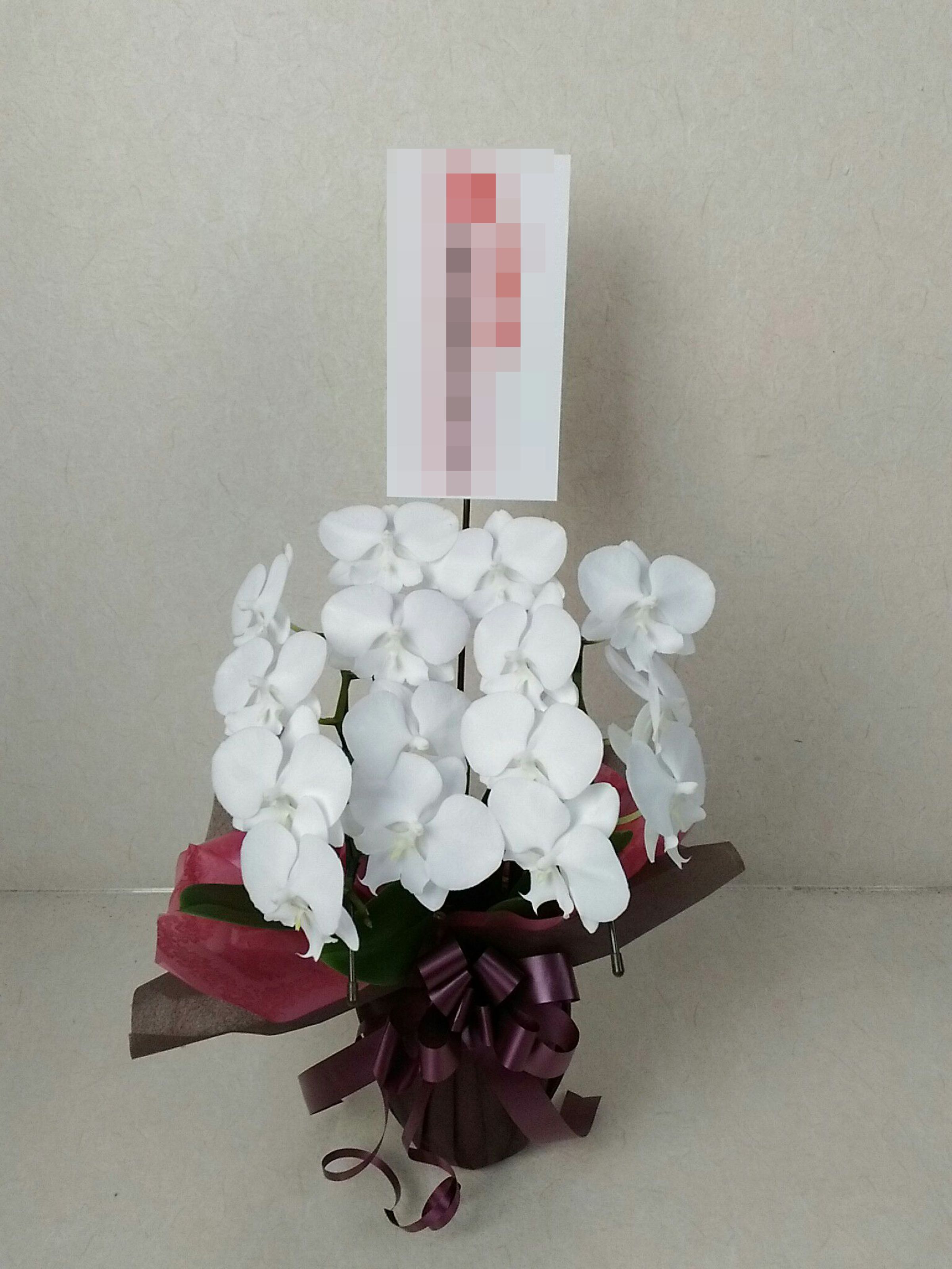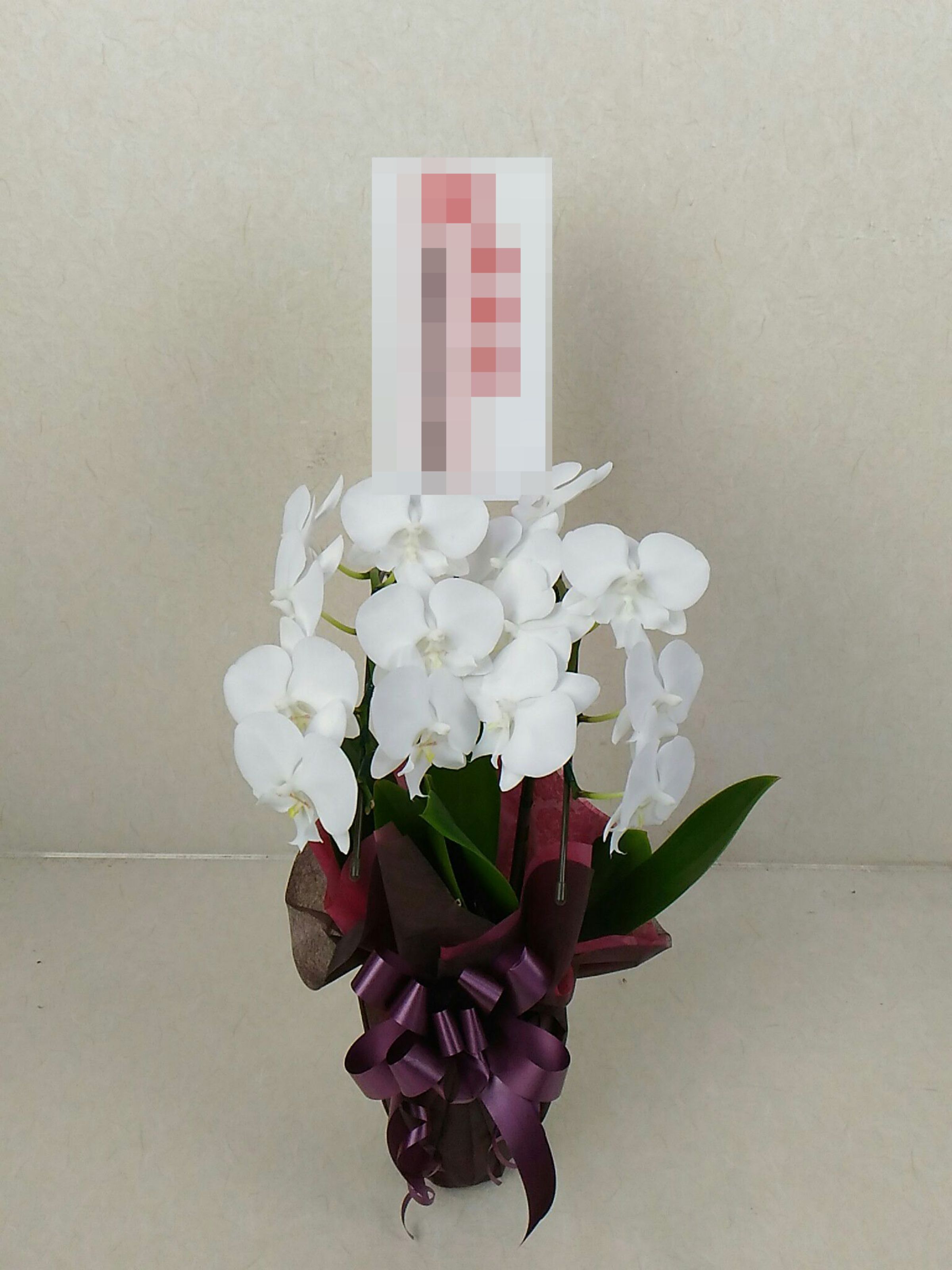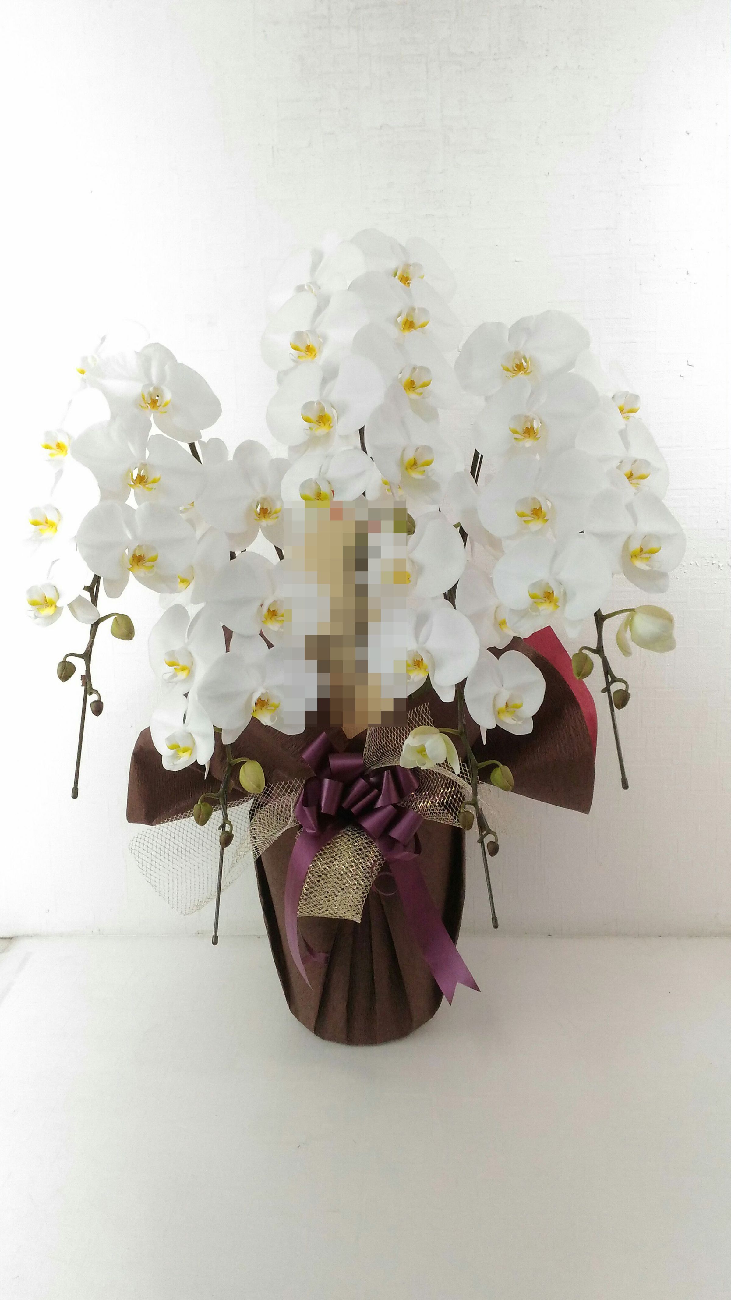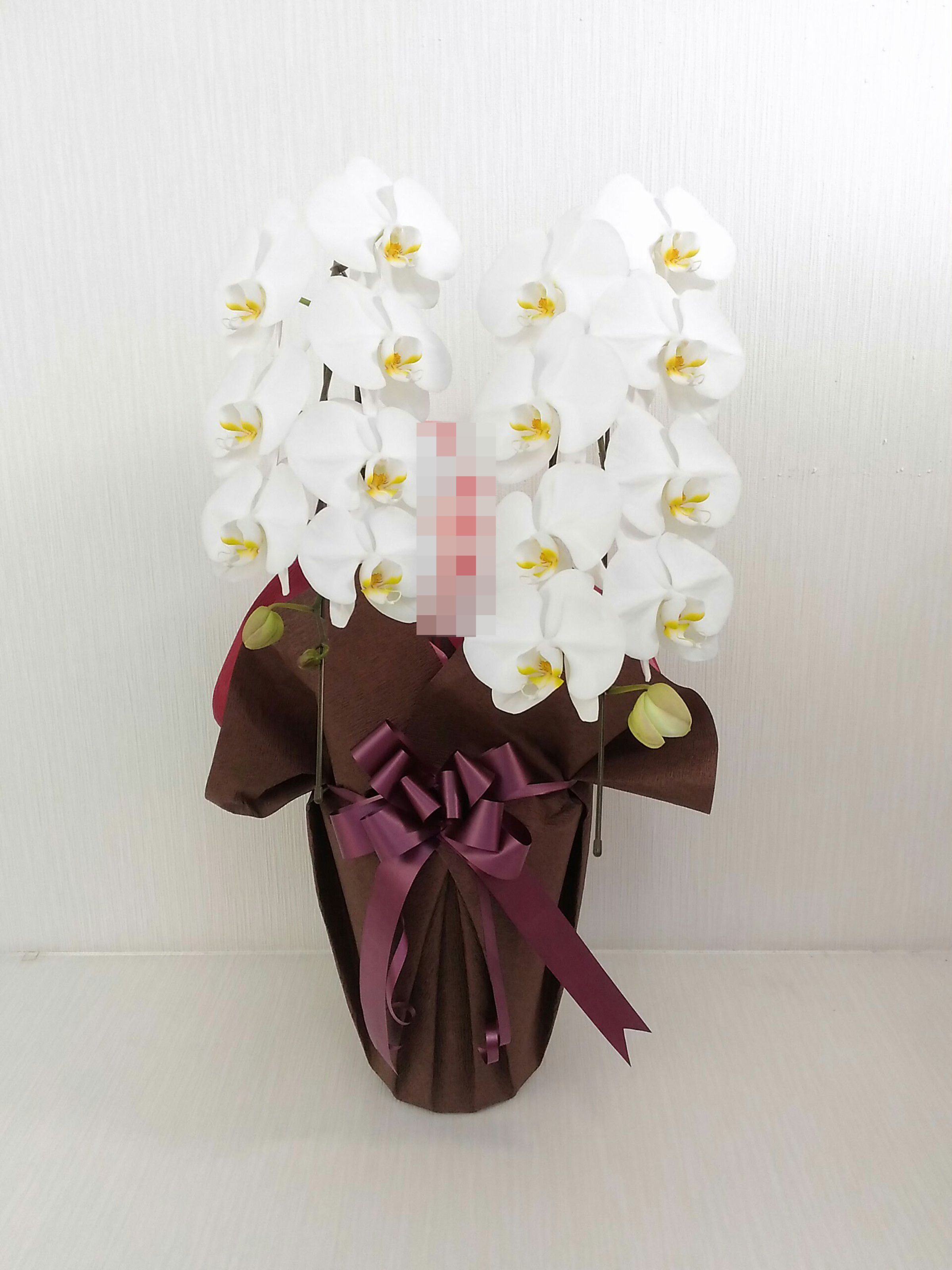 胡蝶蘭の実際にお届けした写真です。花秘書では発送前に写真をメールで送信致しますので安心して大切な顧客や取引様へのギフトにご利用頂けます。