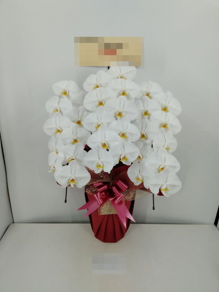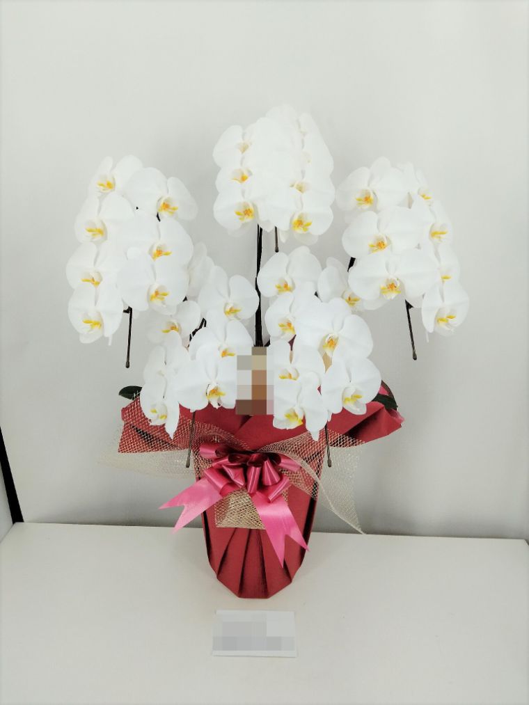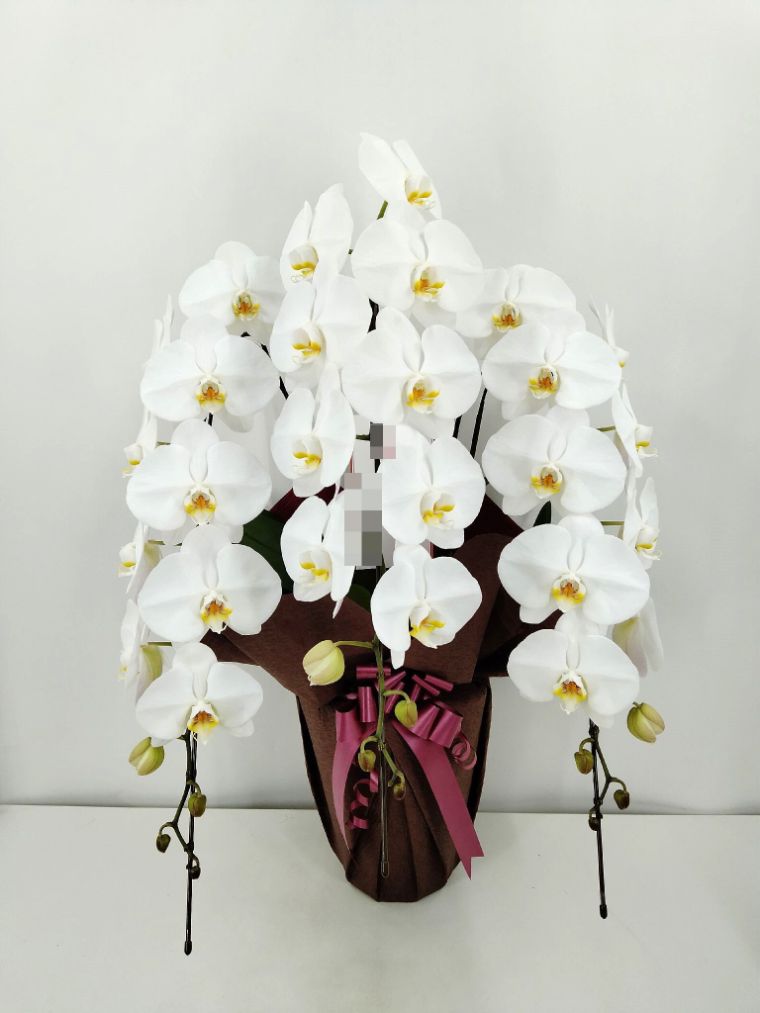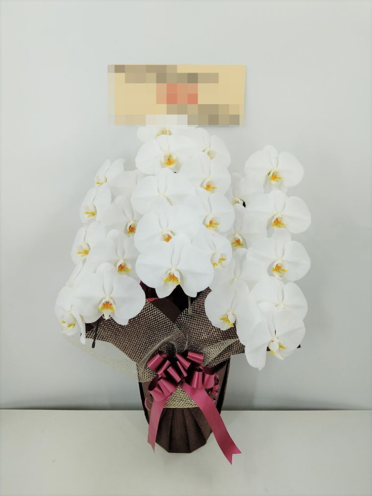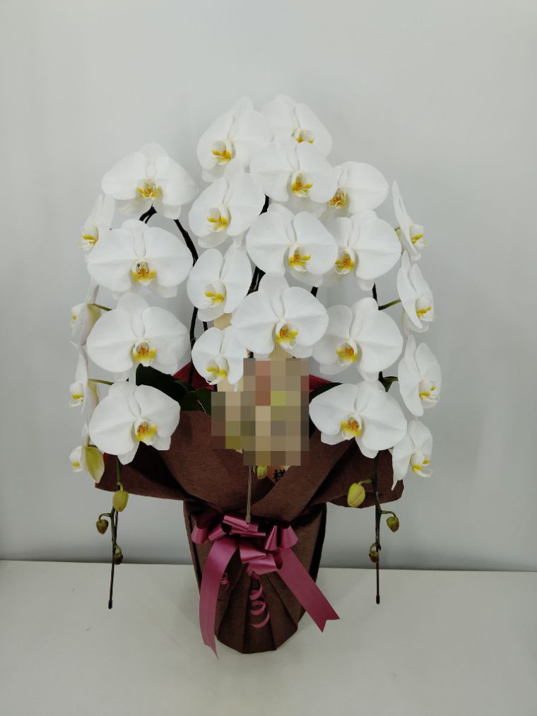 胡蝶蘭の実際にお届けした写真です。花秘書では発送前に写真をメールで送信致しますので安心して大切な顧客や取引様へのギフトにご利用頂けます。