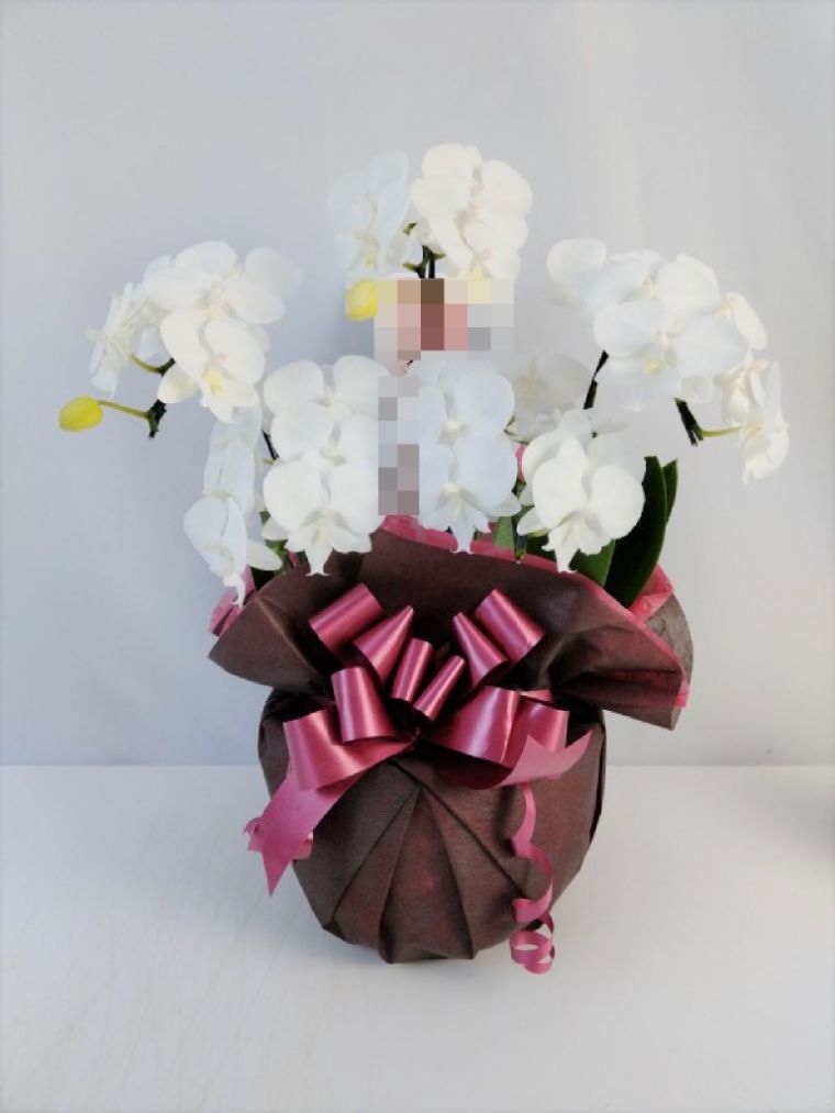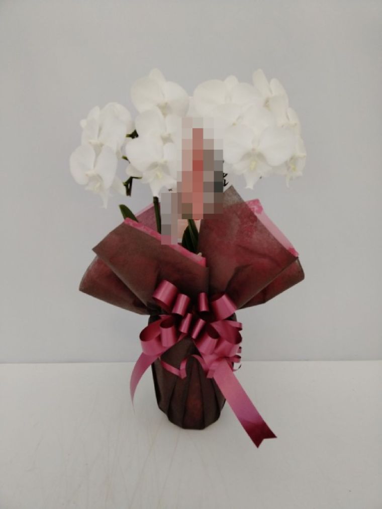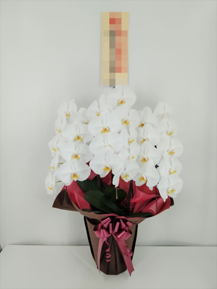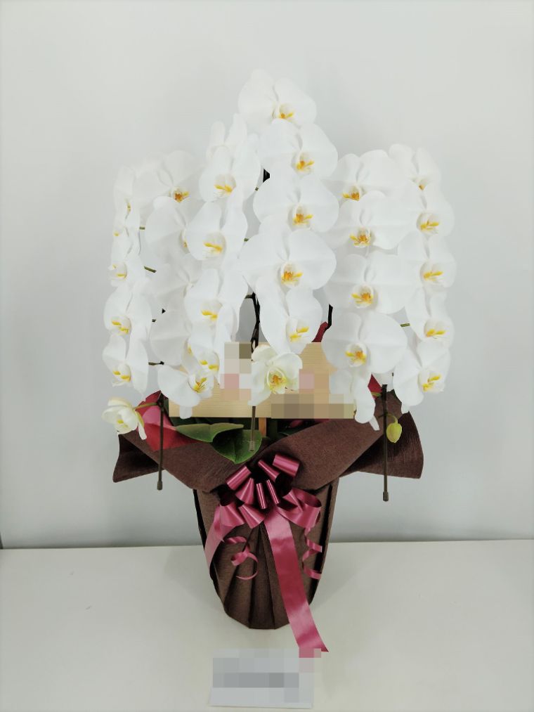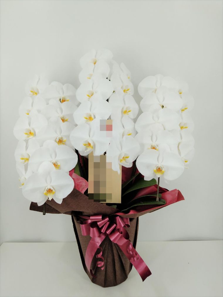 胡蝶蘭の実際にお届けした写真です。花秘書では発送前に写真をメールで送信致しますので安心して大切な顧客や取引様へのギフトにご利用頂けます。