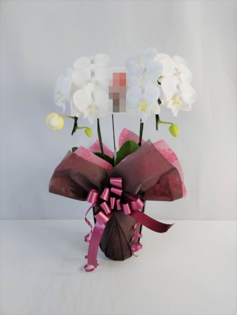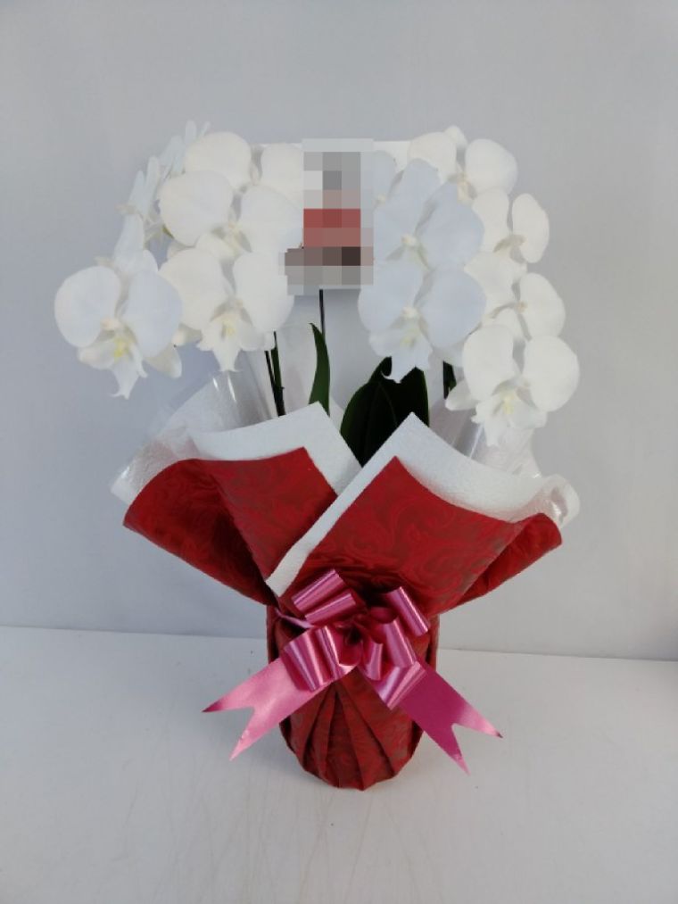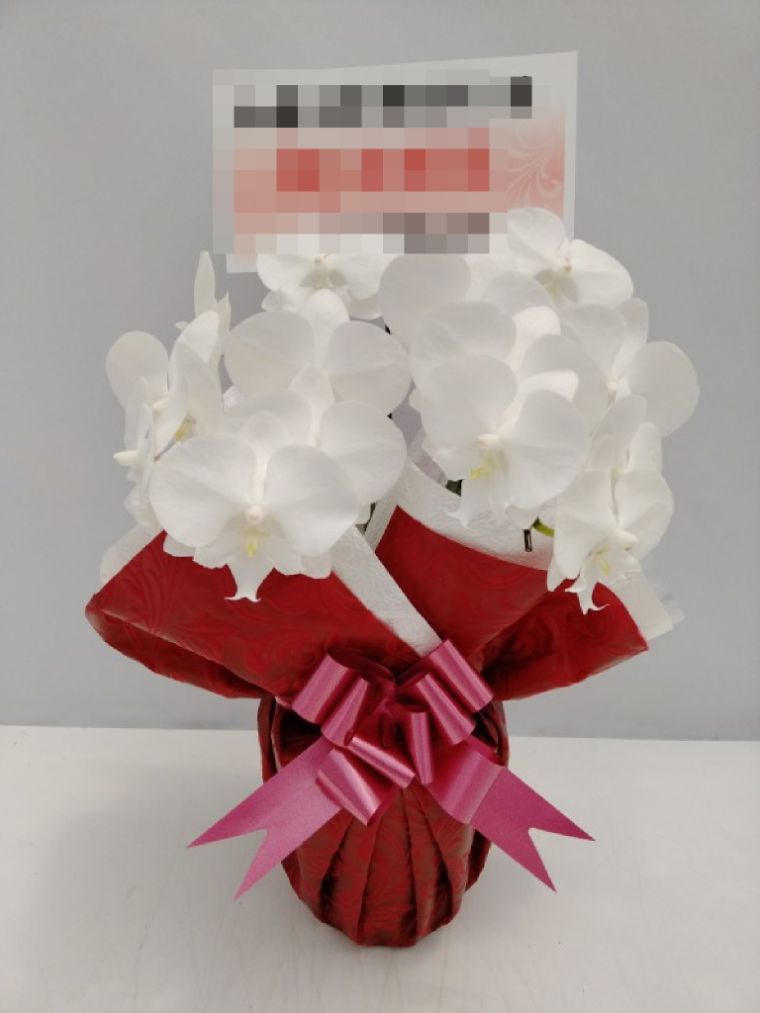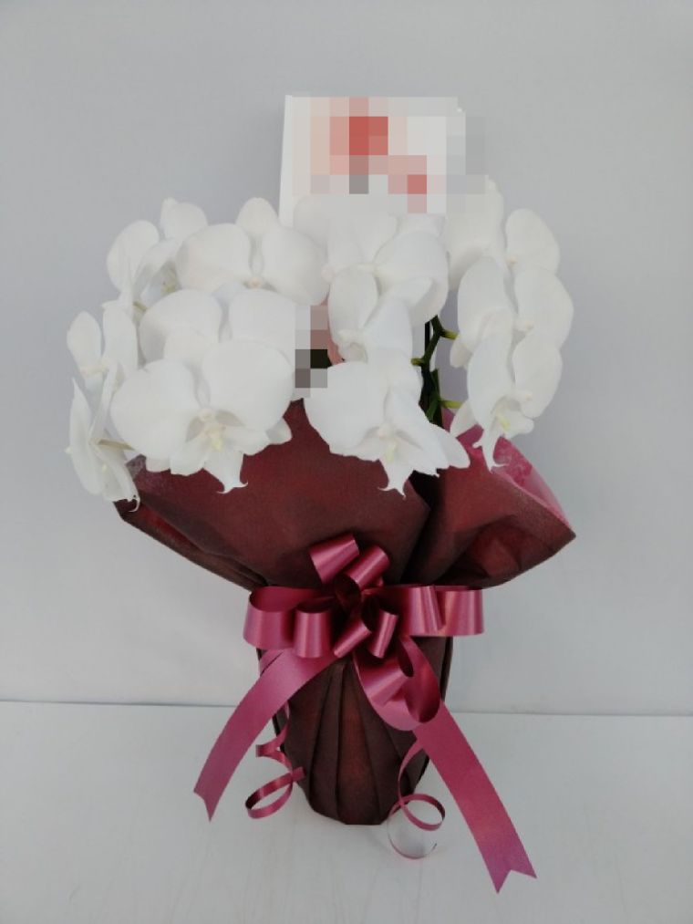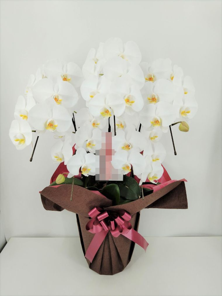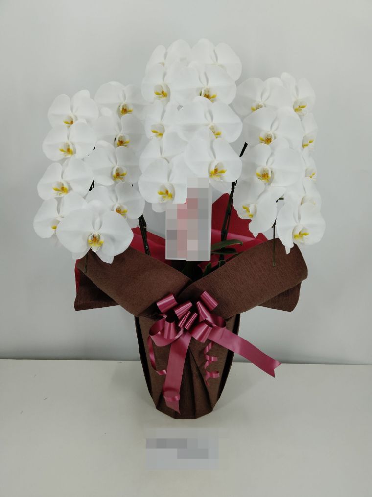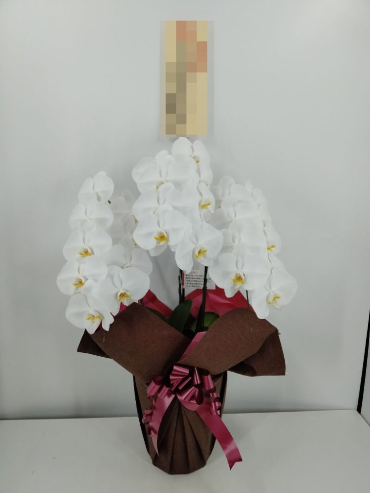 胡蝶蘭の実際にお届けした写真です。花秘書では発送前に写真をメールで送信致しますので安心して大切な顧客や取引様へのギフトにご利用頂けます。