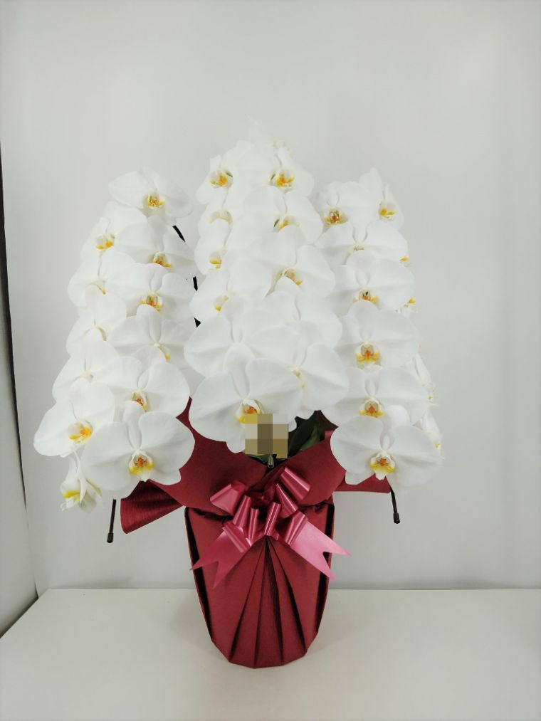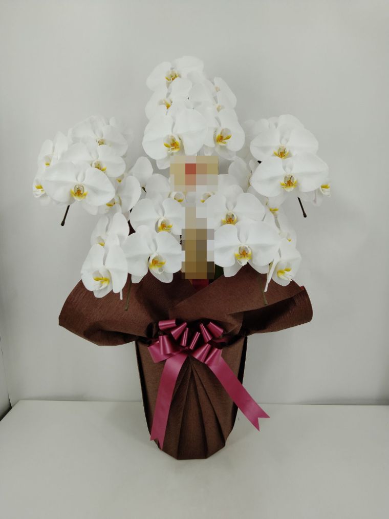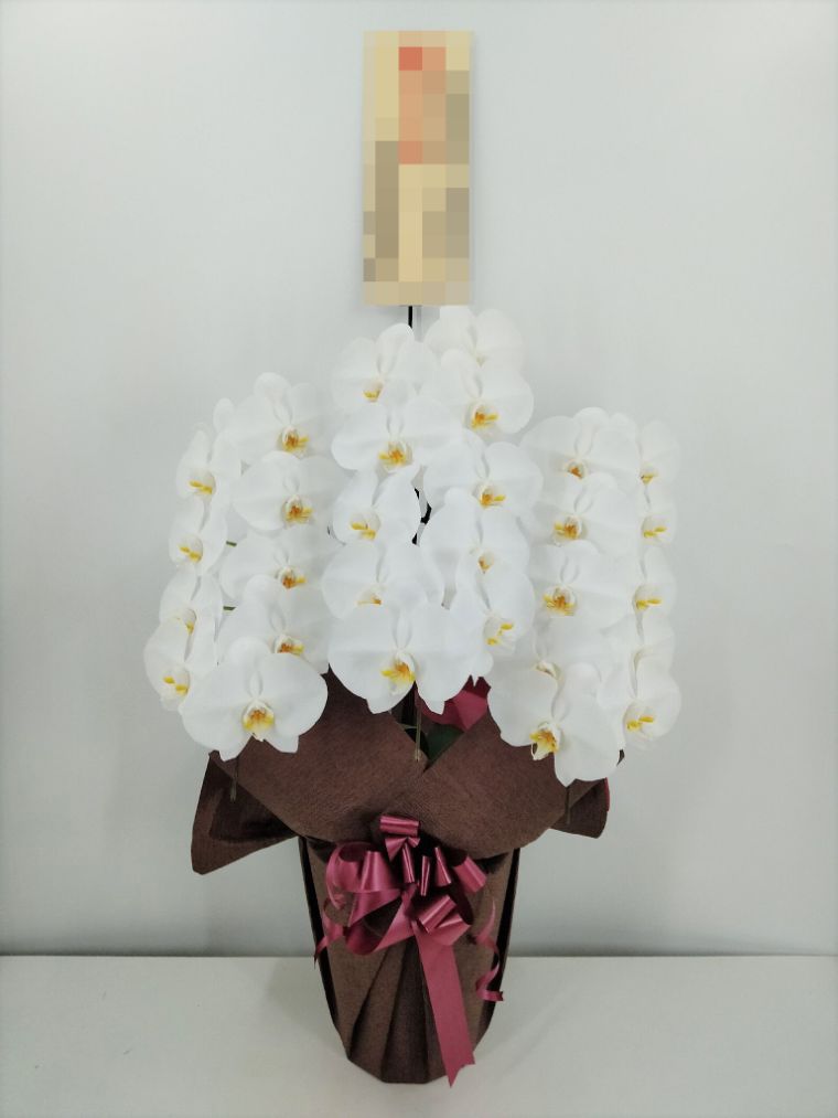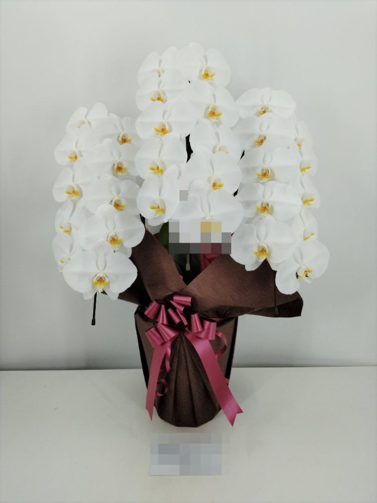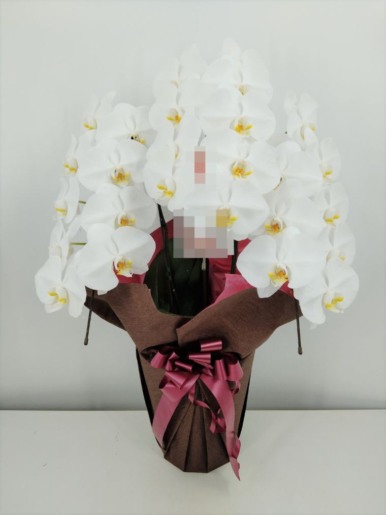 胡蝶蘭の実際にお届けした写真です。花秘書では発送前に写真をメールで送信致しますので安心して大切な顧客や取引様へのギフトにご利用頂けます。