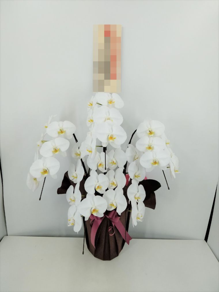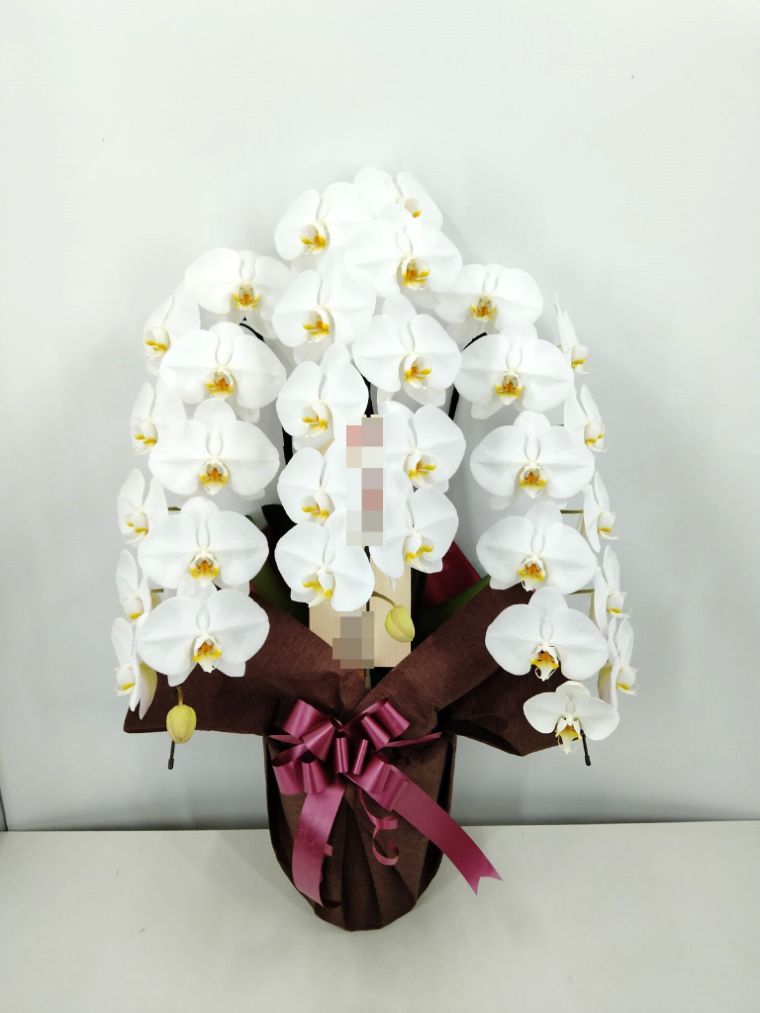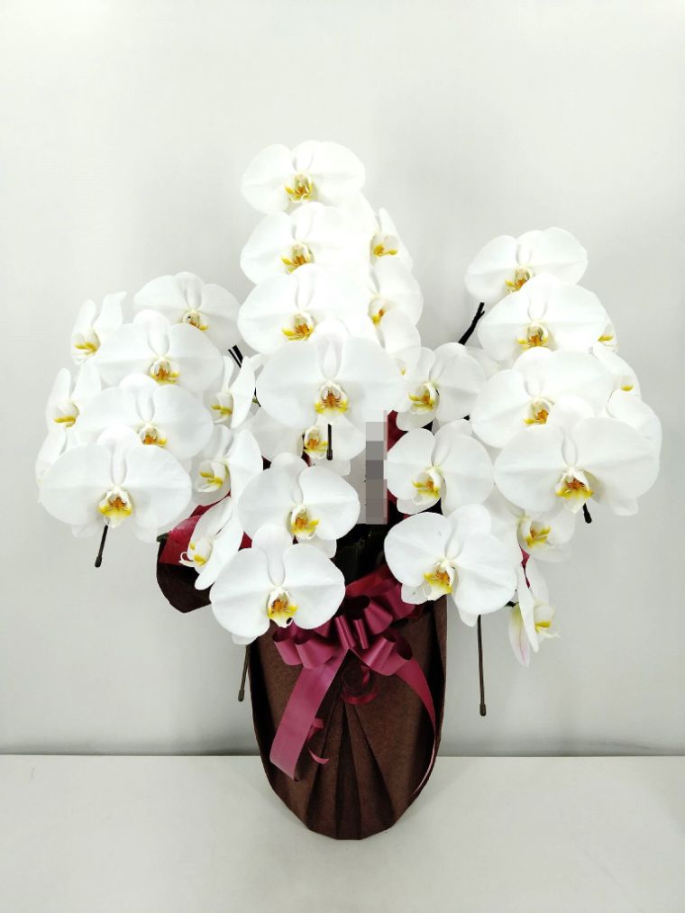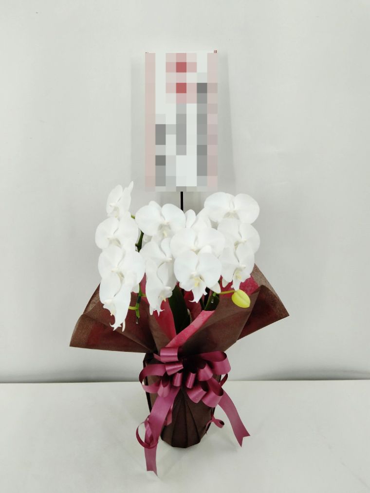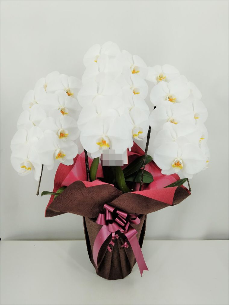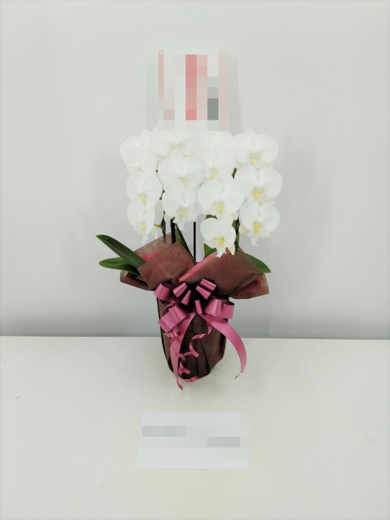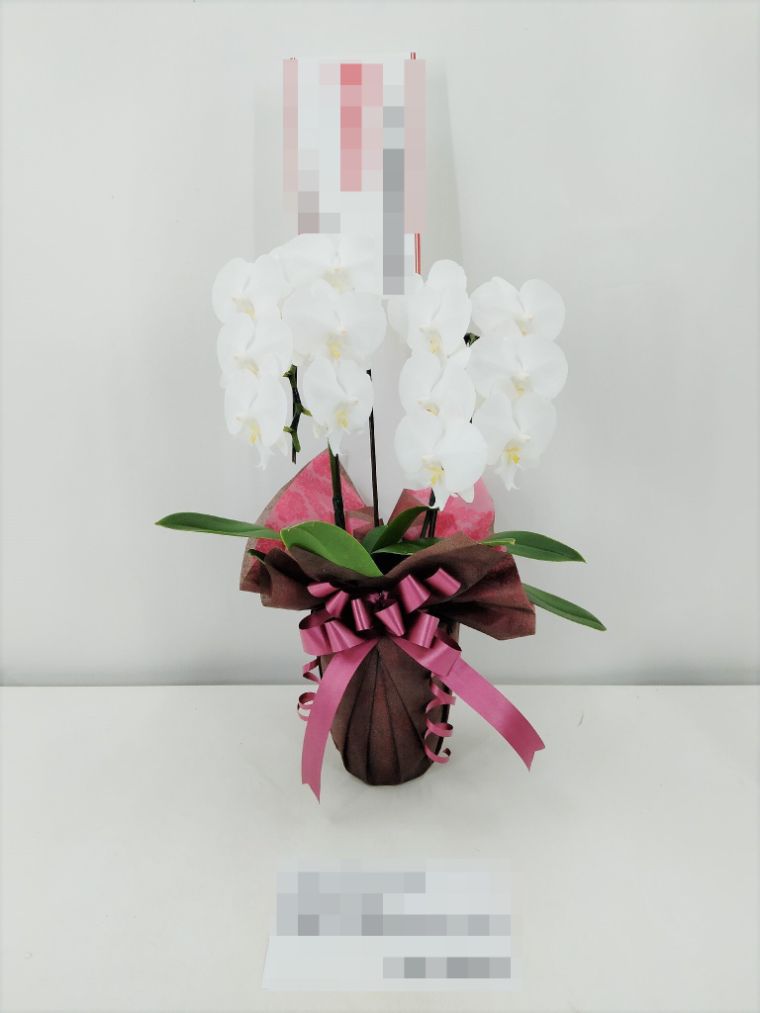 胡蝶蘭の実際にお届けした写真です。花秘書では発送前に写真をメールで送信致しますので安心して大切な顧客や取引様へのギフトにご利用頂けます。