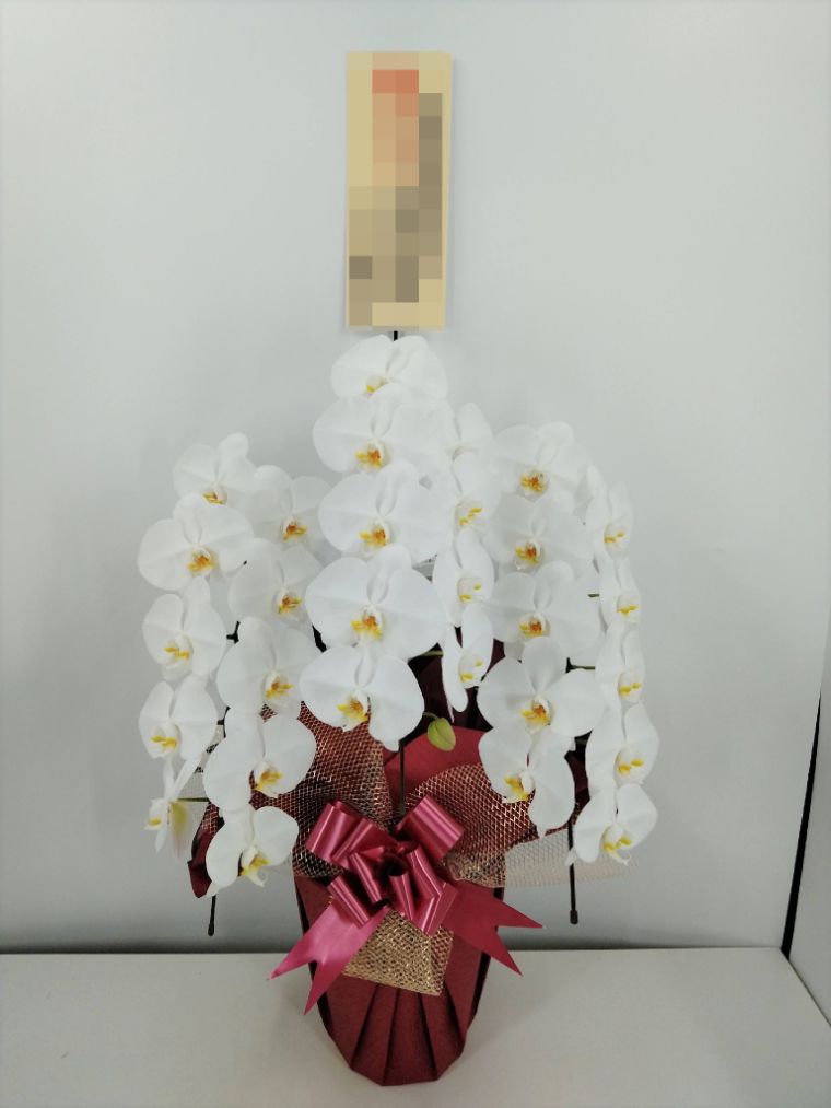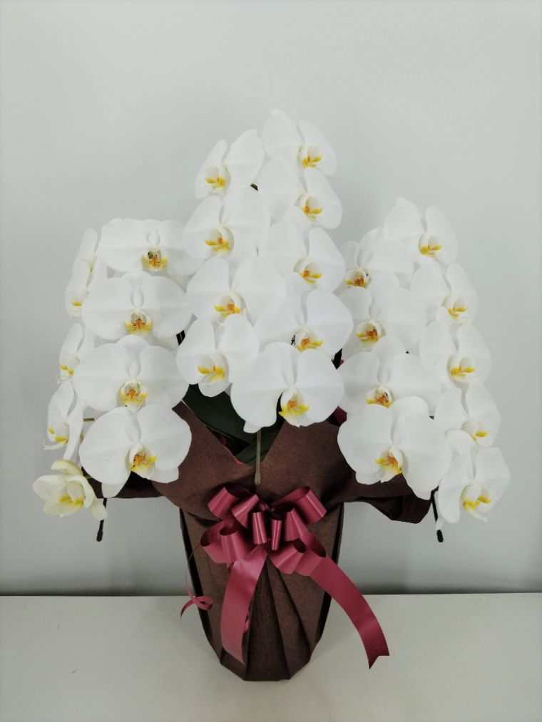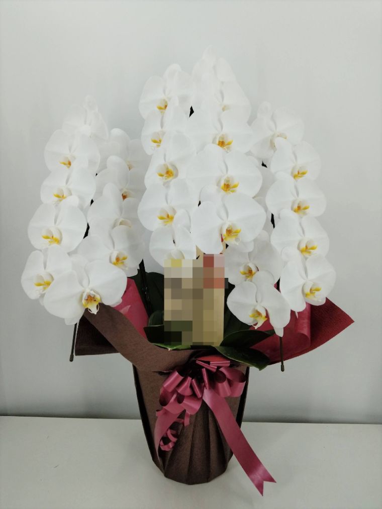 胡蝶蘭の実際にお届けした写真です。花秘書では発送前に写真をメールで送信致しますので安心して大切な顧客や取引様へのギフトにご利用頂けます。