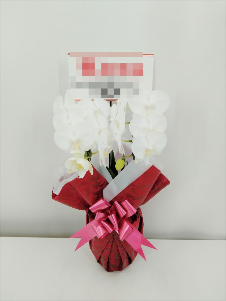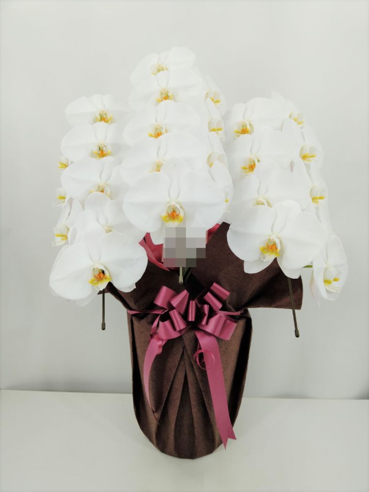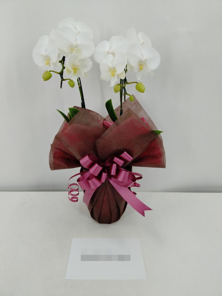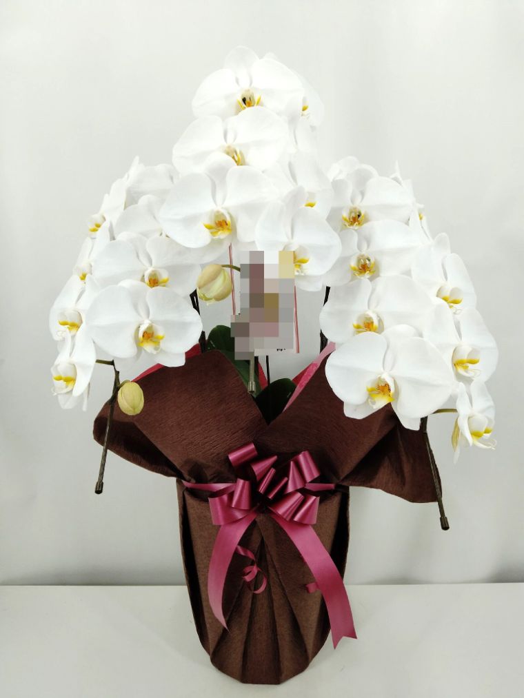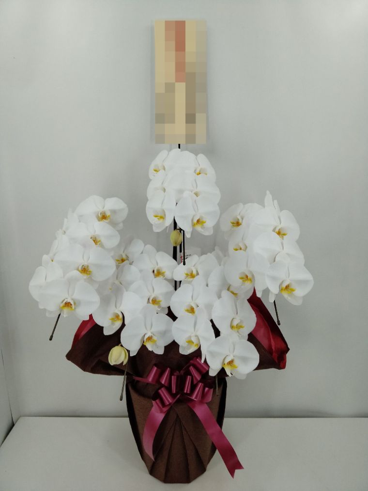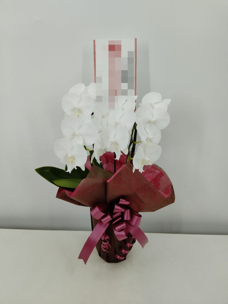 胡蝶蘭の実際にお届けした写真です。花秘書では発送前に写真をメールで送信致しますので安心して大切な顧客や取引様へのギフトにご利用頂けます。