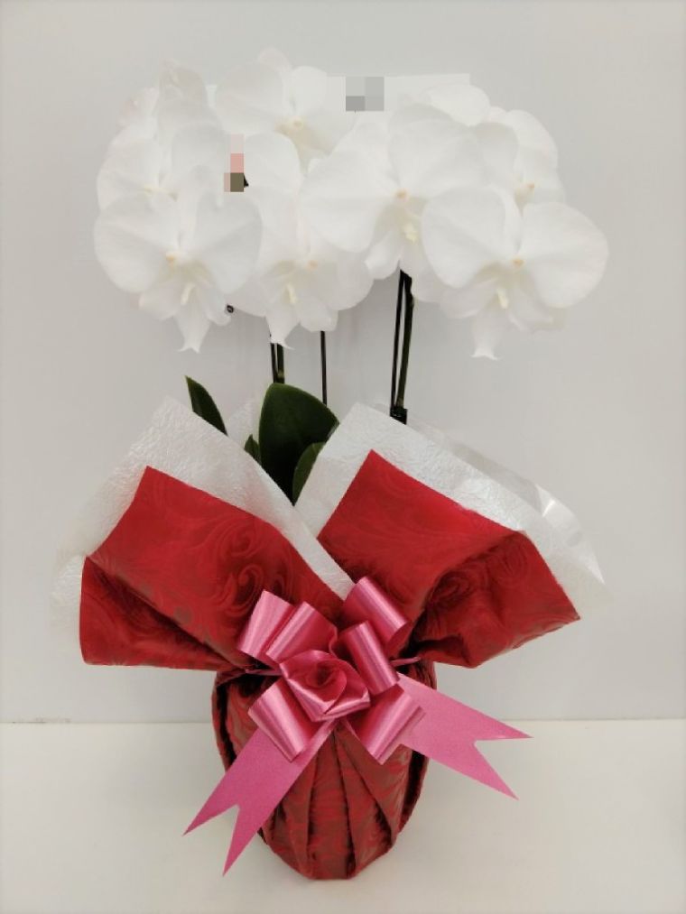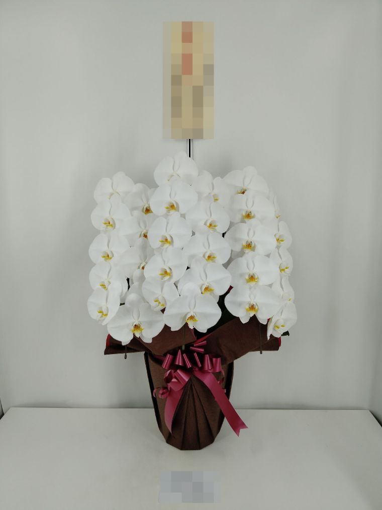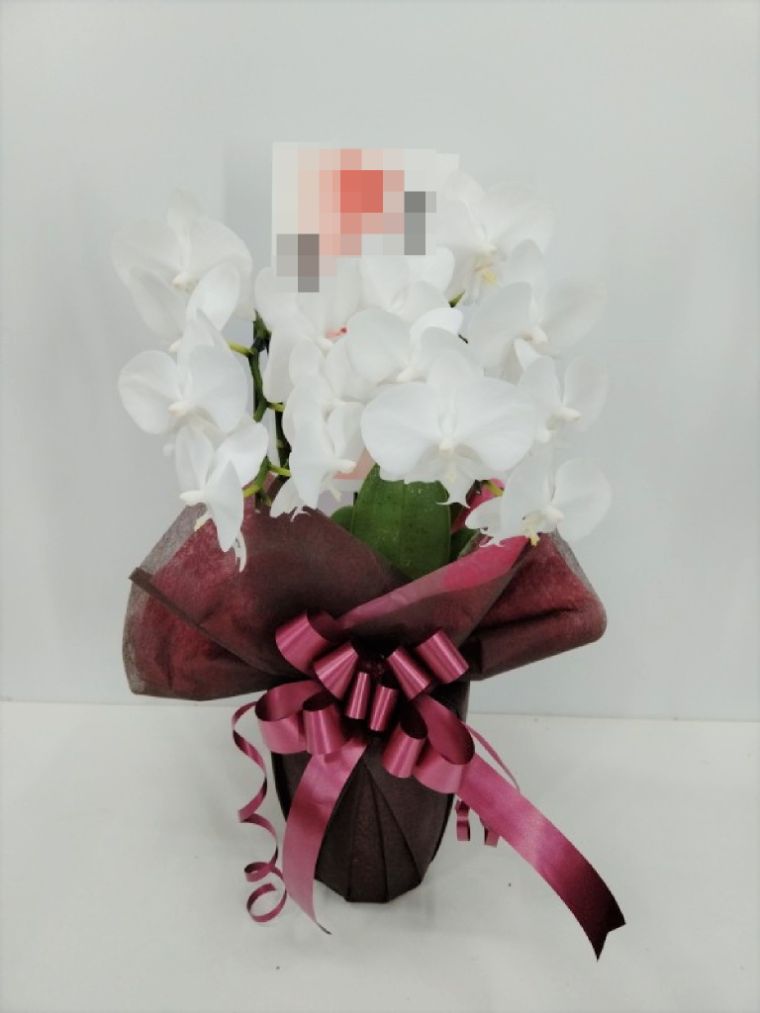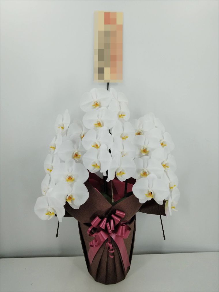 胡蝶蘭の実際にお届けした写真です。花秘書では発送前に写真をメールで送信致しますので安心して大切な顧客や取引様へのギフトにご利用頂けます。
