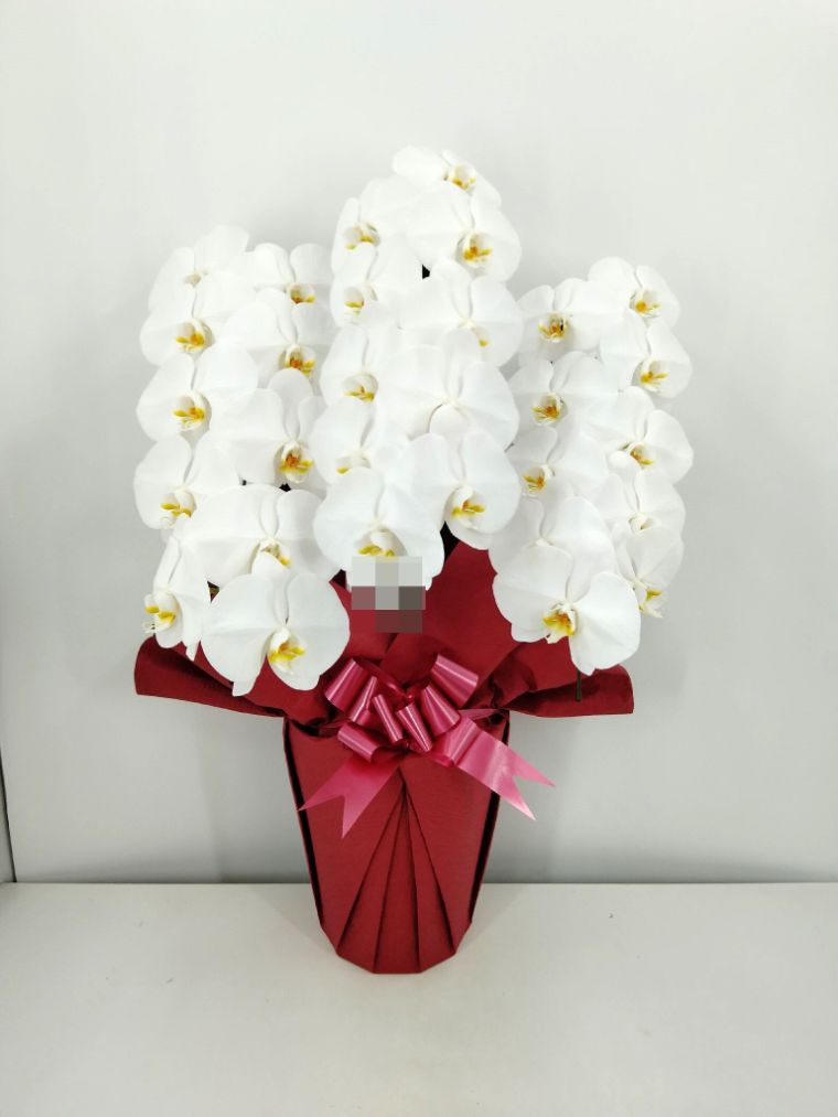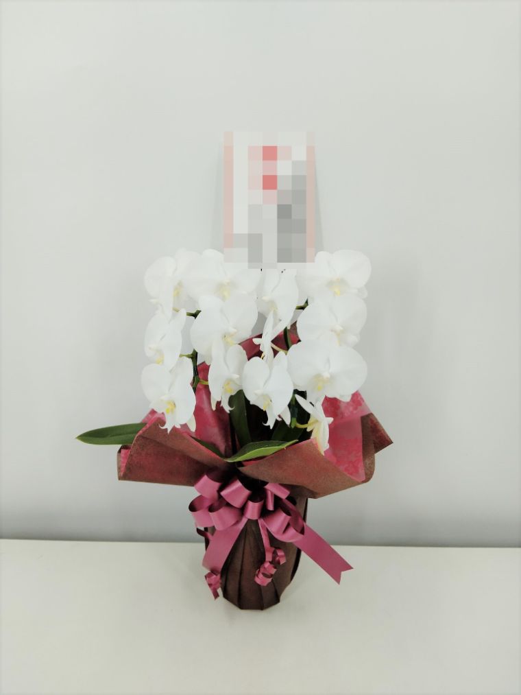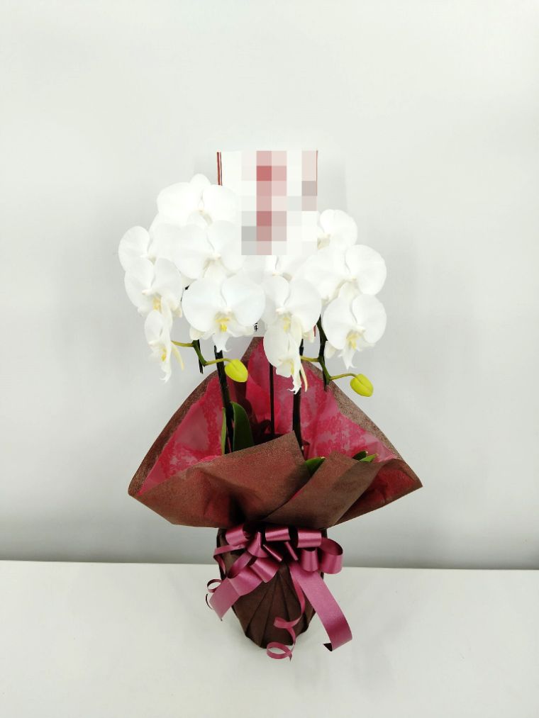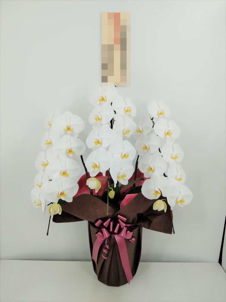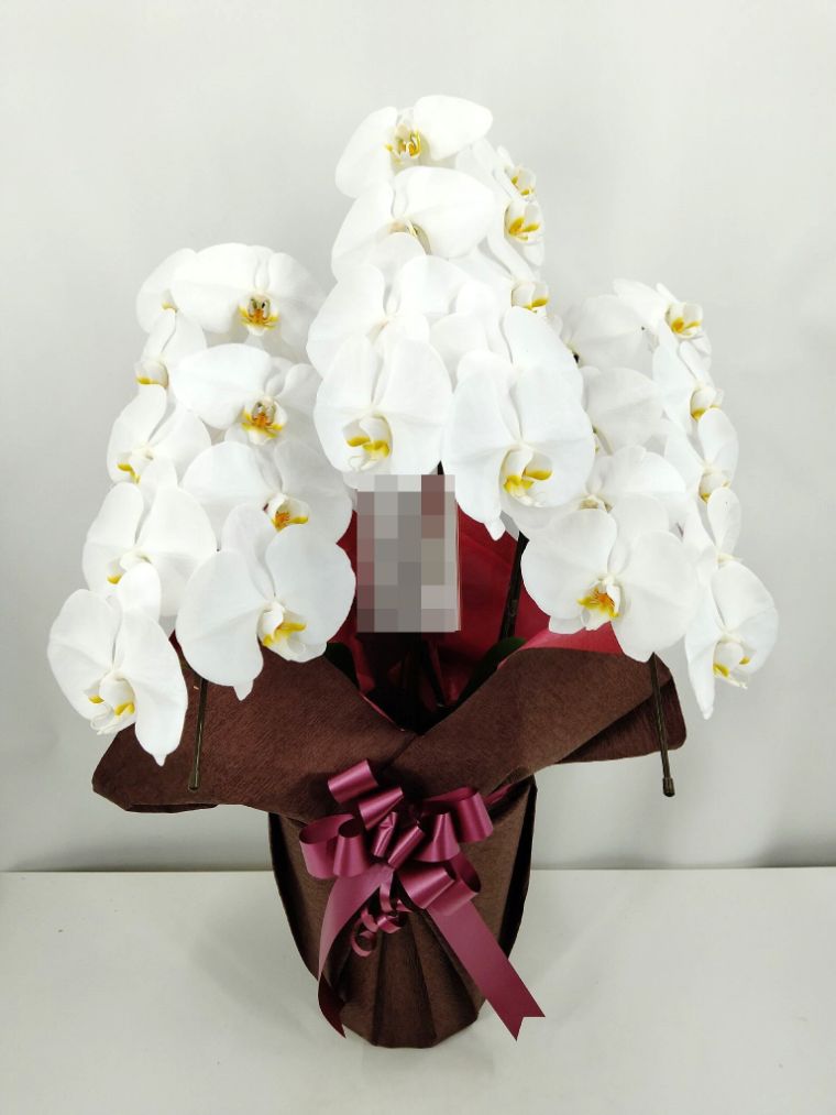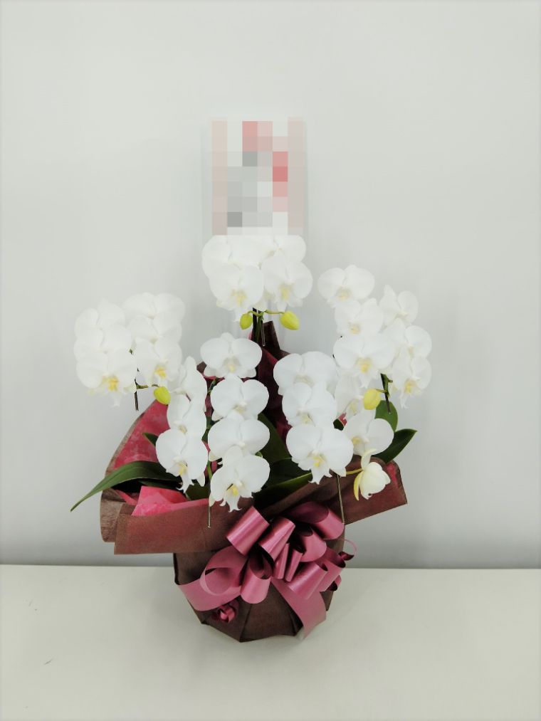 胡蝶蘭の実際にお届けした写真です。花秘書では発送前に写真をメールで送信致しますので安心して大切な顧客や取引様へのギフトにご利用頂けます。